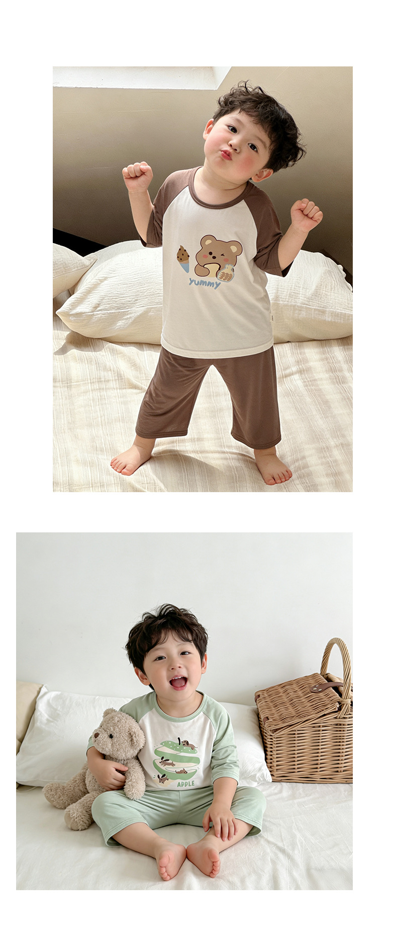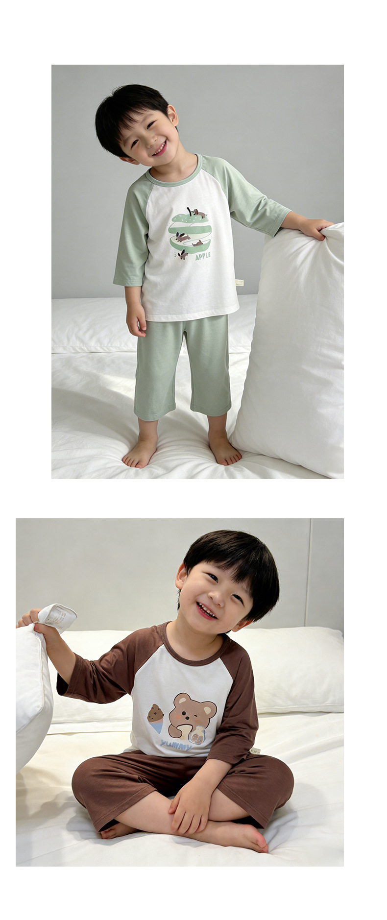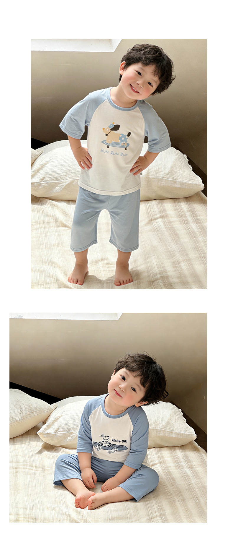 10-40kg 여름에 입는 여자아이들을 위한 구름같은 촉감의 면 소재의 시원하고 땀이 잘 안묻는 잠옷, 반팔 반바지 홈웨어스토어 가기