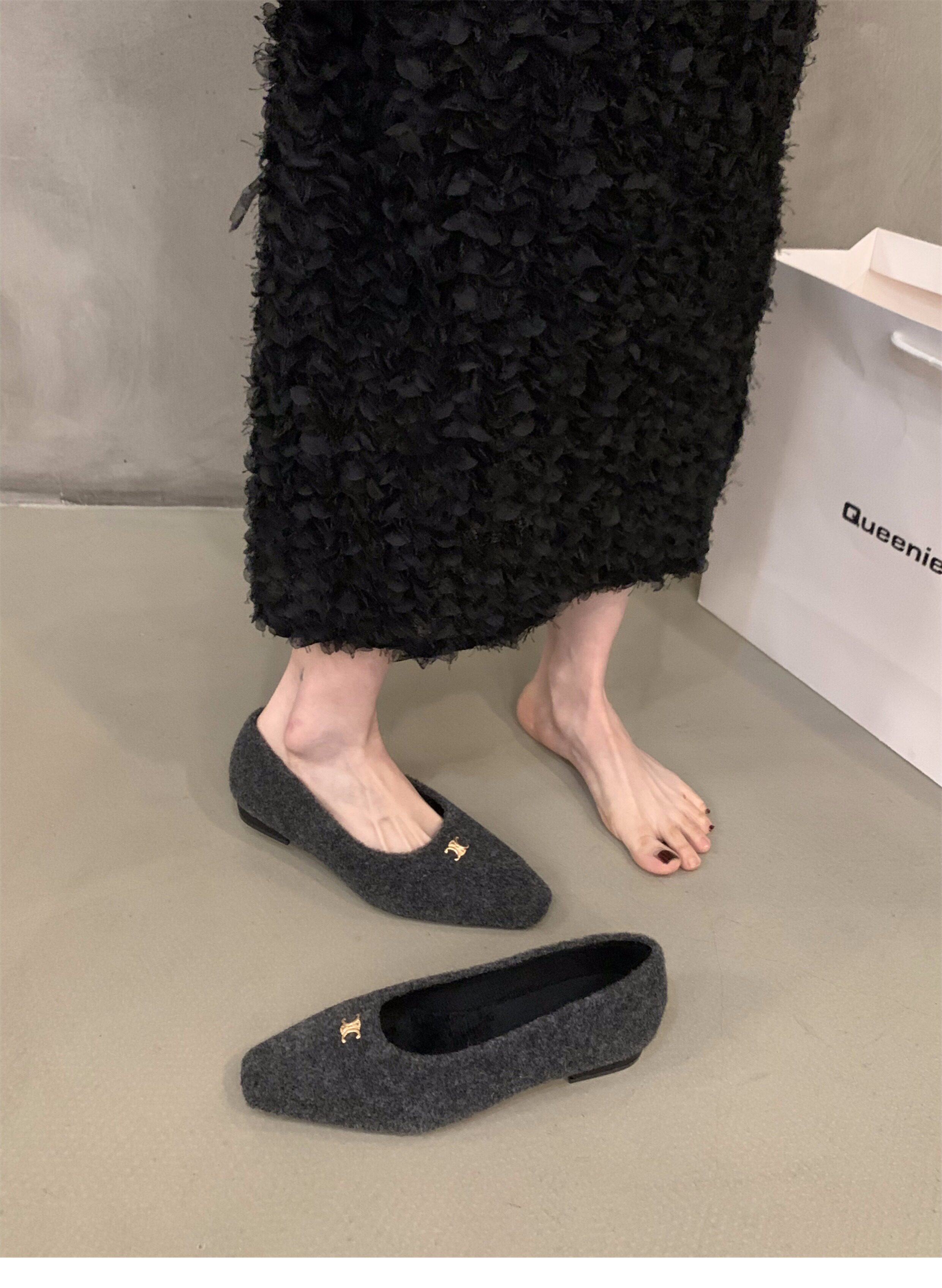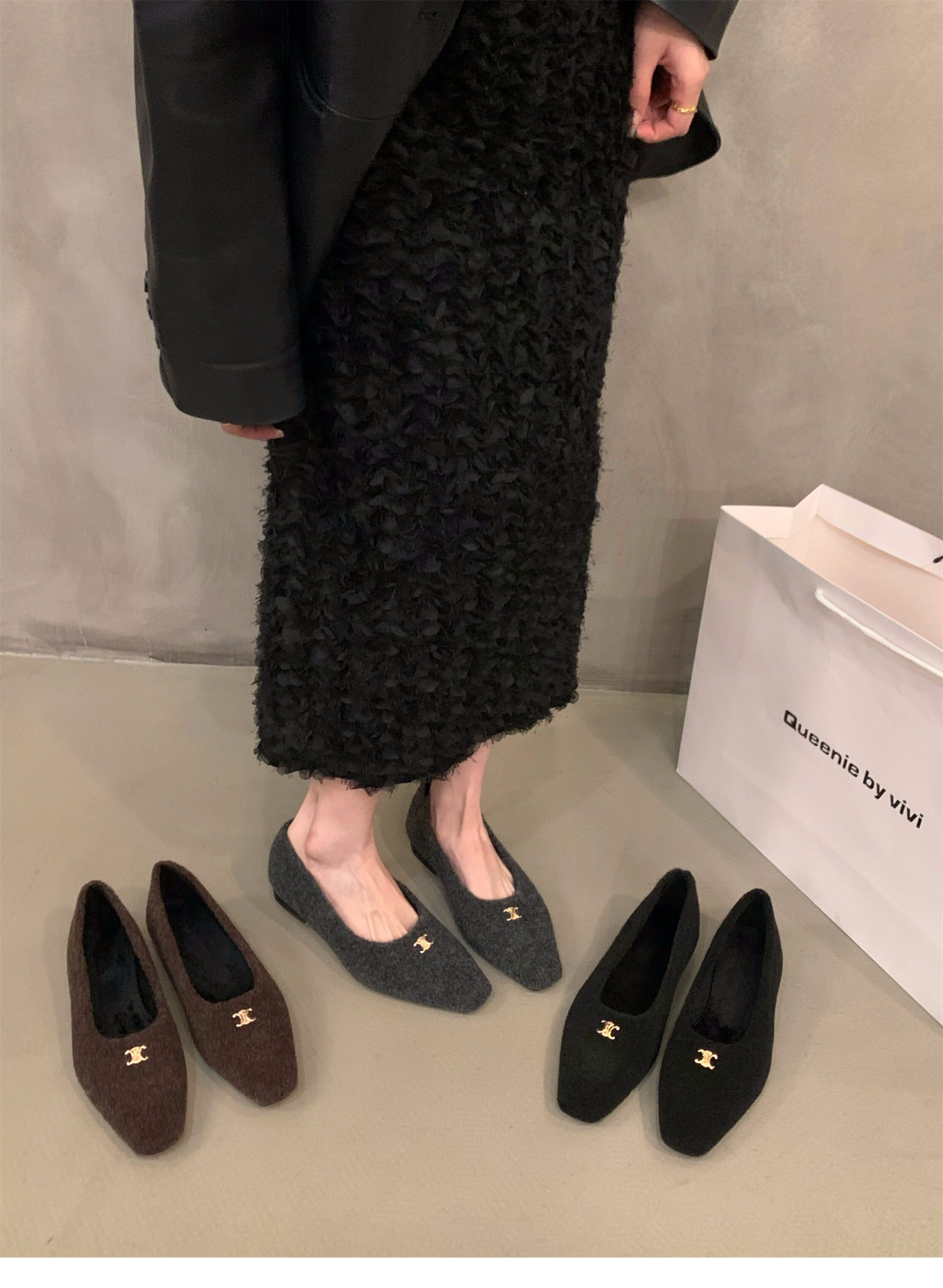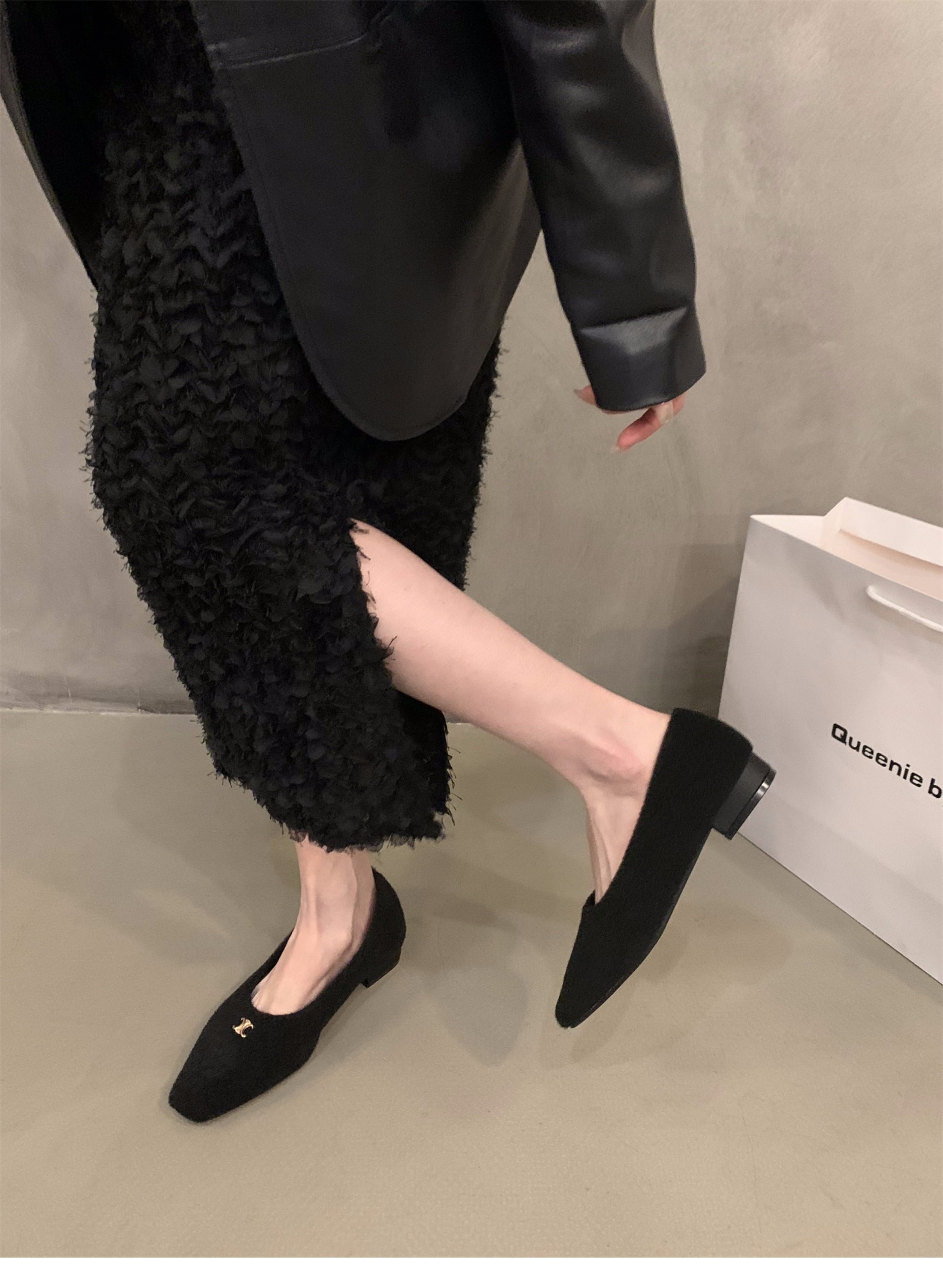 프랑스 플랫 향기로운 스타일 기모 완두콩 신발 여성 신발 2023 새로운 가을과 겨울 올 매치 아웃웨어 마오 신발스토어 가기