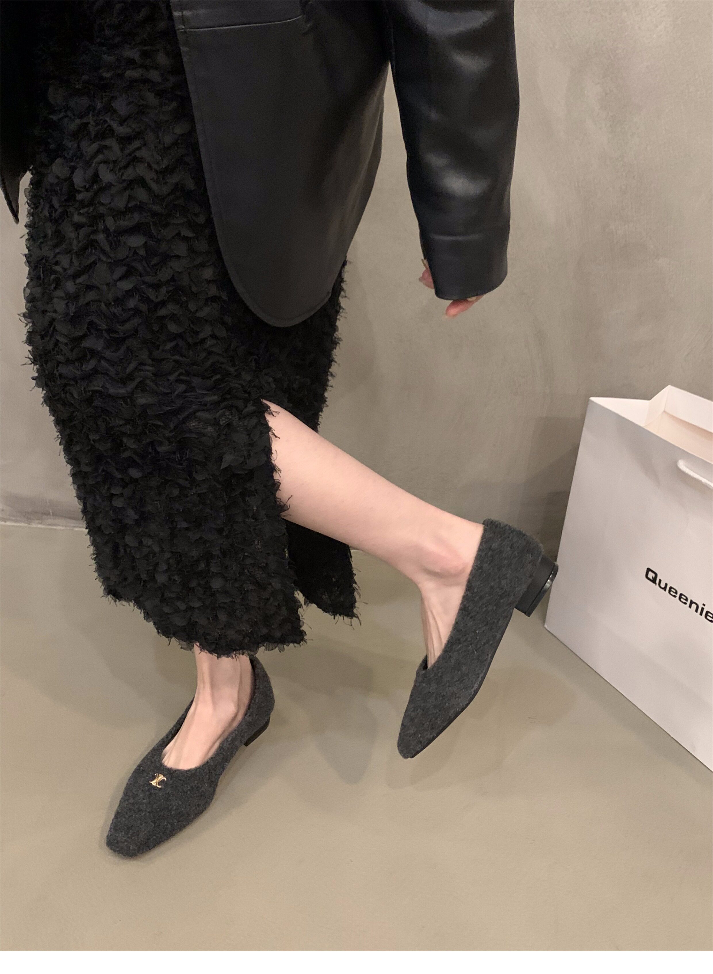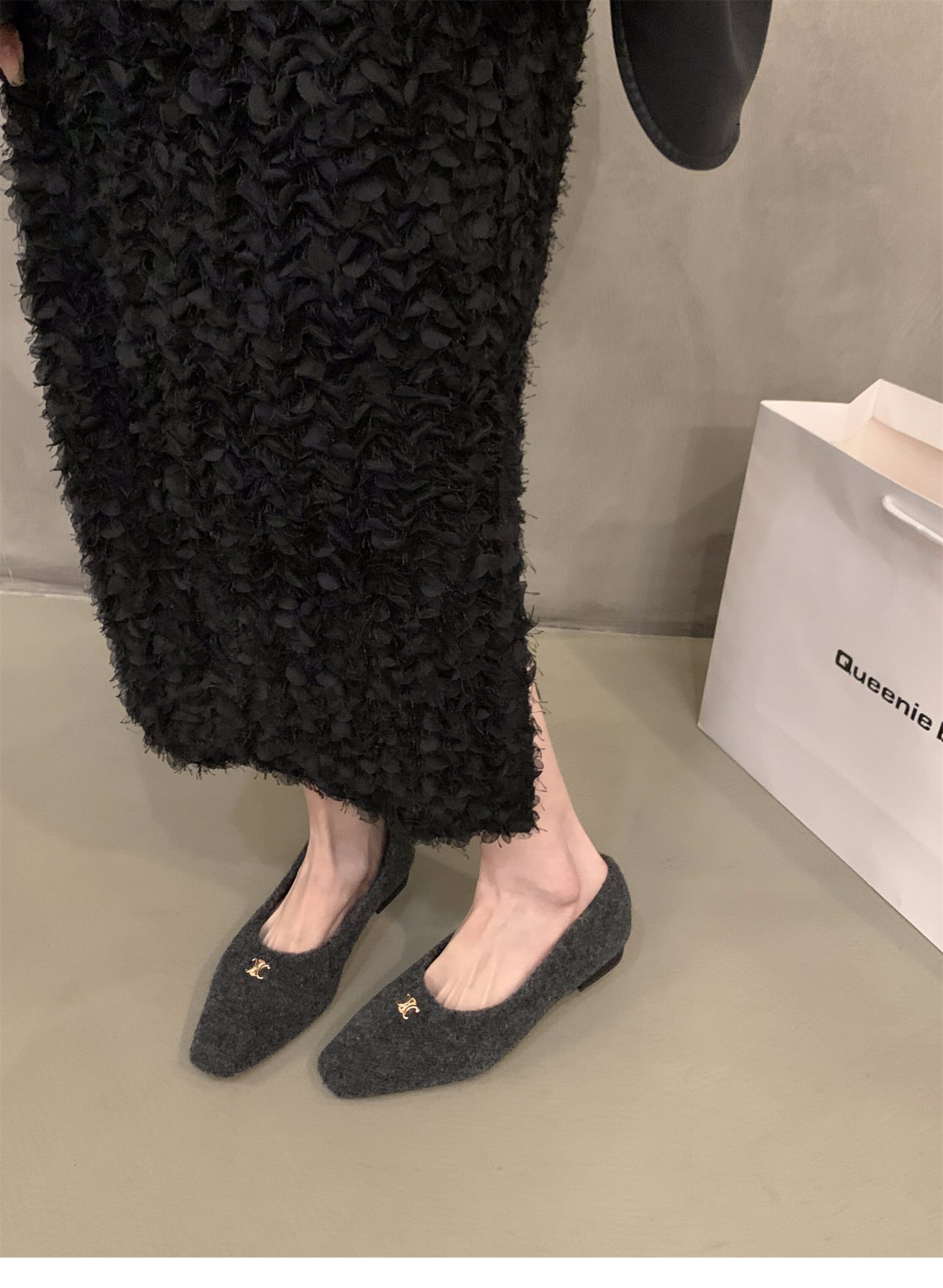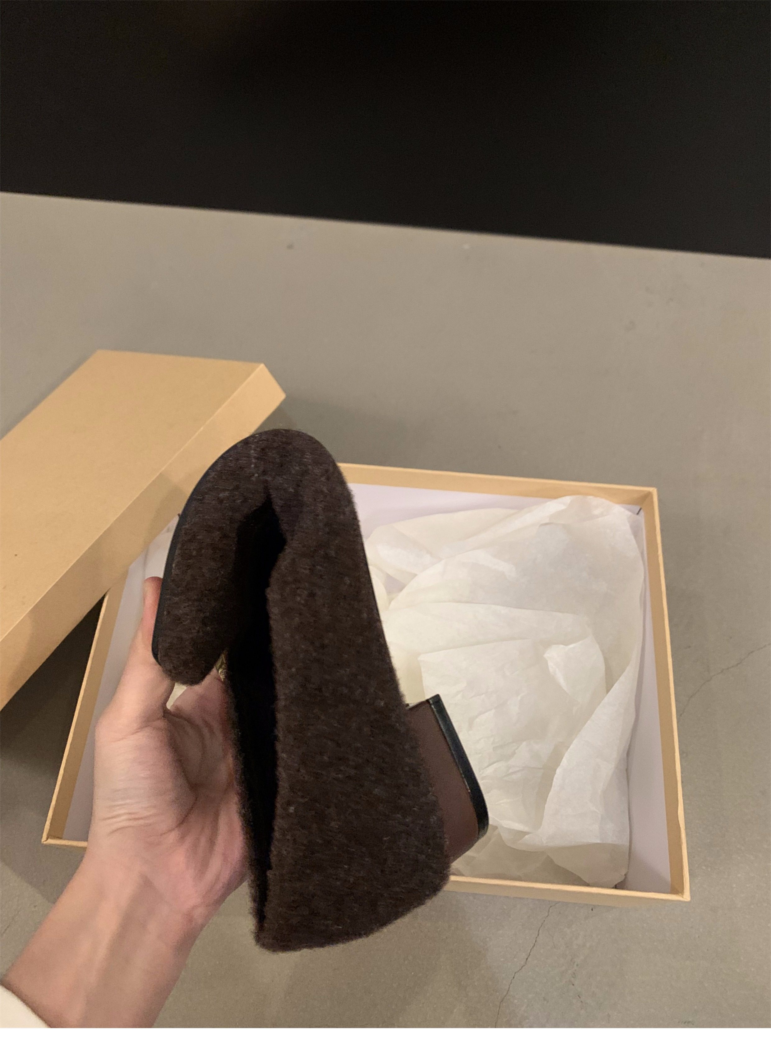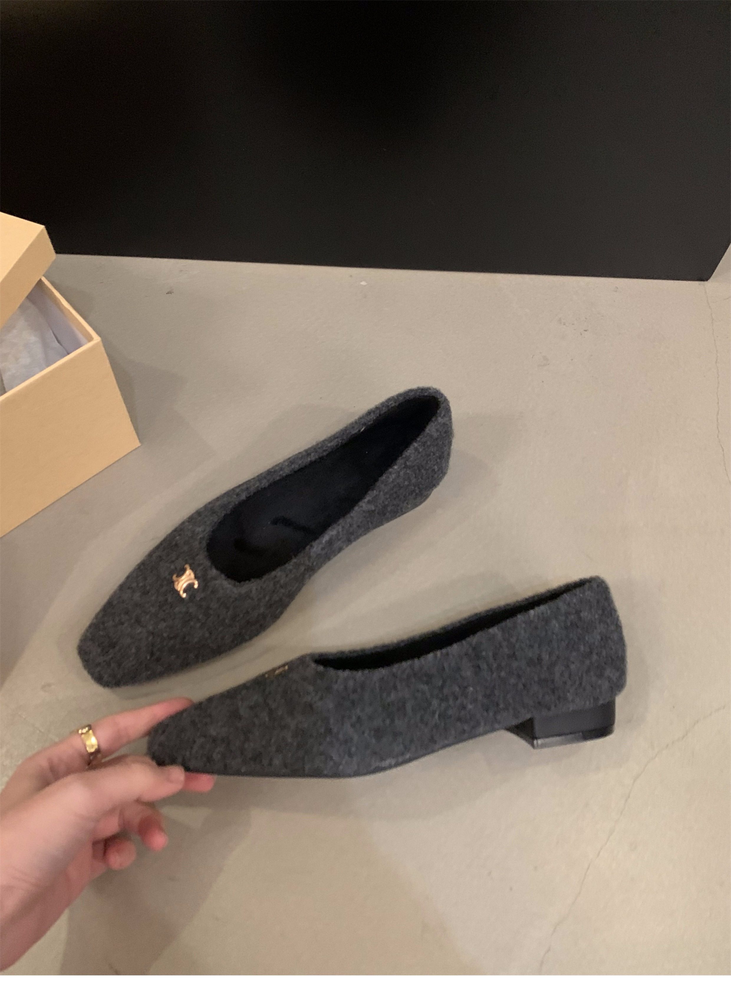 프랑스 플랫 향기로운 스타일 기모 완두콩 신발 여성 신발 2023 새로운 가을과 겨울 올 매치 아웃웨어 마오 신발스토어 가기