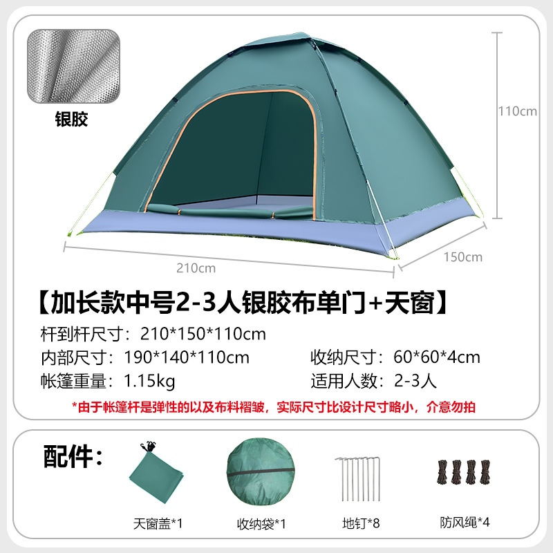 • 방수 중형 2인용 *실버 코팅* 양문형 + 양쪽 측면창 + 천창 [다크 그린]