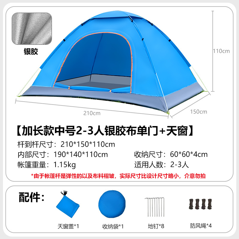 • 방수 중형 2인용 *실버 코팅* 양문형 + 양쪽 측면창 + 천창 [호수 블루]