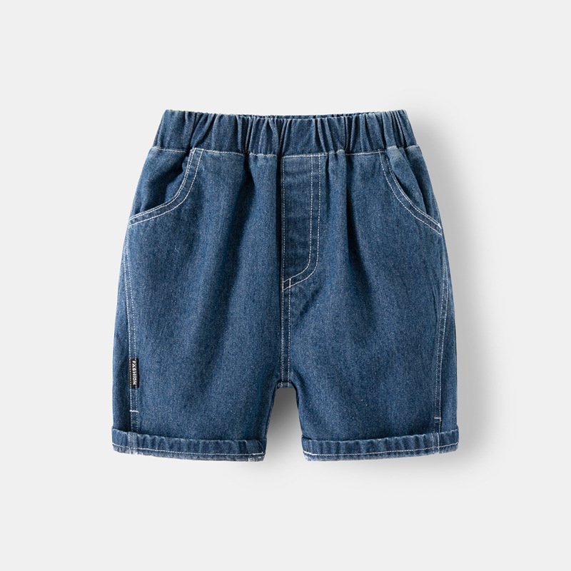 2024 새로운 소년 여름 바지 90-140 어린이 바지 아기 곡선 스티칭 반바지 머리카락 세대