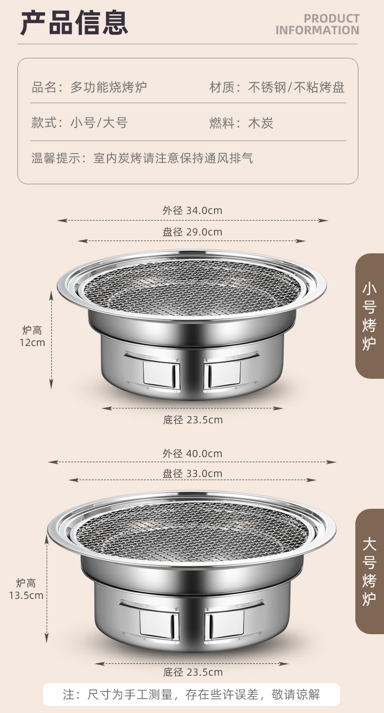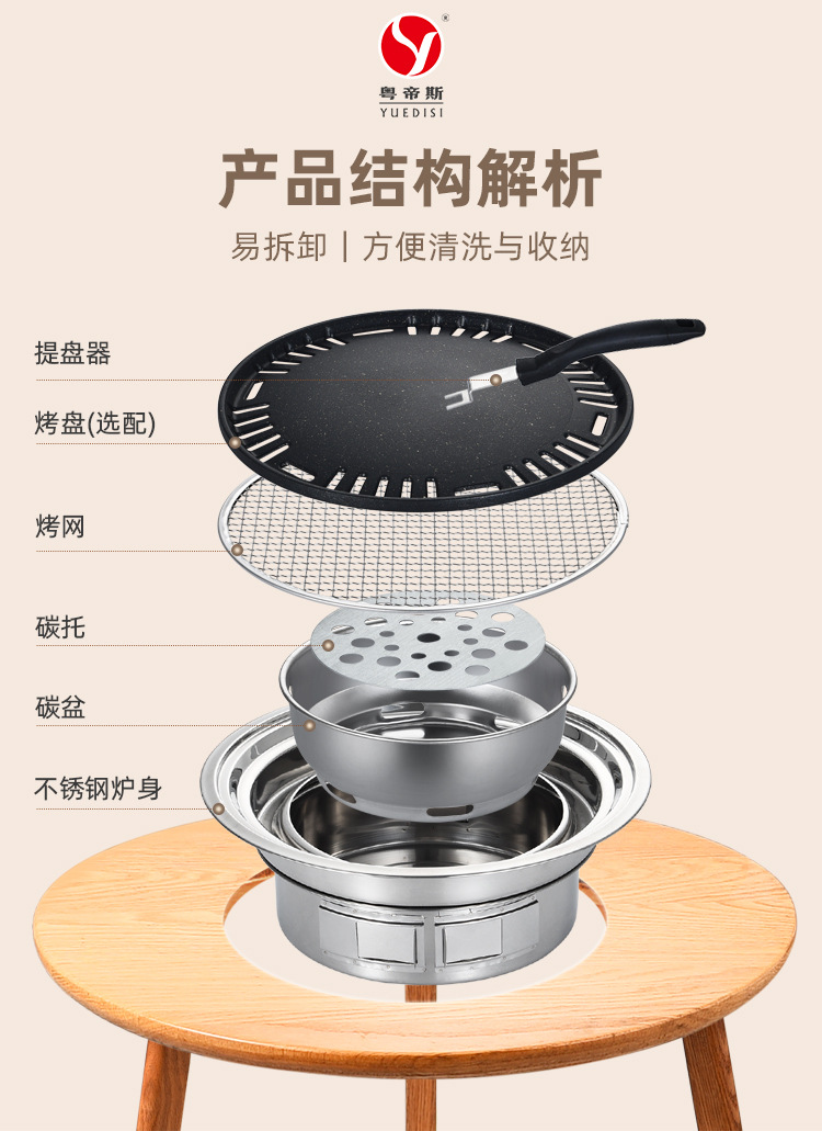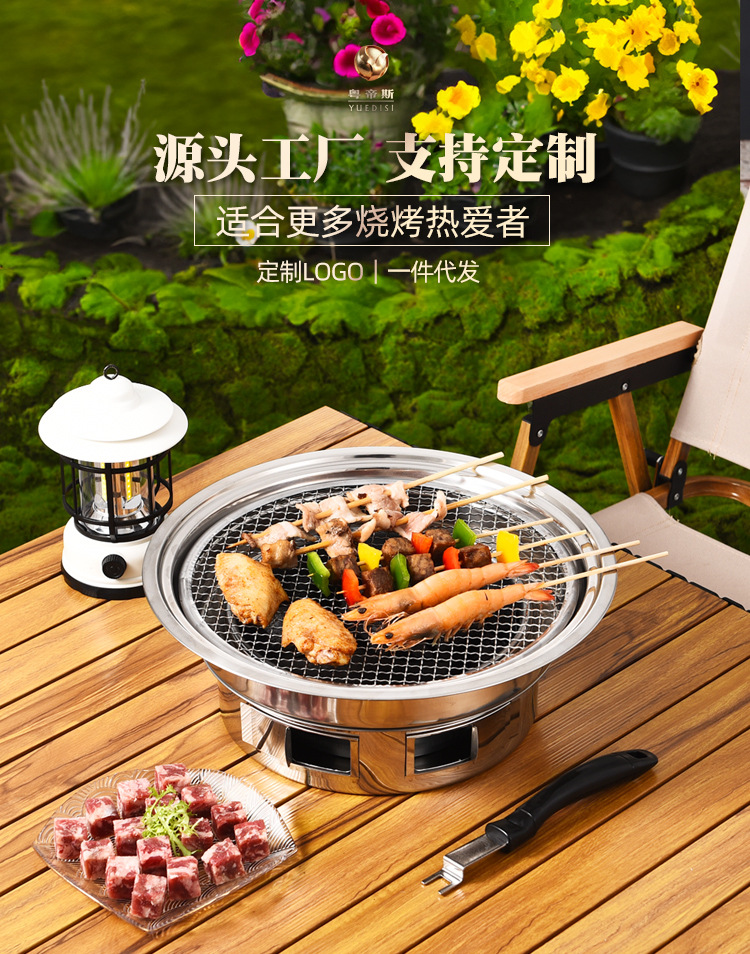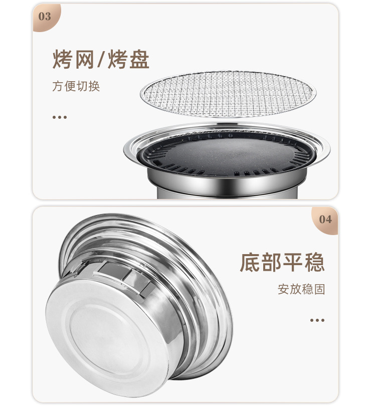 공장 직접 공급 한국 스테인레스 스틸 그릴 안뜰 그릴 라운드 숯 비 스틱 그릴 카본 그릴