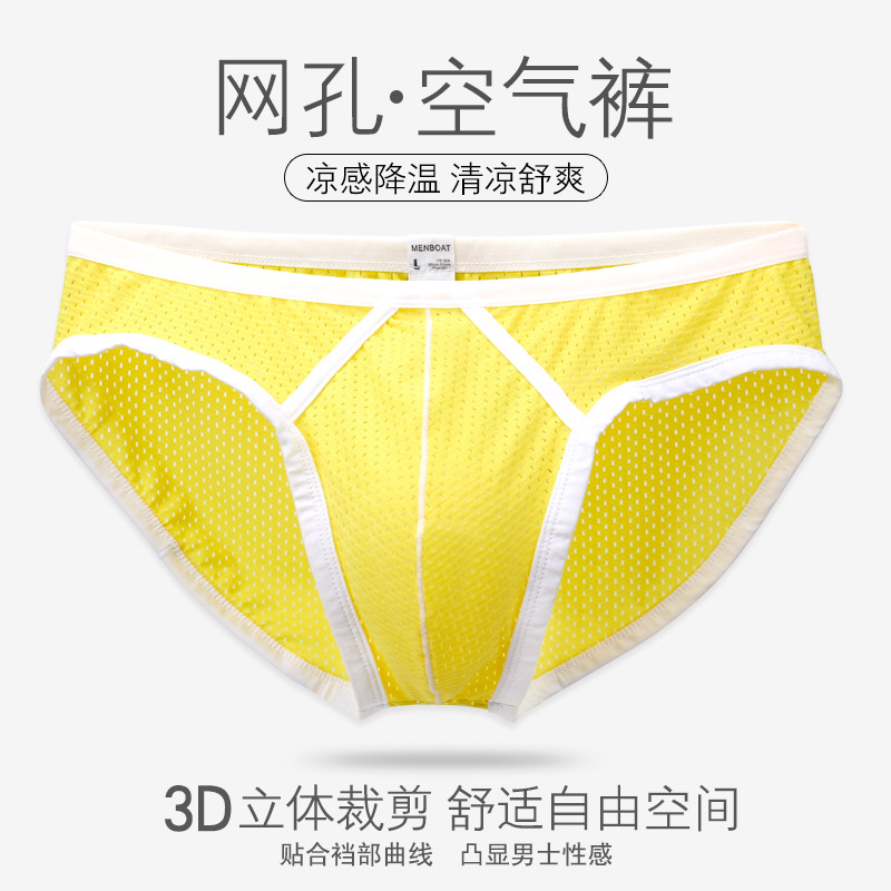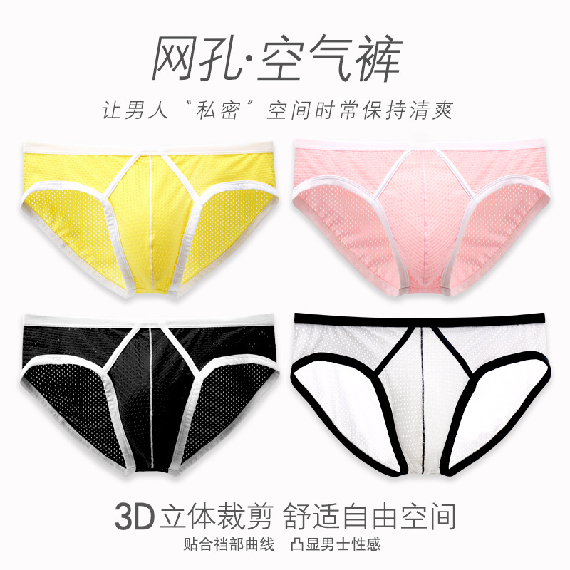 남성 브리프 남성의 낮은 허리 섹시한 아이스 실크 메쉬 단일 레이어 통기성 시원한 높은 탄성 단색 새로운 도매