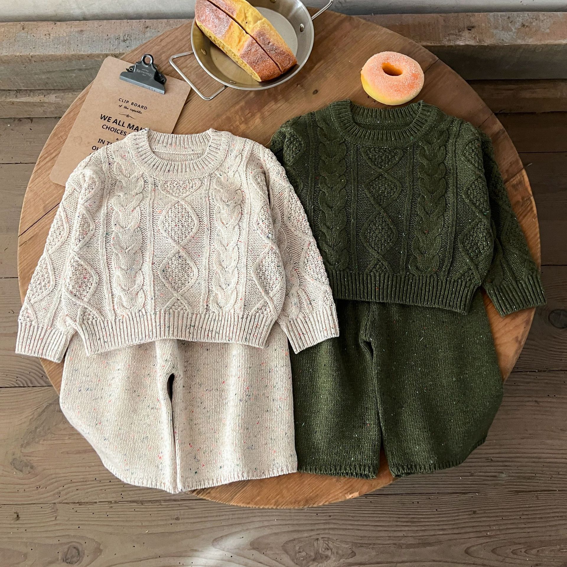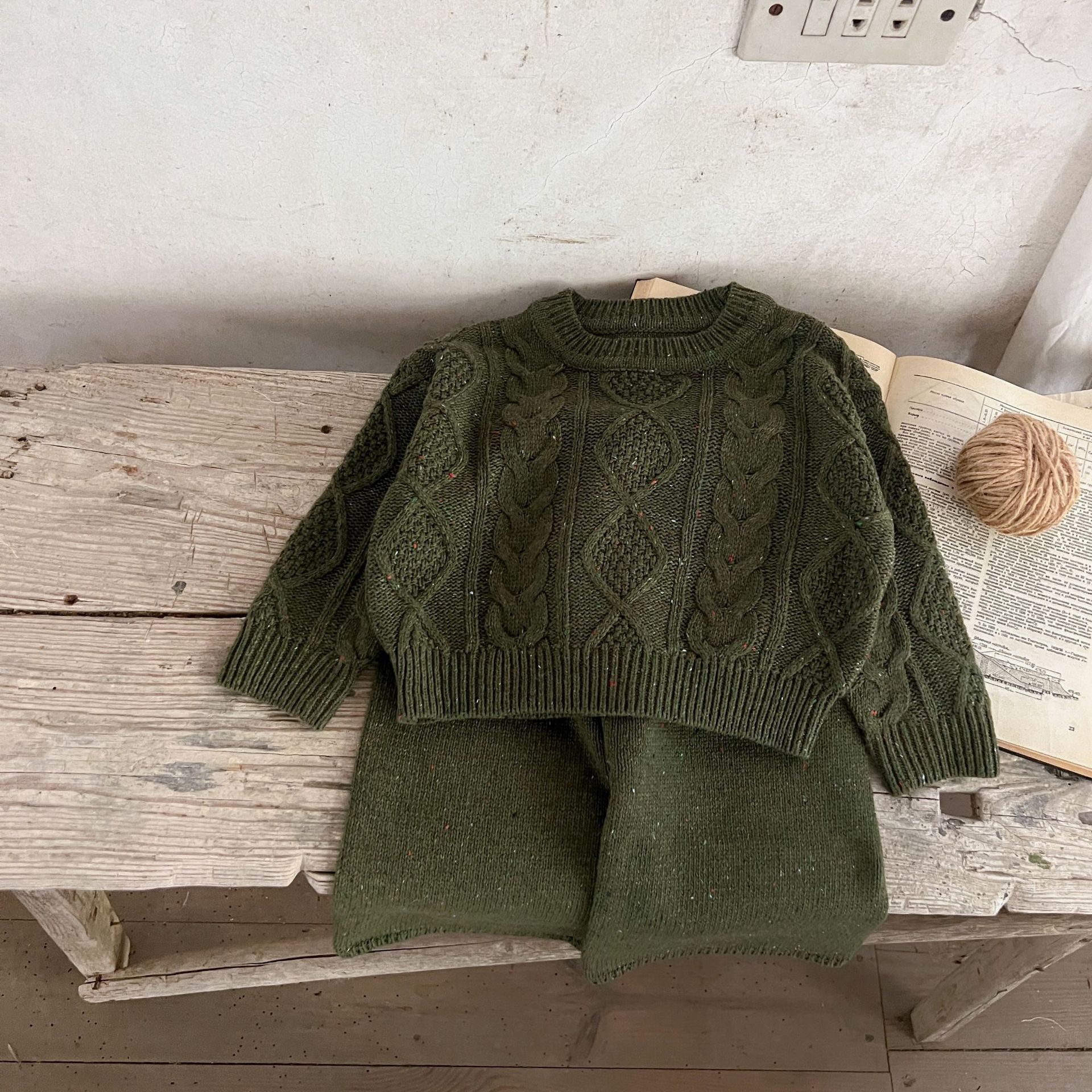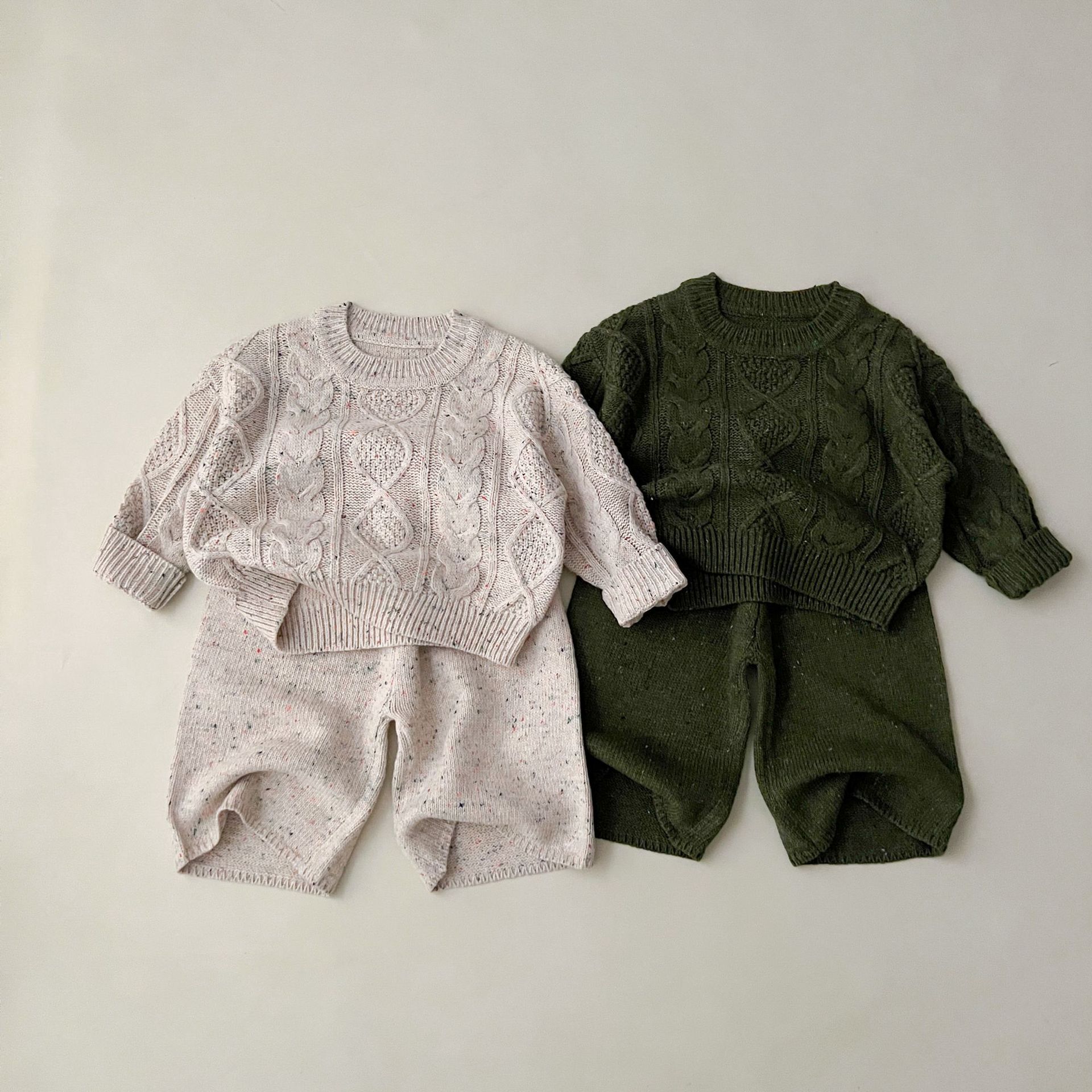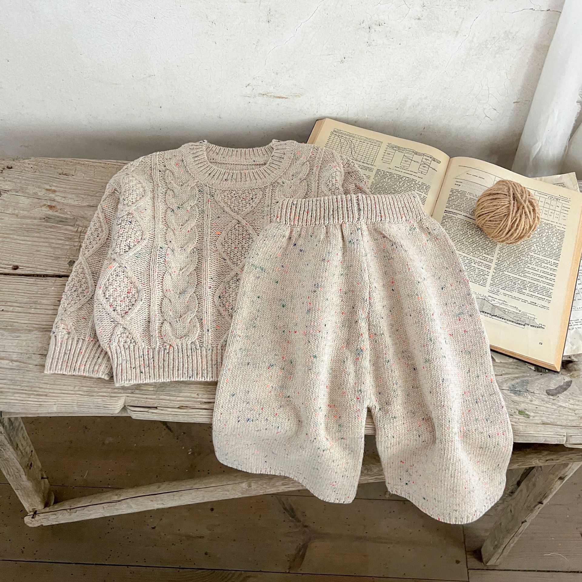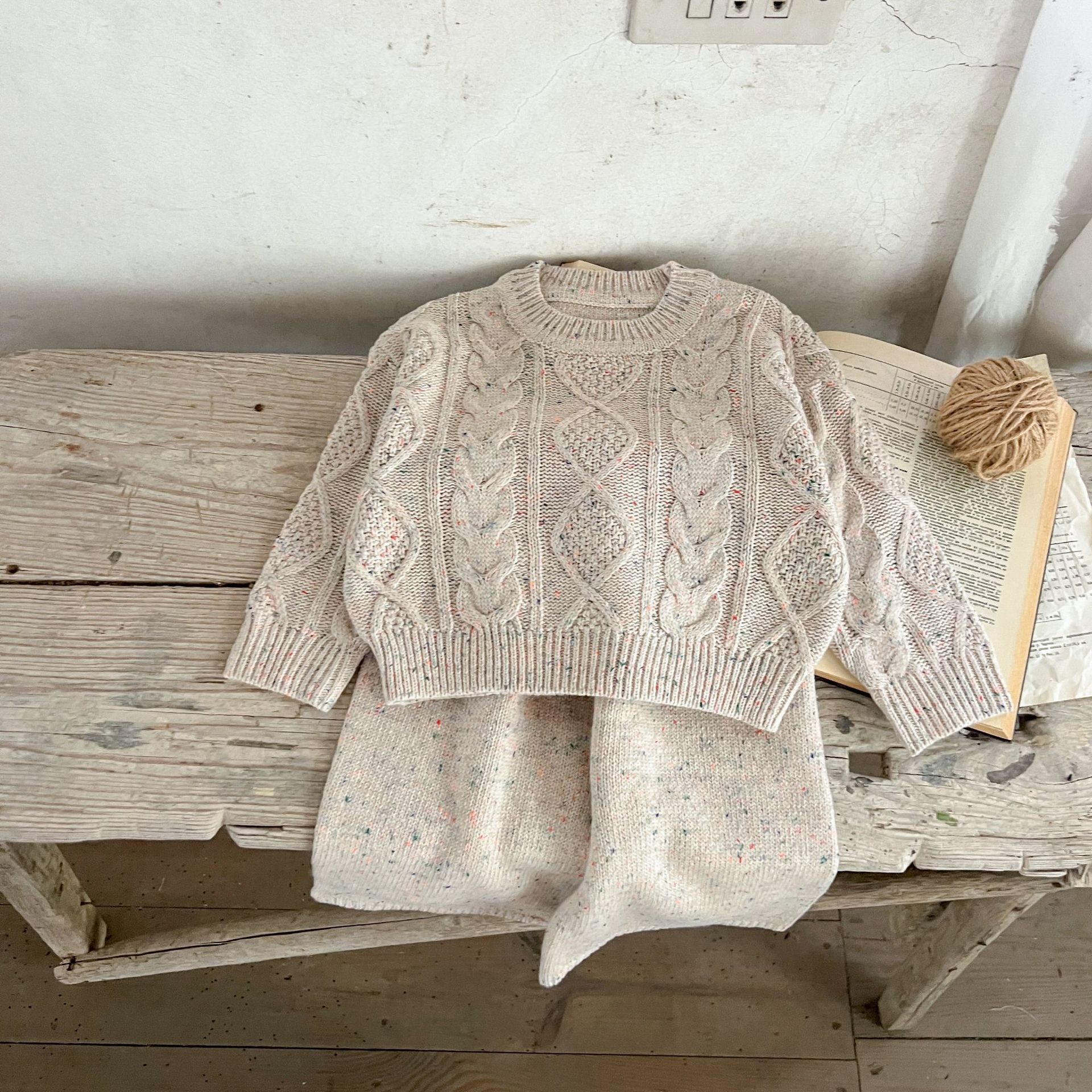 소년과 소녀를위한 봄 한국 스타일 2025 새로운 다목적 스웨터 니트 풀오버 탑 봄, 가을 바지 정장스토어 가기