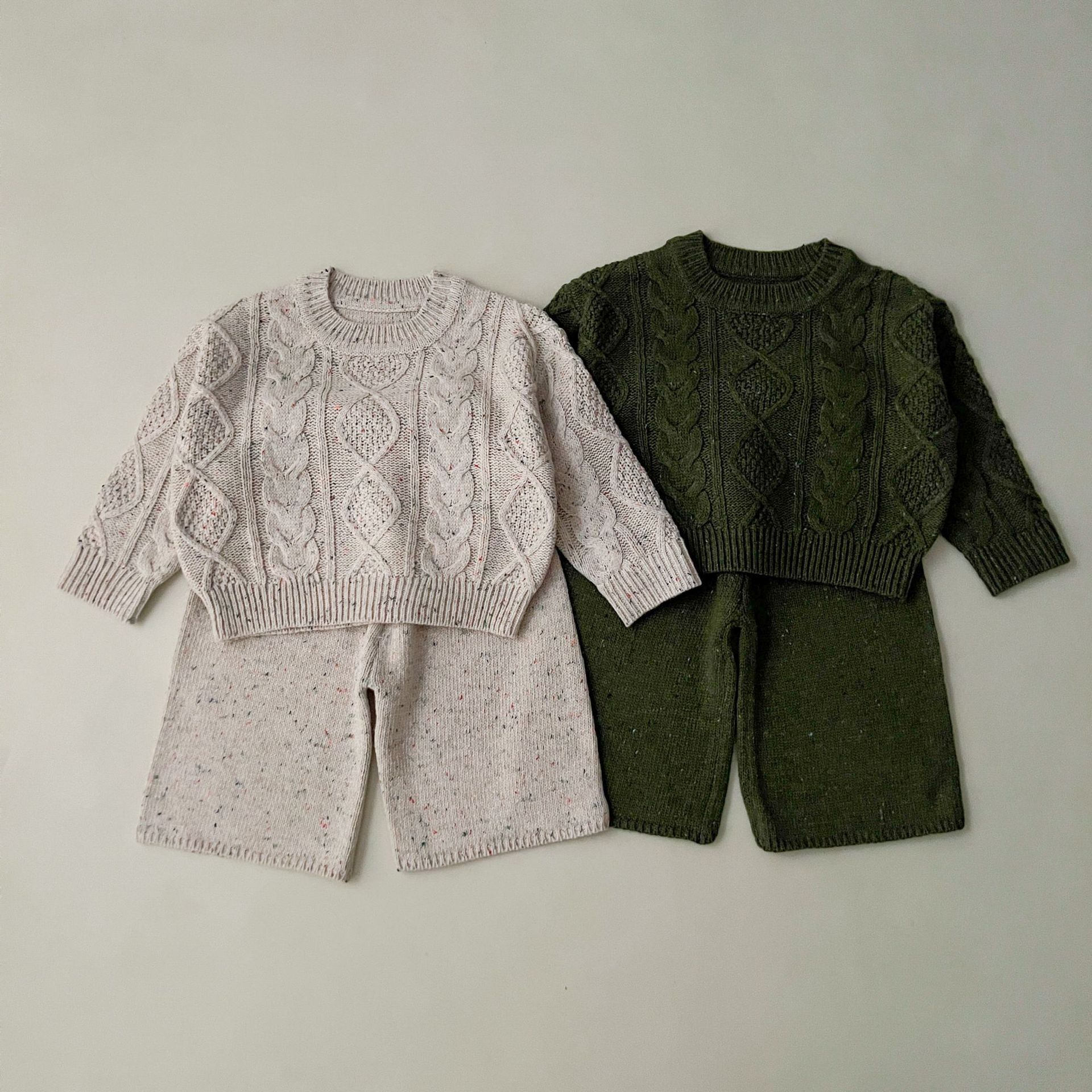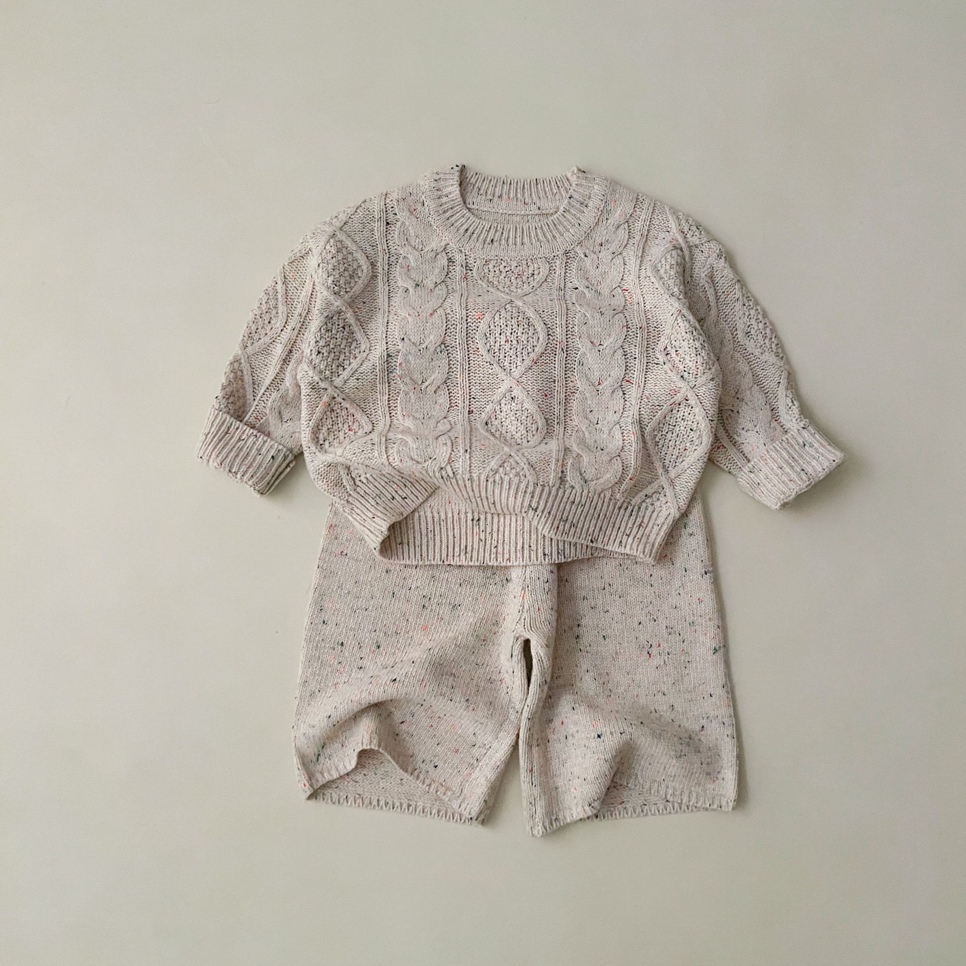 소년과 소녀를위한 봄 한국 스타일 2025 새로운 다목적 스웨터 니트 풀오버 탑 봄, 가을 바지 정장