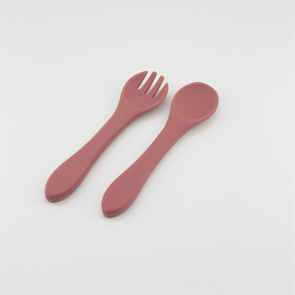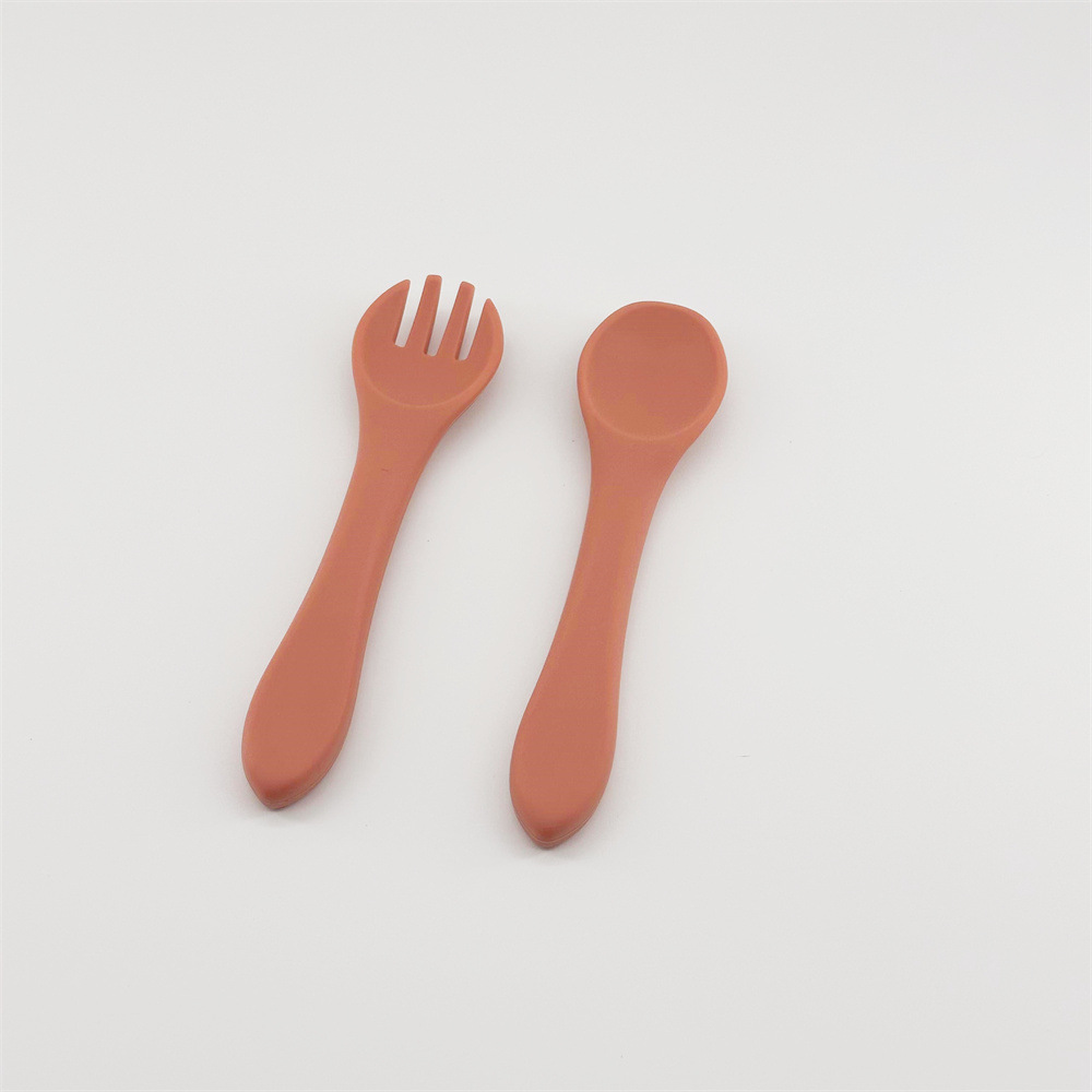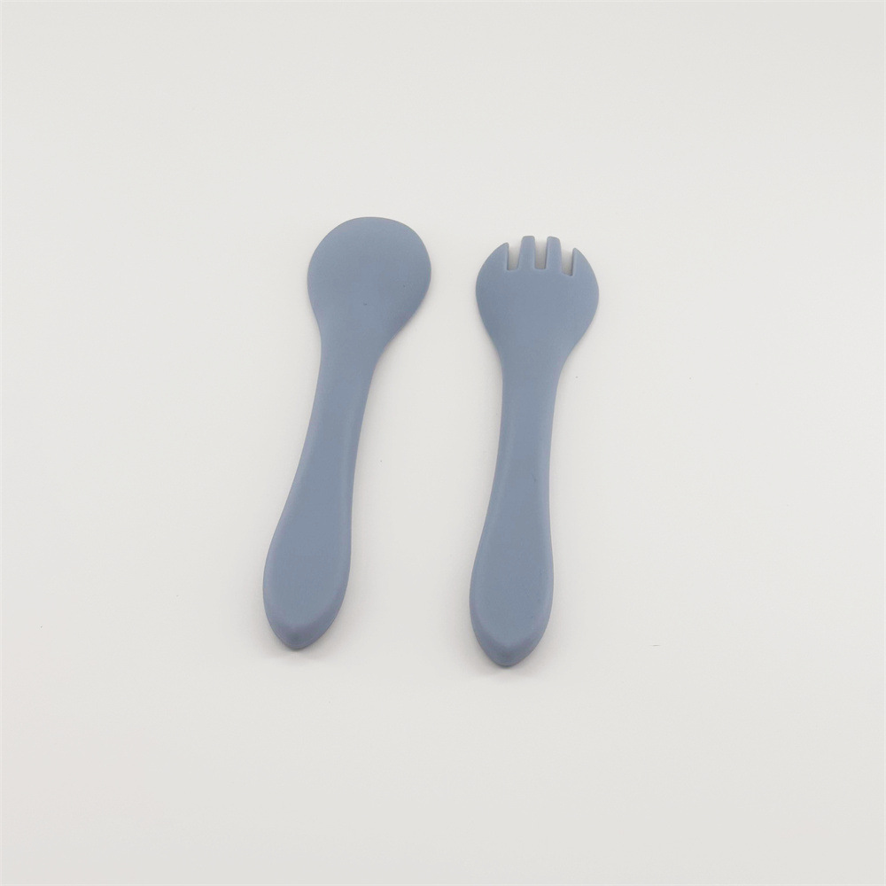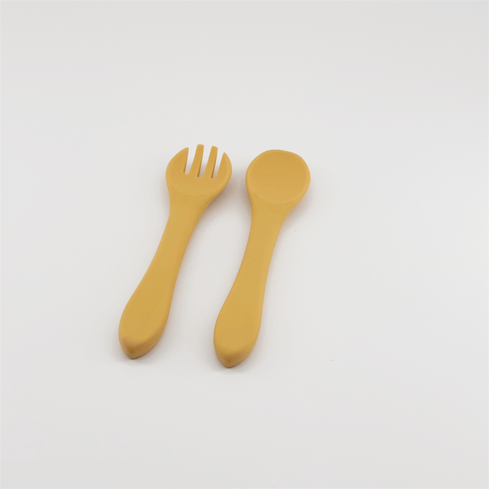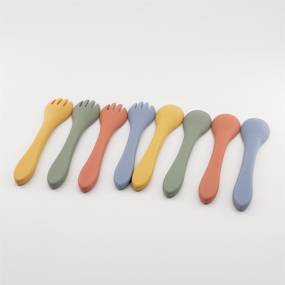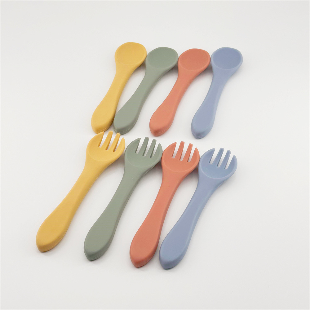 0-3 세 신생아는 전자 레인지 식기 세척기 식품 등급 실리콘 베이비 실리콘 포크 스푼을 사용할 수 있습니다.