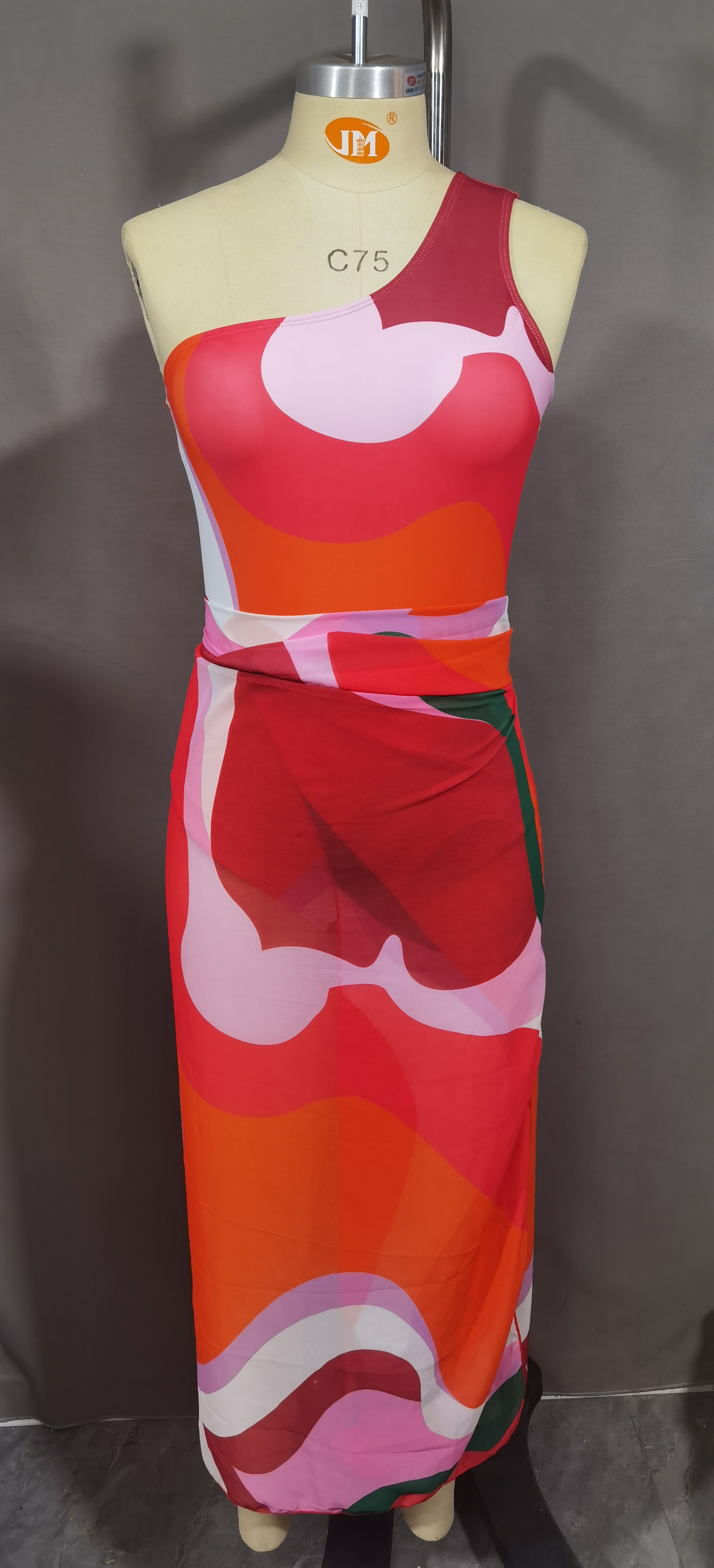 [여성용 온천 리조트 수영복] 패셔너블한 프린트 싱글 숄더 스트랩 점프수트 자외선 차단 거즈 스커트 유럽 및 미국 수영복 여성용 수영복