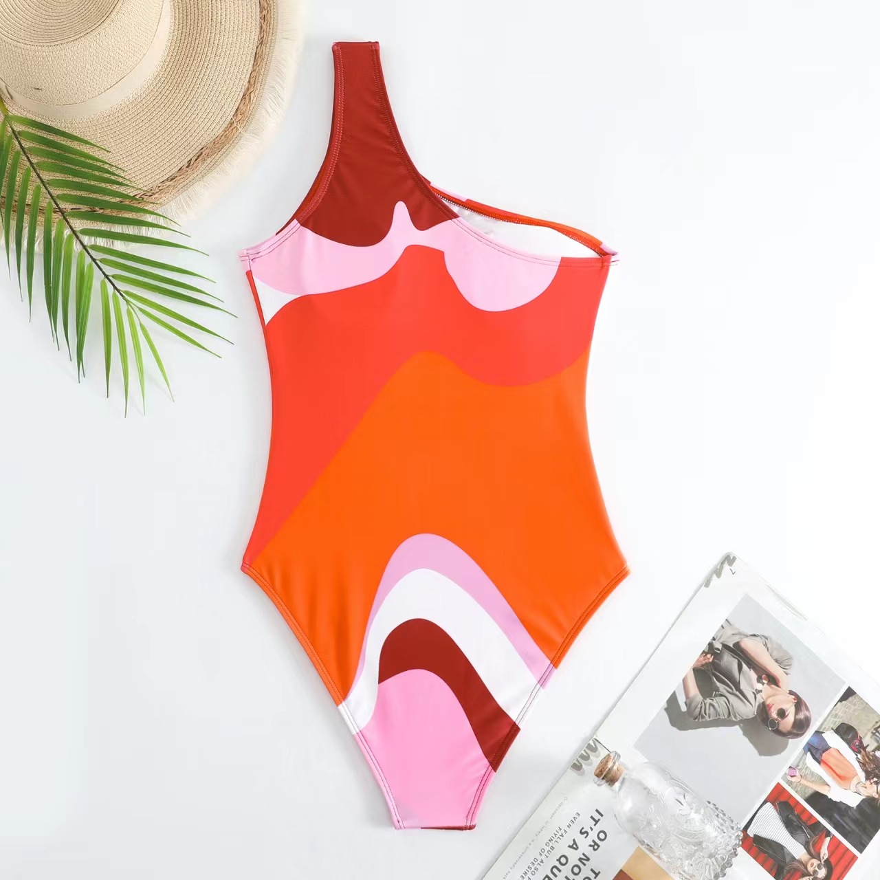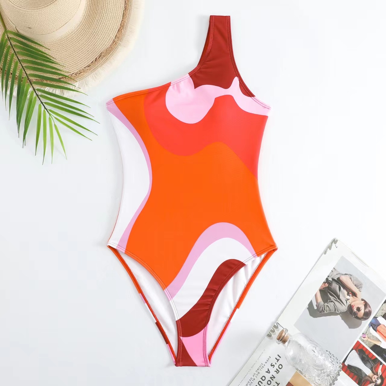 [여성용 온천 리조트 수영복] 패셔너블한 프린트 싱글 숄더 스트랩 점프수트 자외선 차단 거즈 스커트 유럽 및 미국 수영복 여성용 수영복스토어 가기