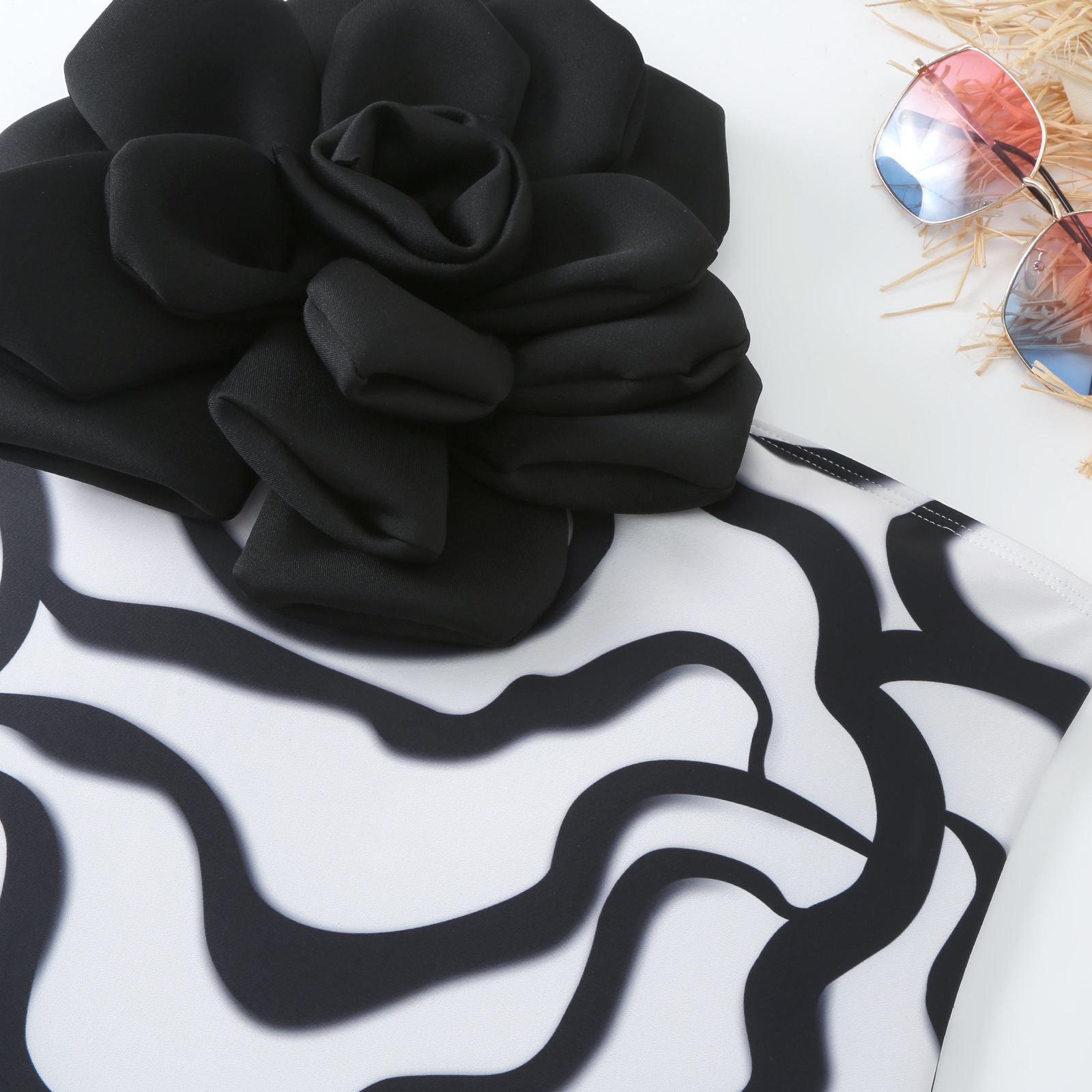 [여성용 페어리 스타일 바캉스 스타일 수영복] 큰 꽃잎으로 장식된 점프수트 메쉬 스커트 아마존 유럽 및 미국 베스트셀러 모델스토어 가기