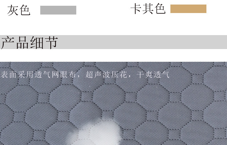 透气网眼布+超声波间棉+TPU防水层+防滑颗粒布