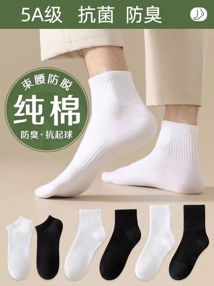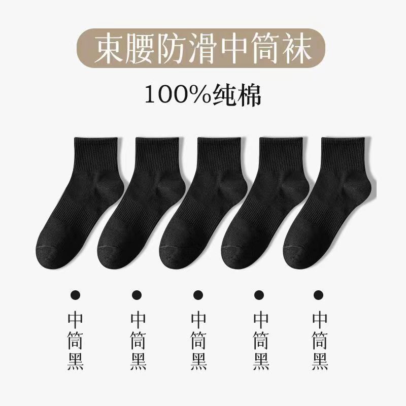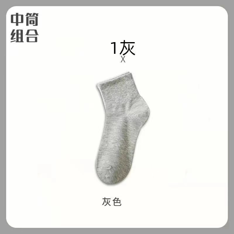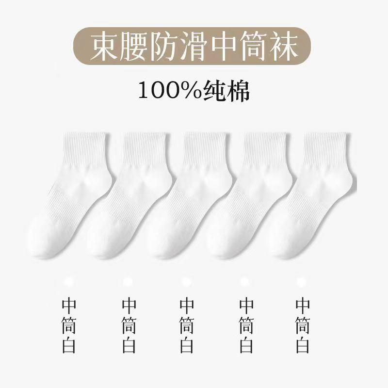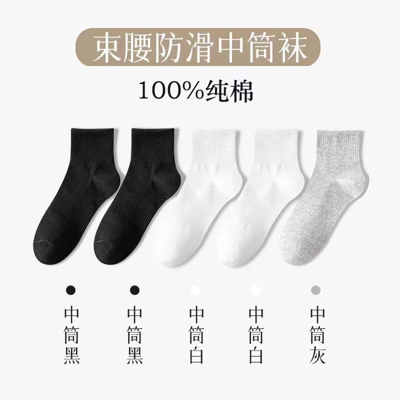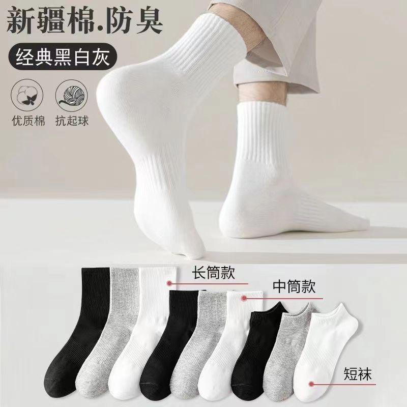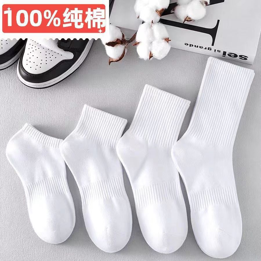 면 양말 남성용 흰색 종아리 중반 소년 스포츠 스타킹 남성용 짧은 양말 단색 Zhuji 양말스토어 가기