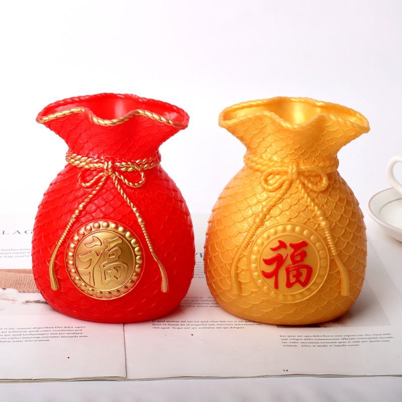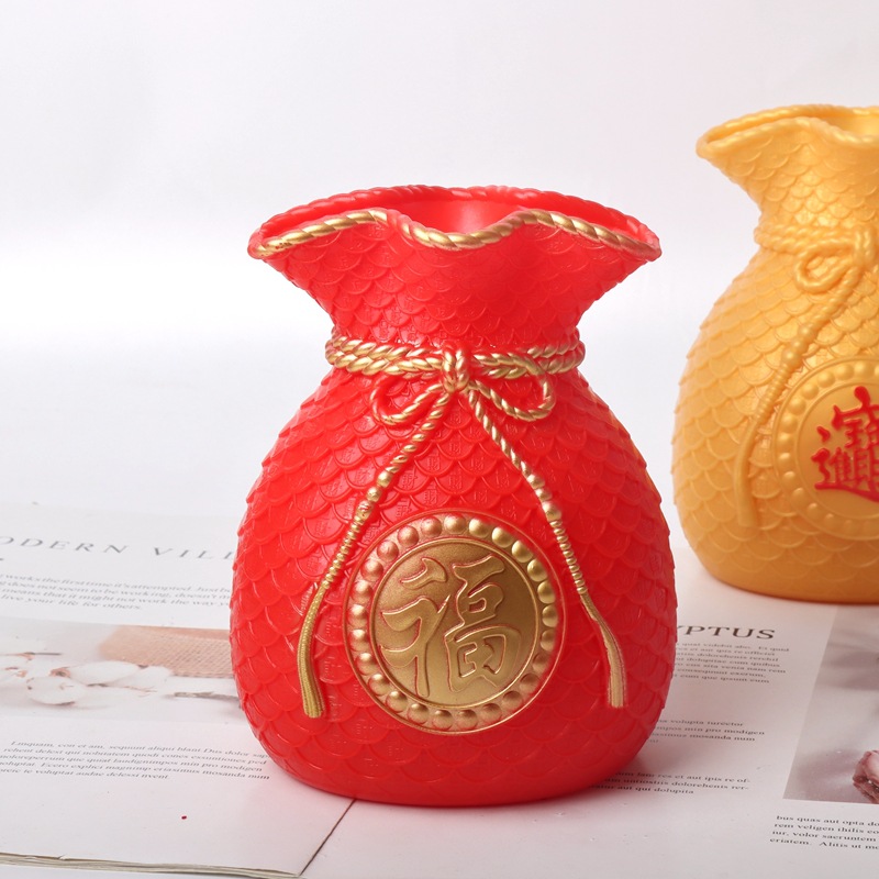 축제 행운의 가방 꽃병 창조적 인 거실 장식 플라스틱 꽃병 밀 귀 말린 꽃 돈 가방 꽃꽂이 공예 재고스토어 가기
