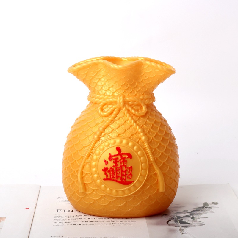 축제 행운의 가방 꽃병 창조적 인 거실 장식 플라스틱 꽃병 밀 귀 말린 꽃 돈 가방 꽃꽂이 공예 재고