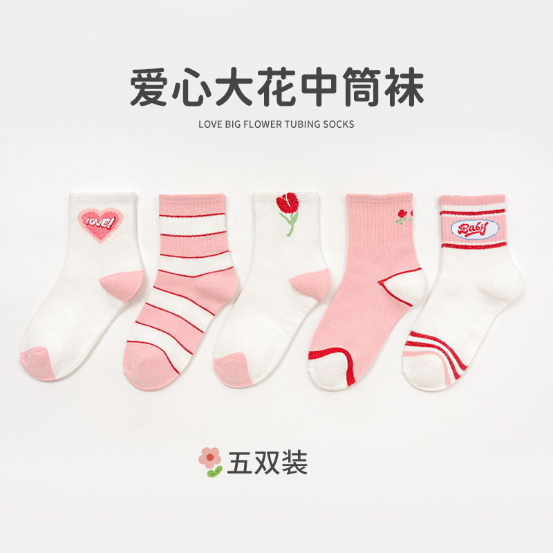 쿨로 미 어린이 양말 가을과 겨울 새 소녀의 중간 종아리 길이 양말 학생 양말 귀여운 공주 만화 스타킹 인기있는 어린이 양말