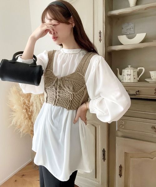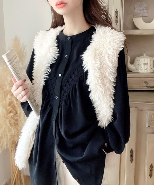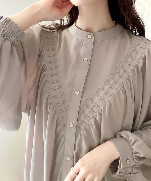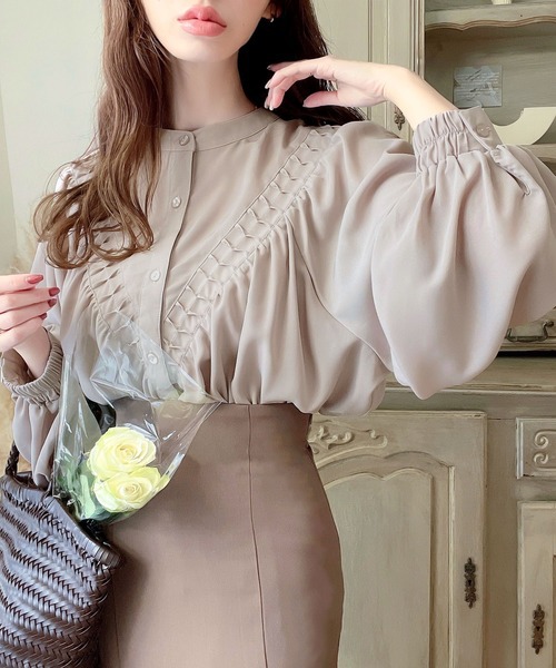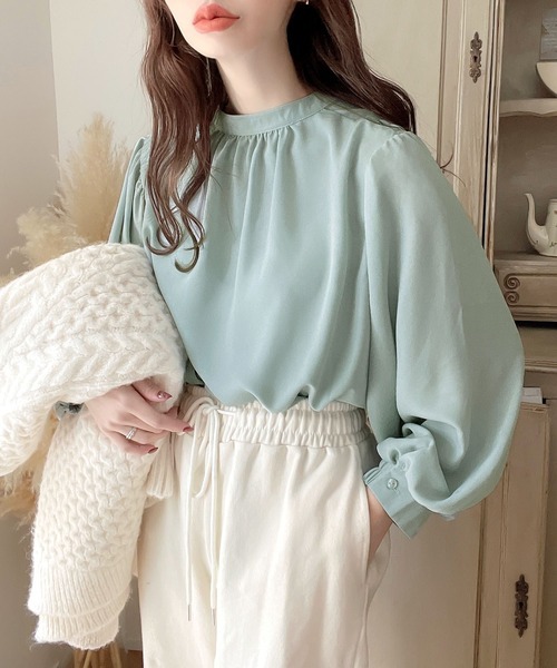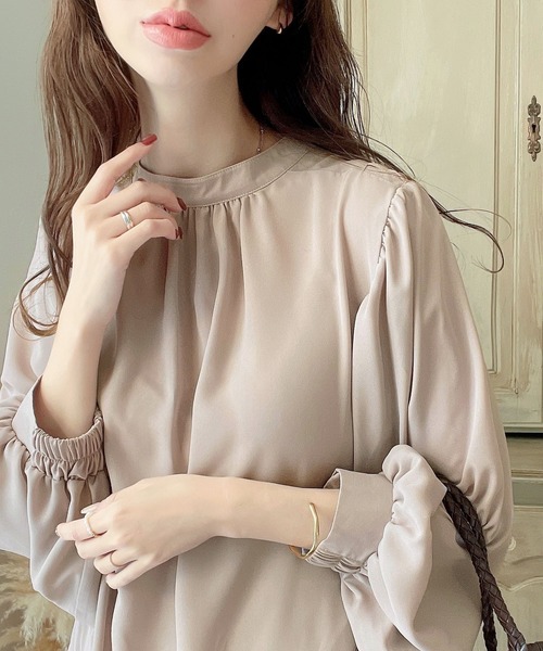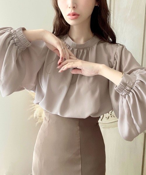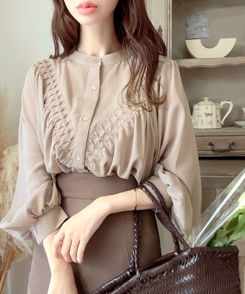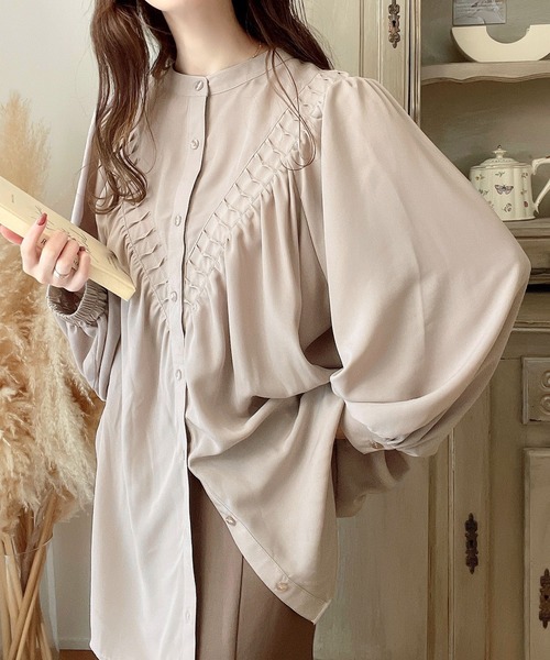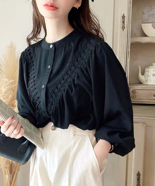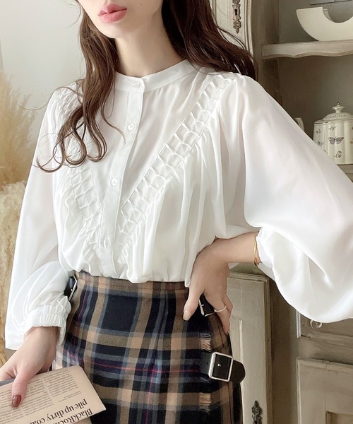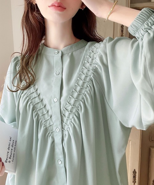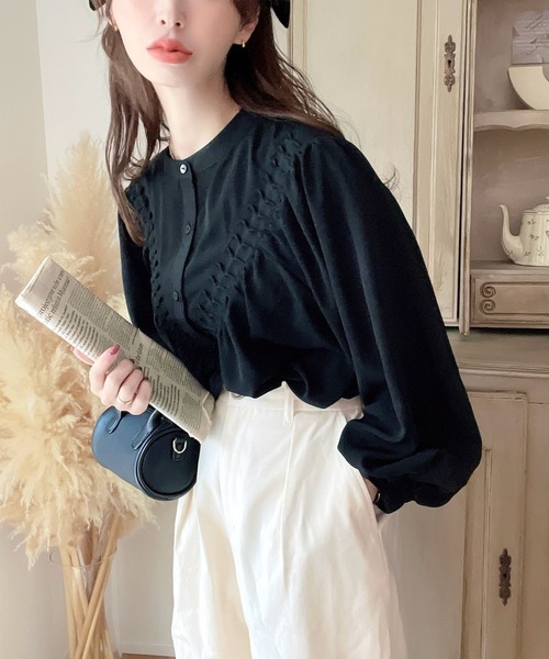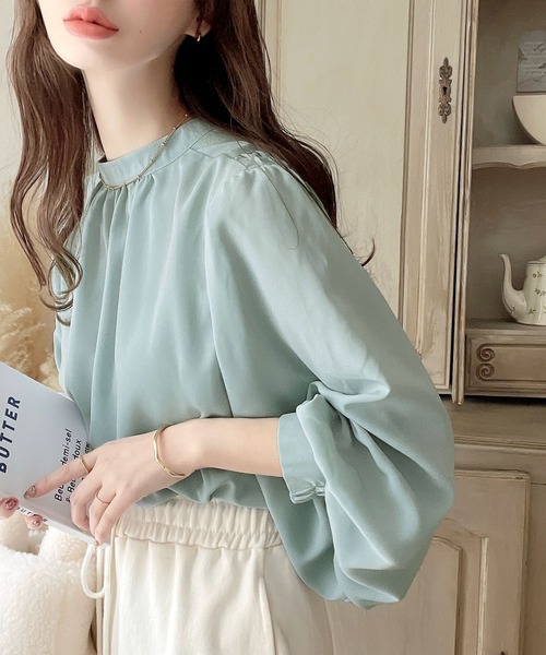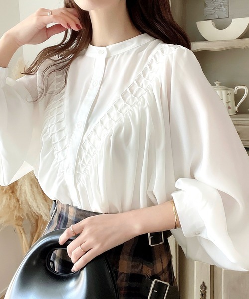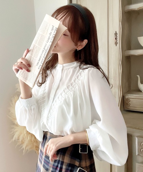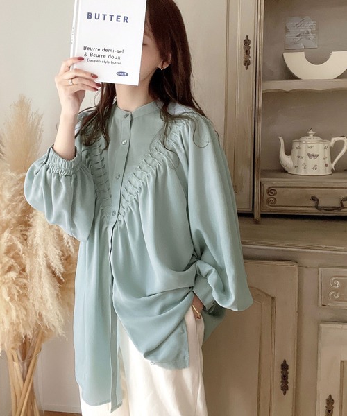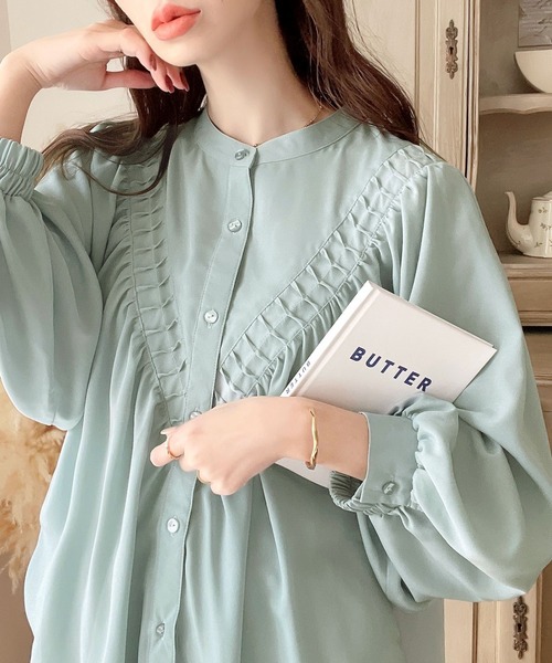 2026년 일본과 한국의 새로운 스타일, 우아하고 고급스러운 라운드넥 플리츠 셔츠, 앞뒤 2가지 착용법, 달콤하고 루즈한 랜턴 슬리브 쉬폰 셔츠스토어 가기