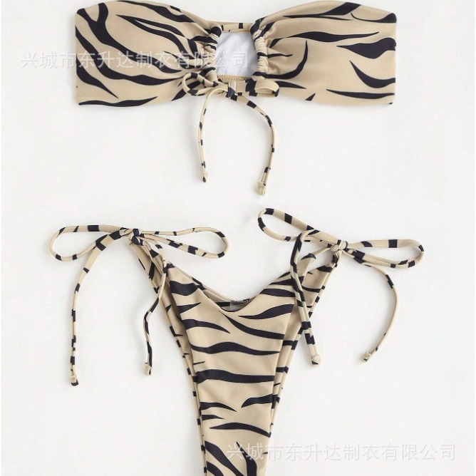 Dongshengda 2024 새로운 섹시한 분할 튜브 탑 할로우 핫 레오파드 무늬 레이스 업 조정 가능한 여성 수영복 제조업체