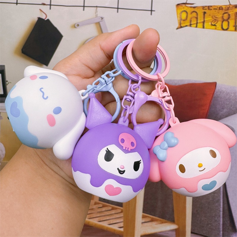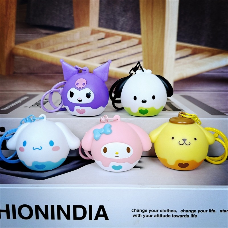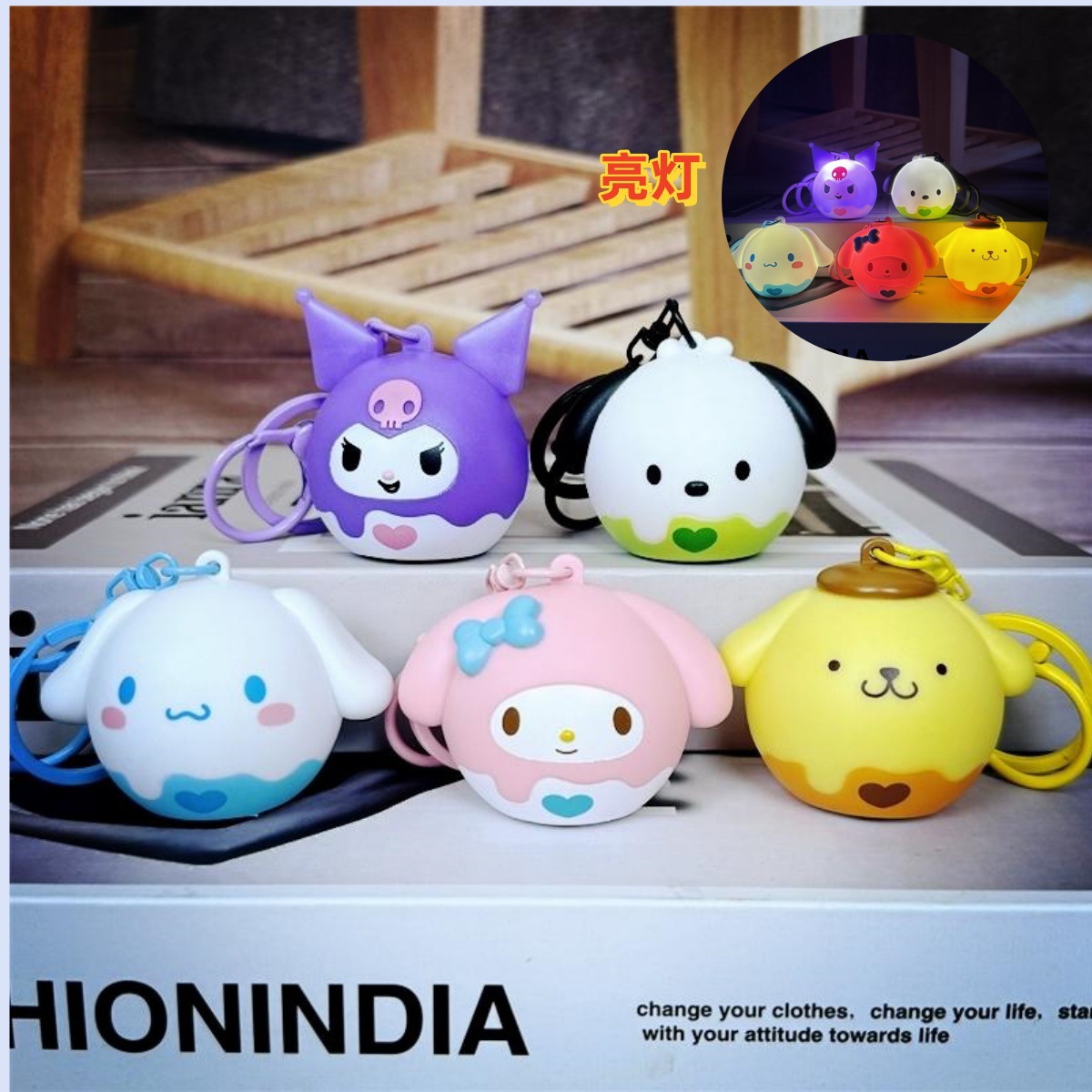 빛나는 미니 야간 조명 쿠로미 만화 캐릭터 키체인 자동차 가방 장식품 빛나는 키체인