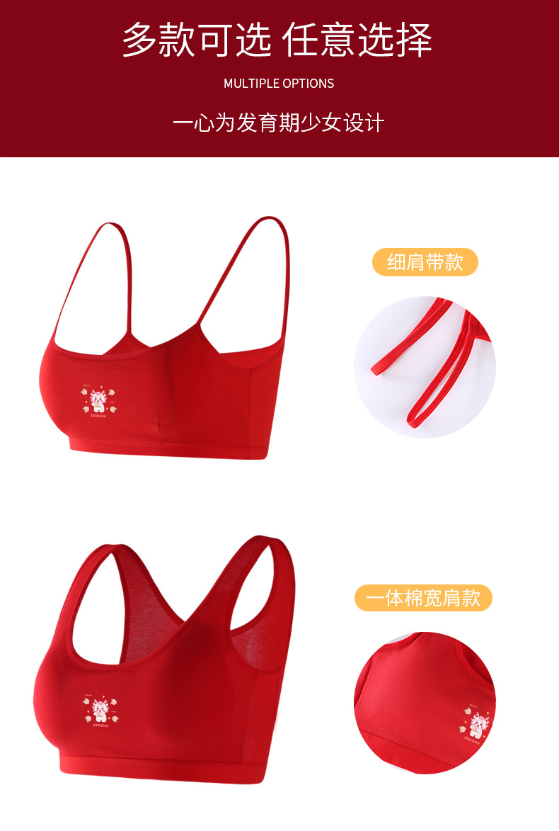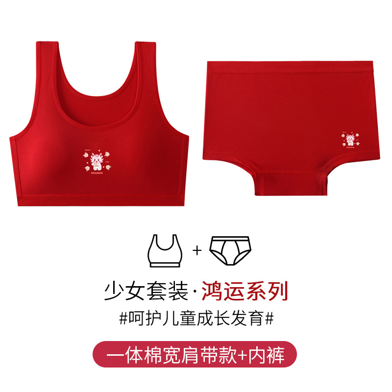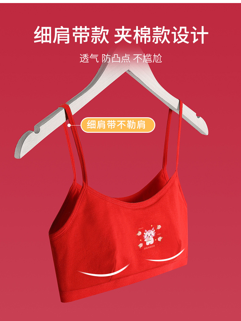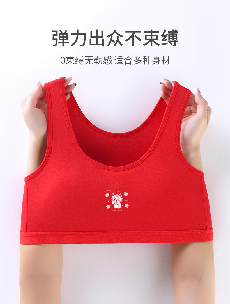 뱀의 해를 위한 큰 빨간색 소녀 속옷 세트, 생년월일 소녀 발달기 순면 만화 캐릭터 고정컵 학생 조끼스토어 가기