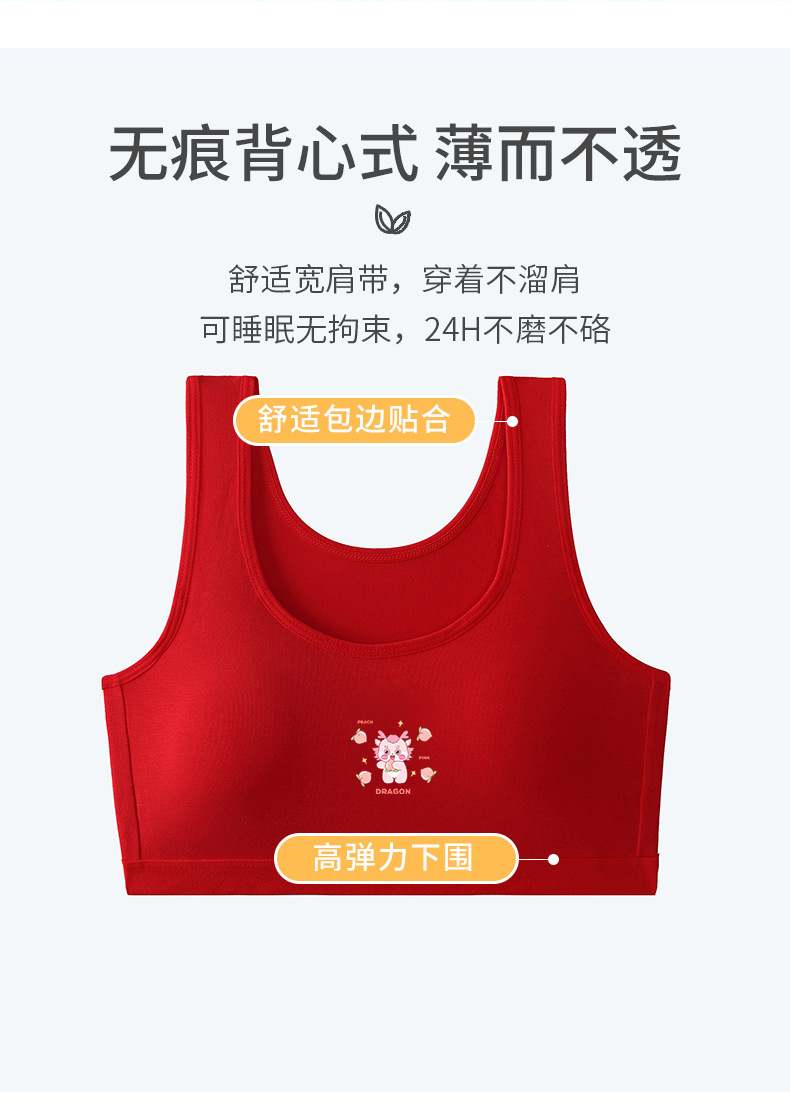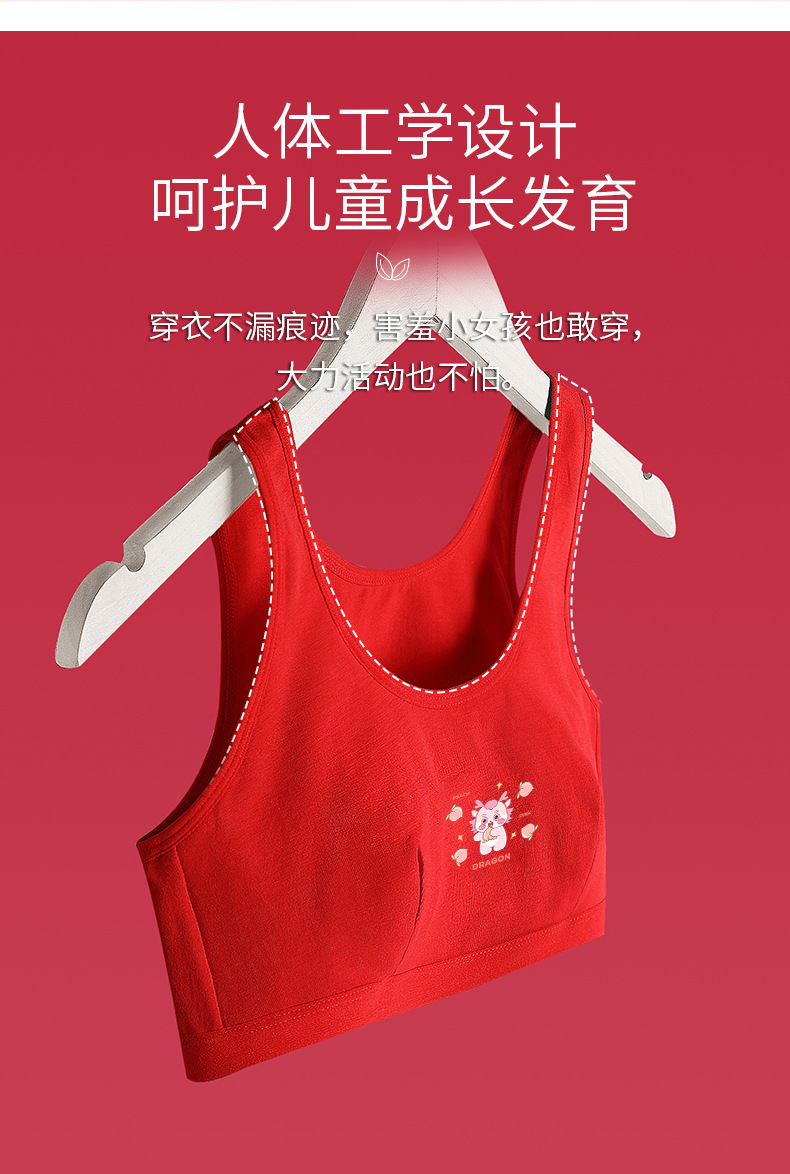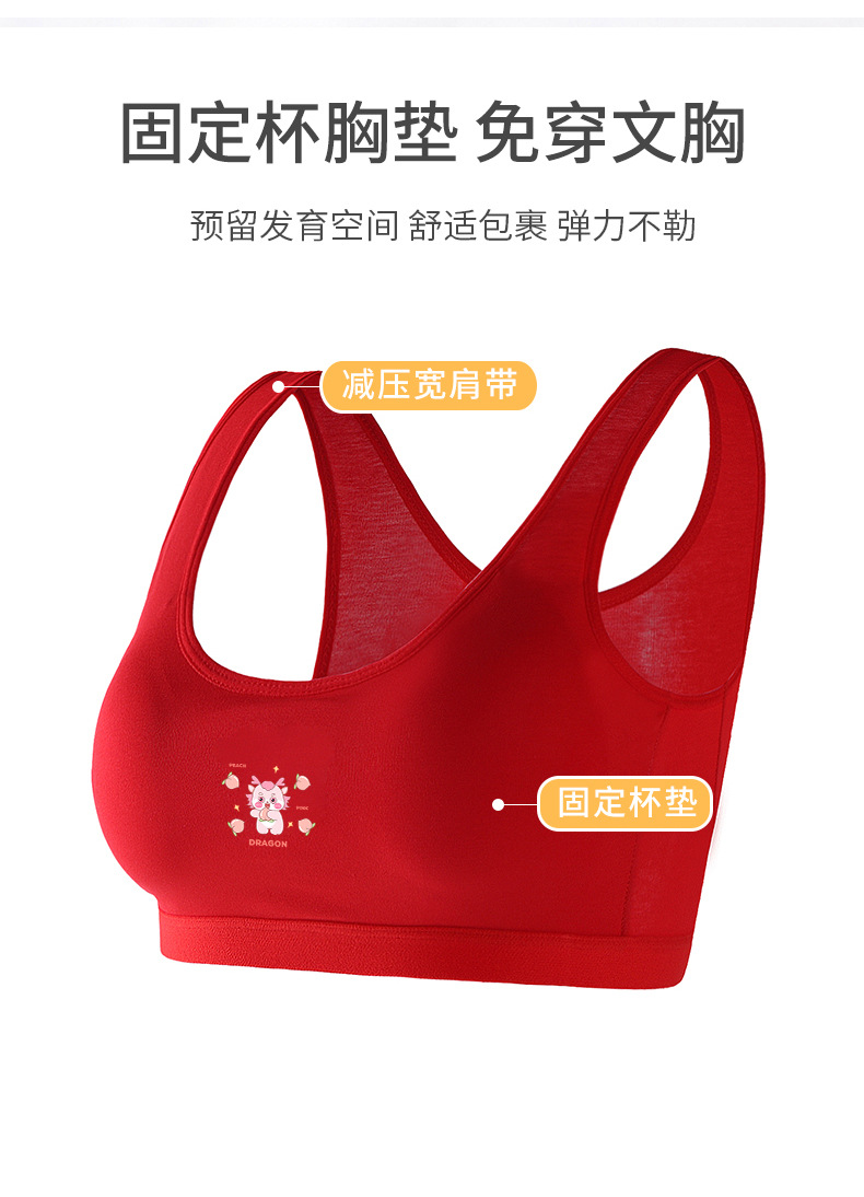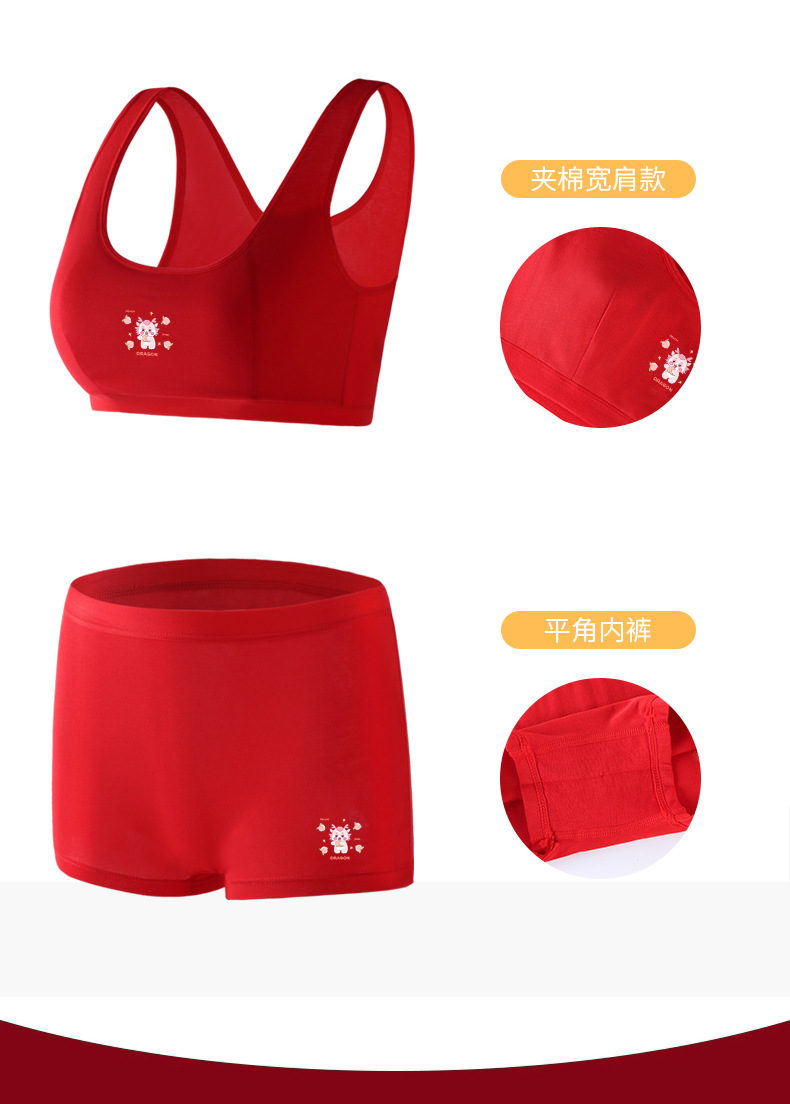뱀의 해를 위한 큰 빨간색 소녀 속옷 세트, 생년월일 소녀 발달기 순면 만화 캐릭터 고정컵 학생 조끼스토어 가기