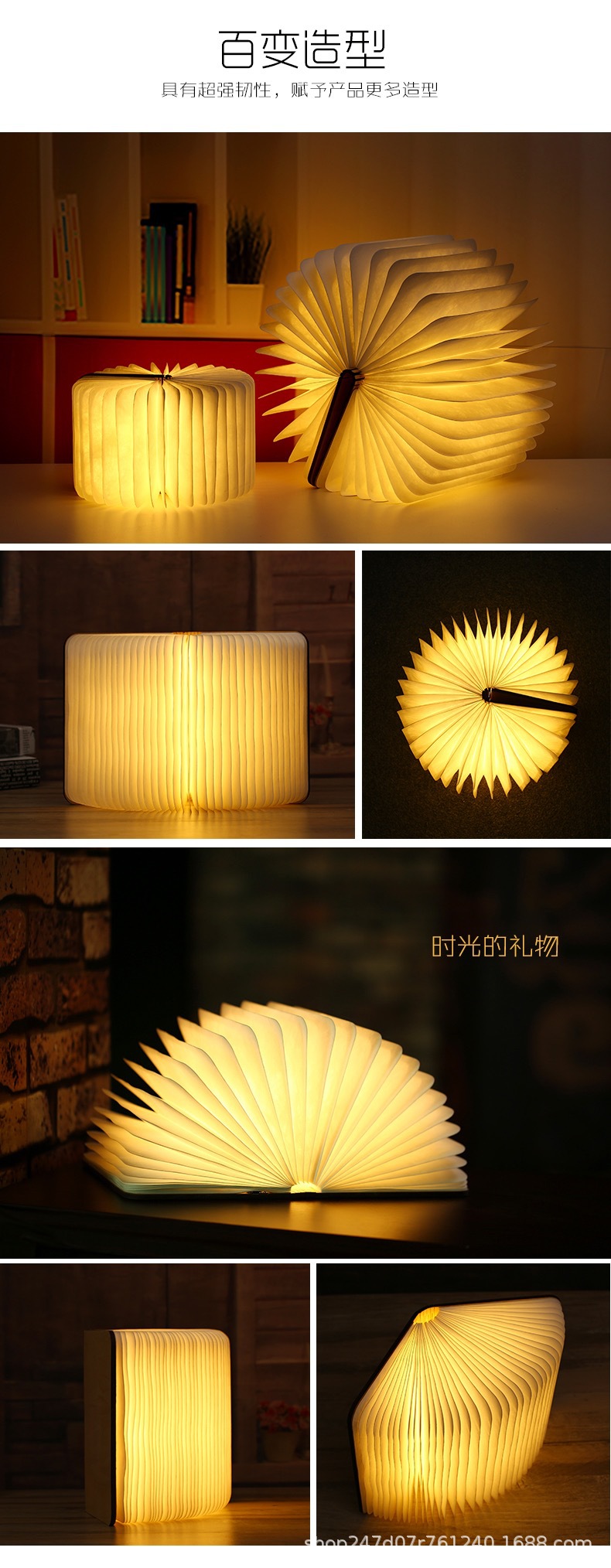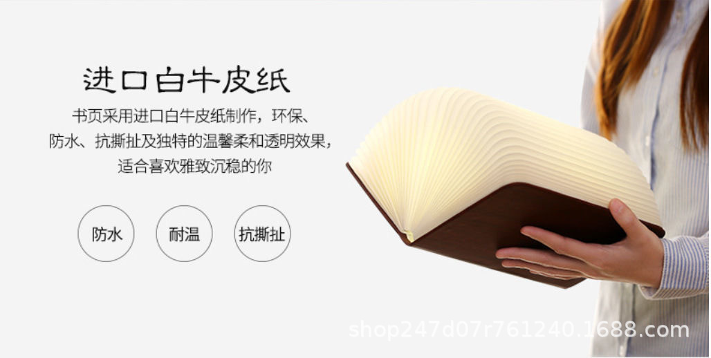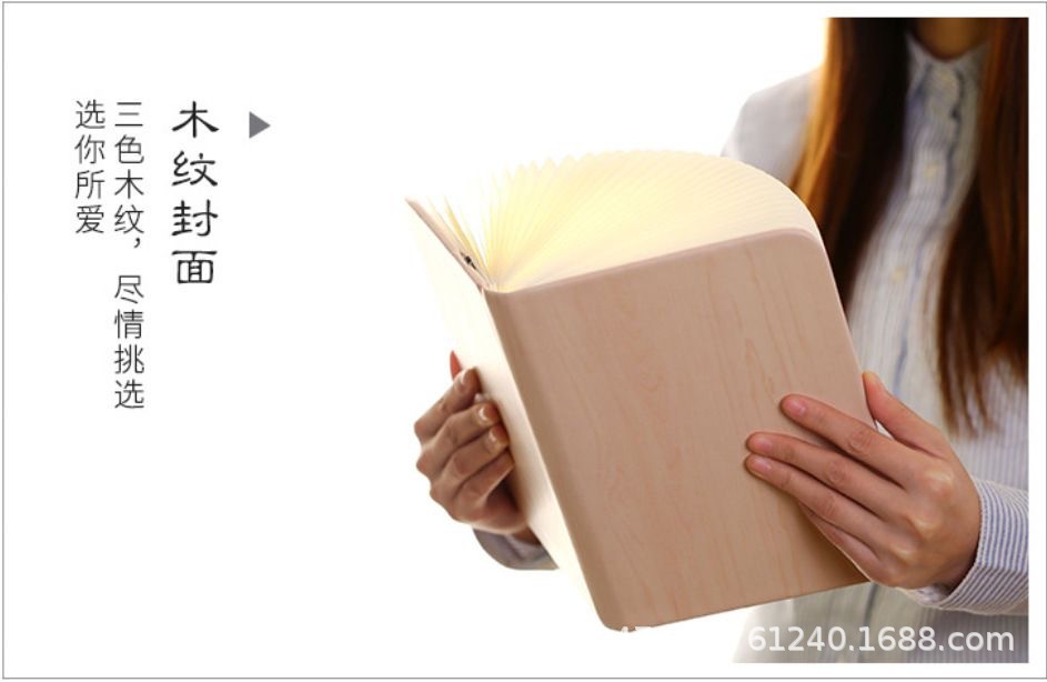 가죽 삼색 나무결 무늬 창의적인 접이식 책 모양 램프 LED 눈 보호 분위기 조명 야간등 중추절 연회 선물스토어 가기