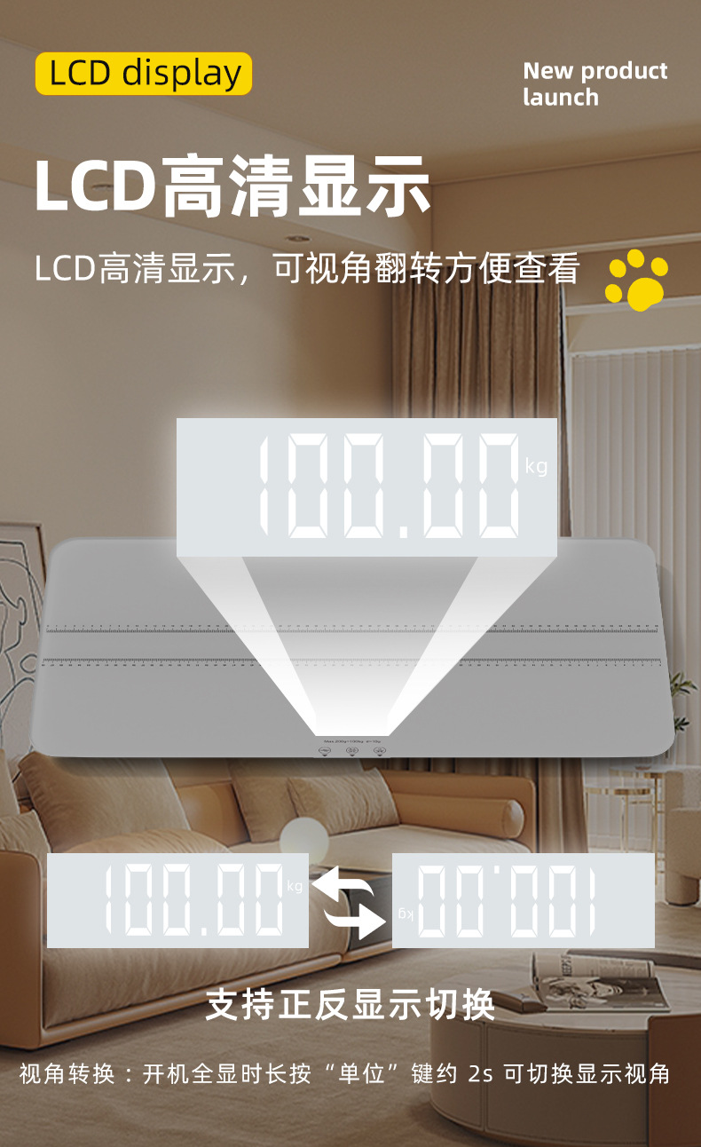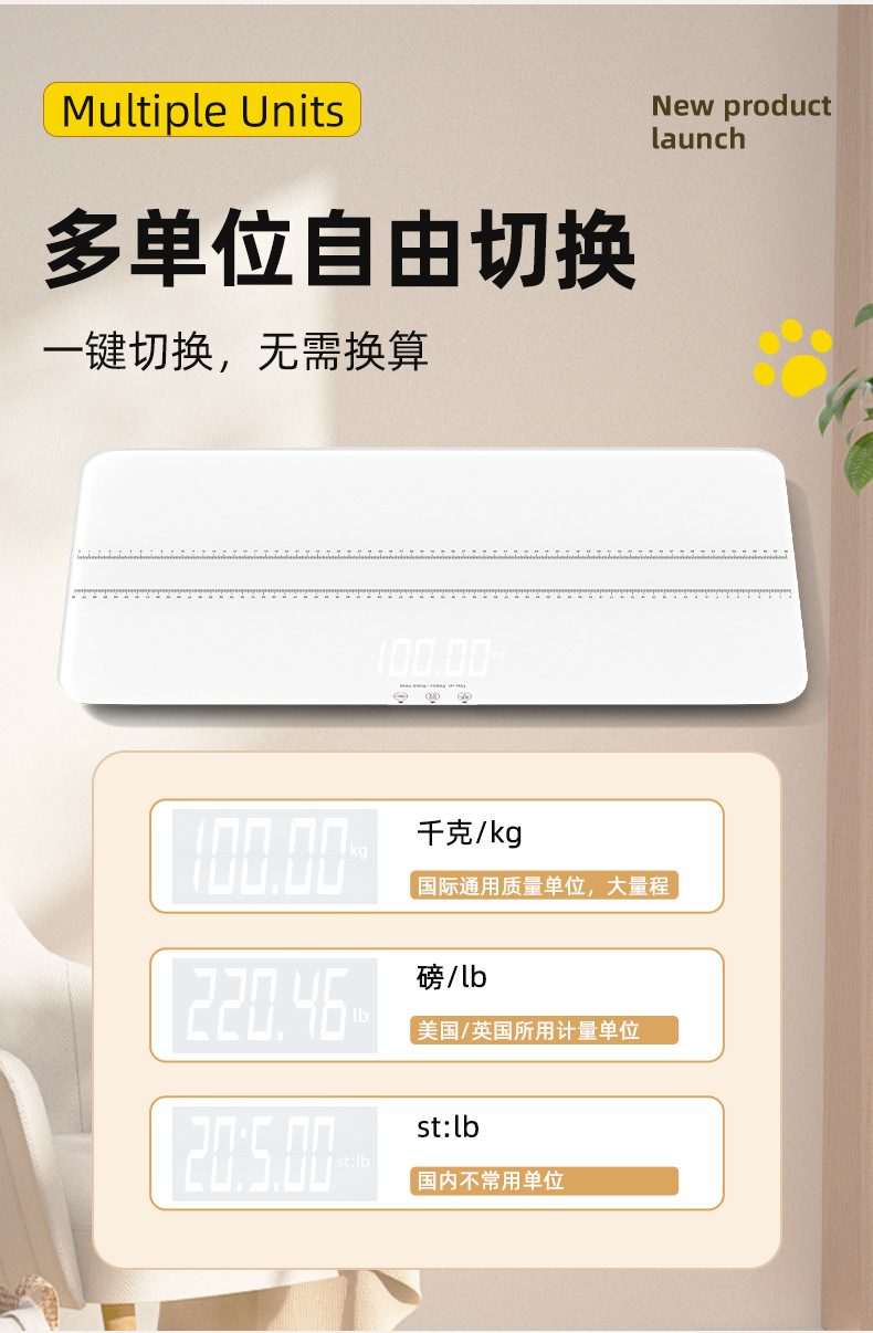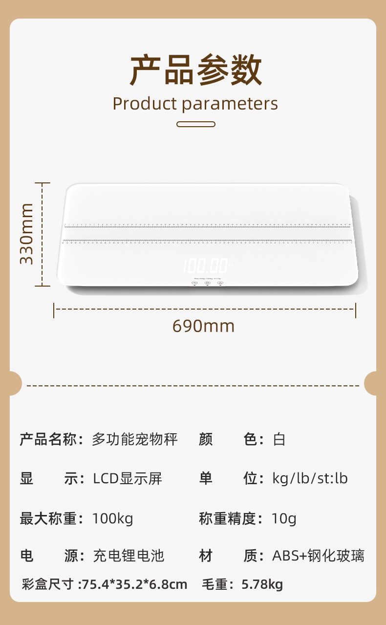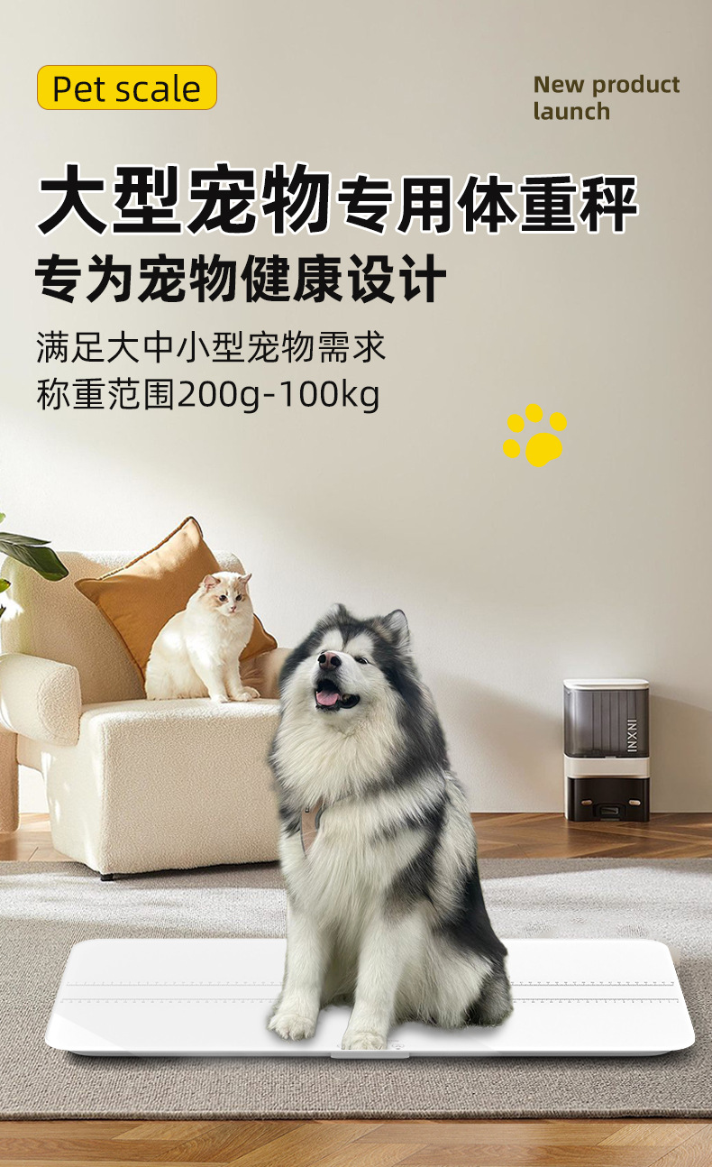 • [스마트분할화면 69*33cm] 화이트 100kg 중대형 애완동물 체중계