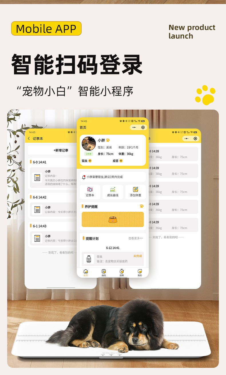 • [업그레이드 및 확대된 블루투스 모델 80*40cm] 화이트 180kg 스마트 대형 애완동물 체중계
