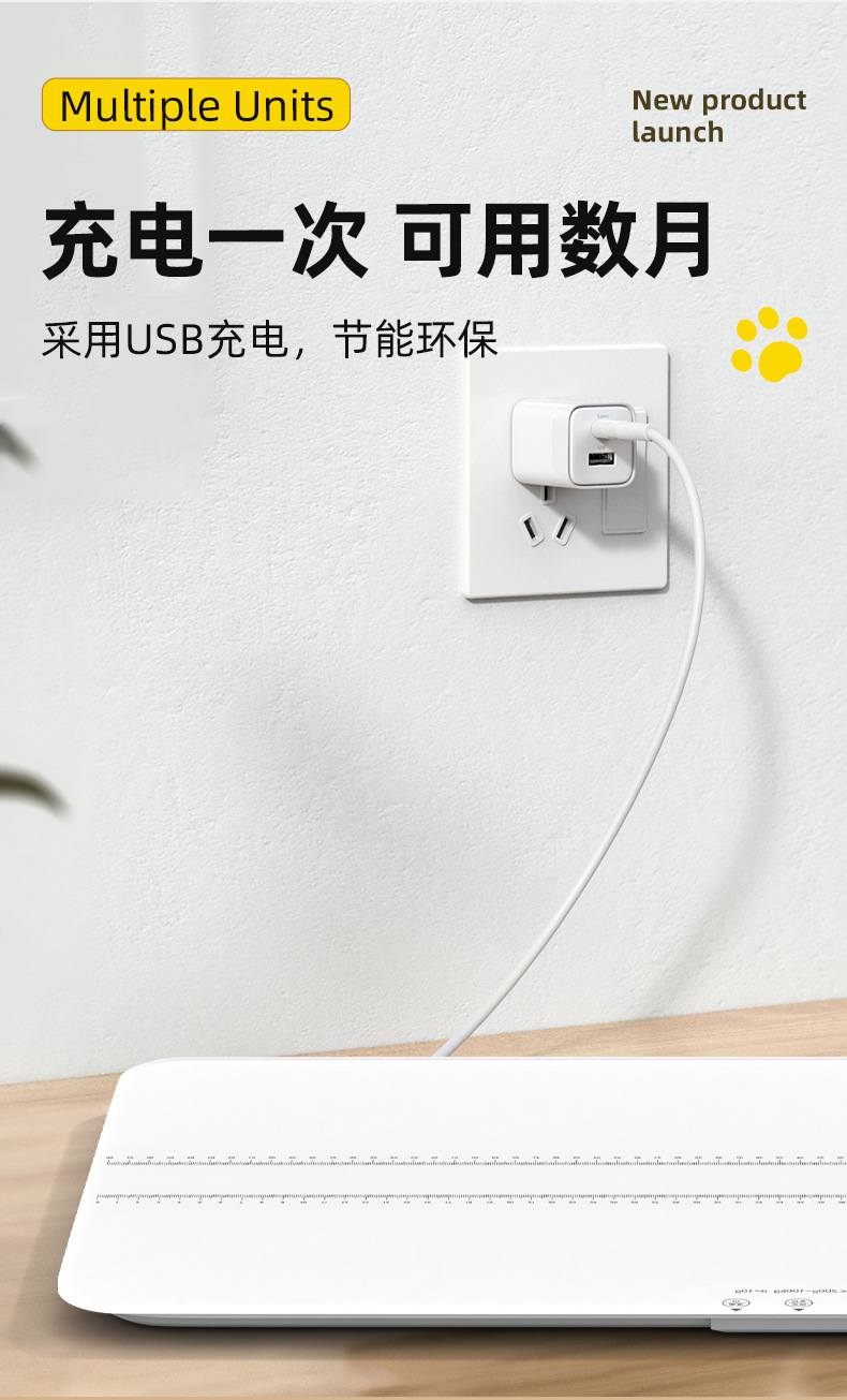 • [블루투스 충전모델 69*33cm] 화이트 180kg 스마트 중대형 애완동물 체중계