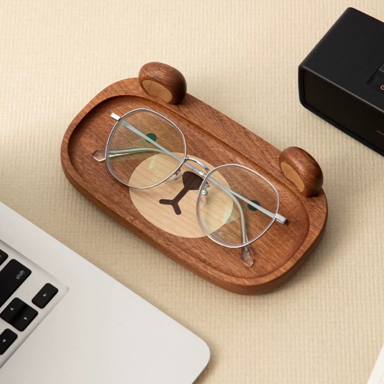 단단한 나무 안경 트레이 데스크탑 보관함 귀여운 안경 배치 트레이 현관 열쇠 잔해물 보관함 나무 트레이