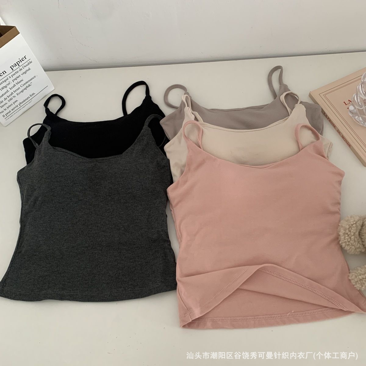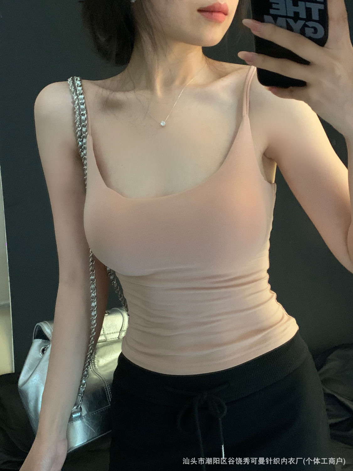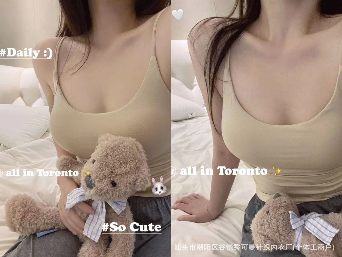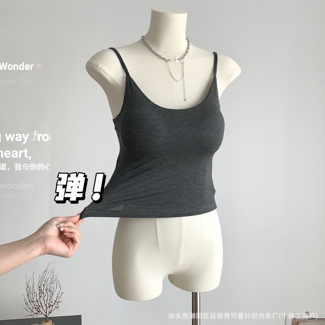 가슴 패드와 섹시한 핑크 캐미솔 여성의 여름 2023 새로운 뜨거운 소녀 순수한 슬림 짧은 상단 밖에서 입고 싶어스토어 가기