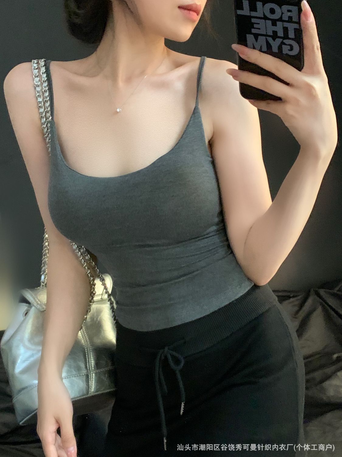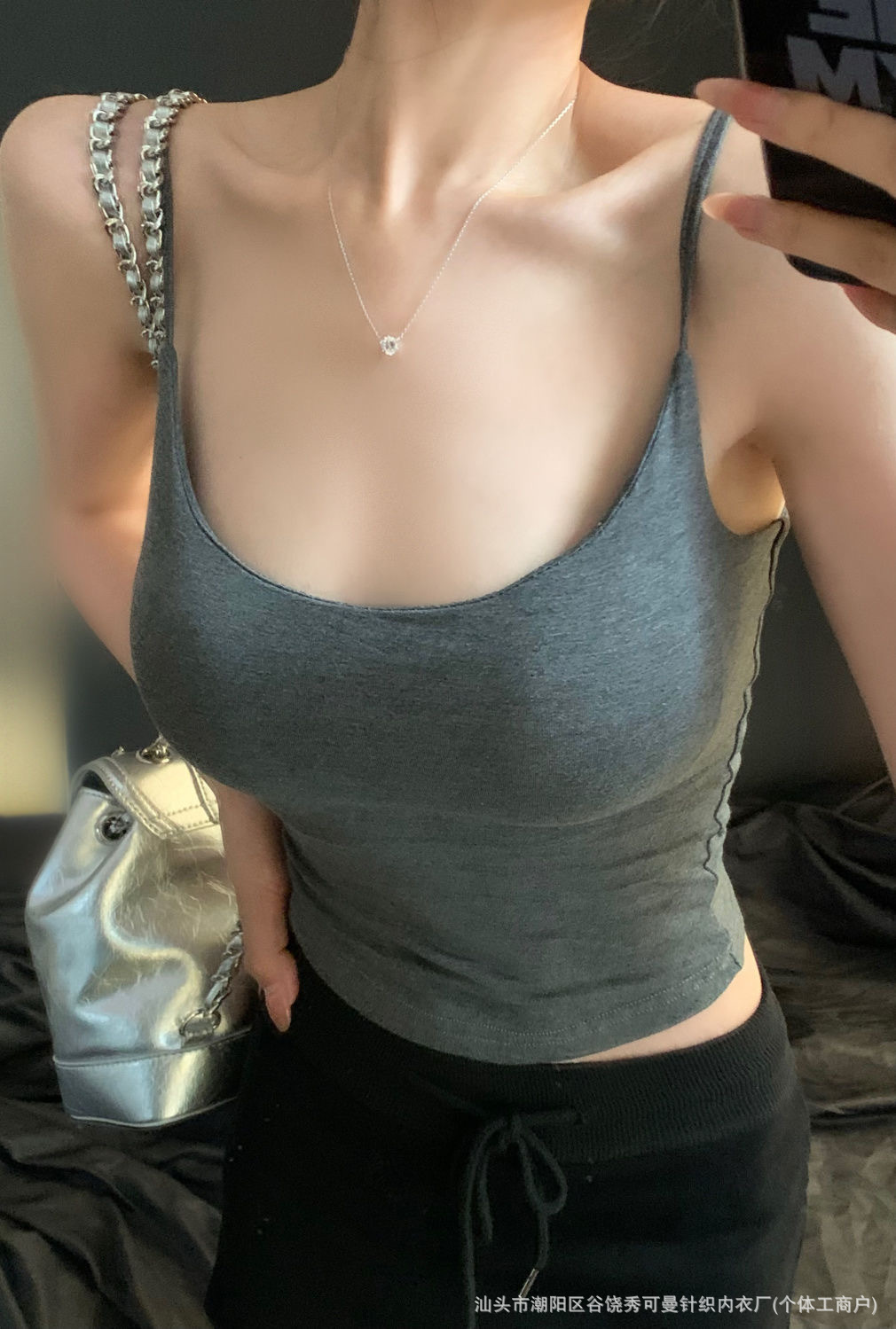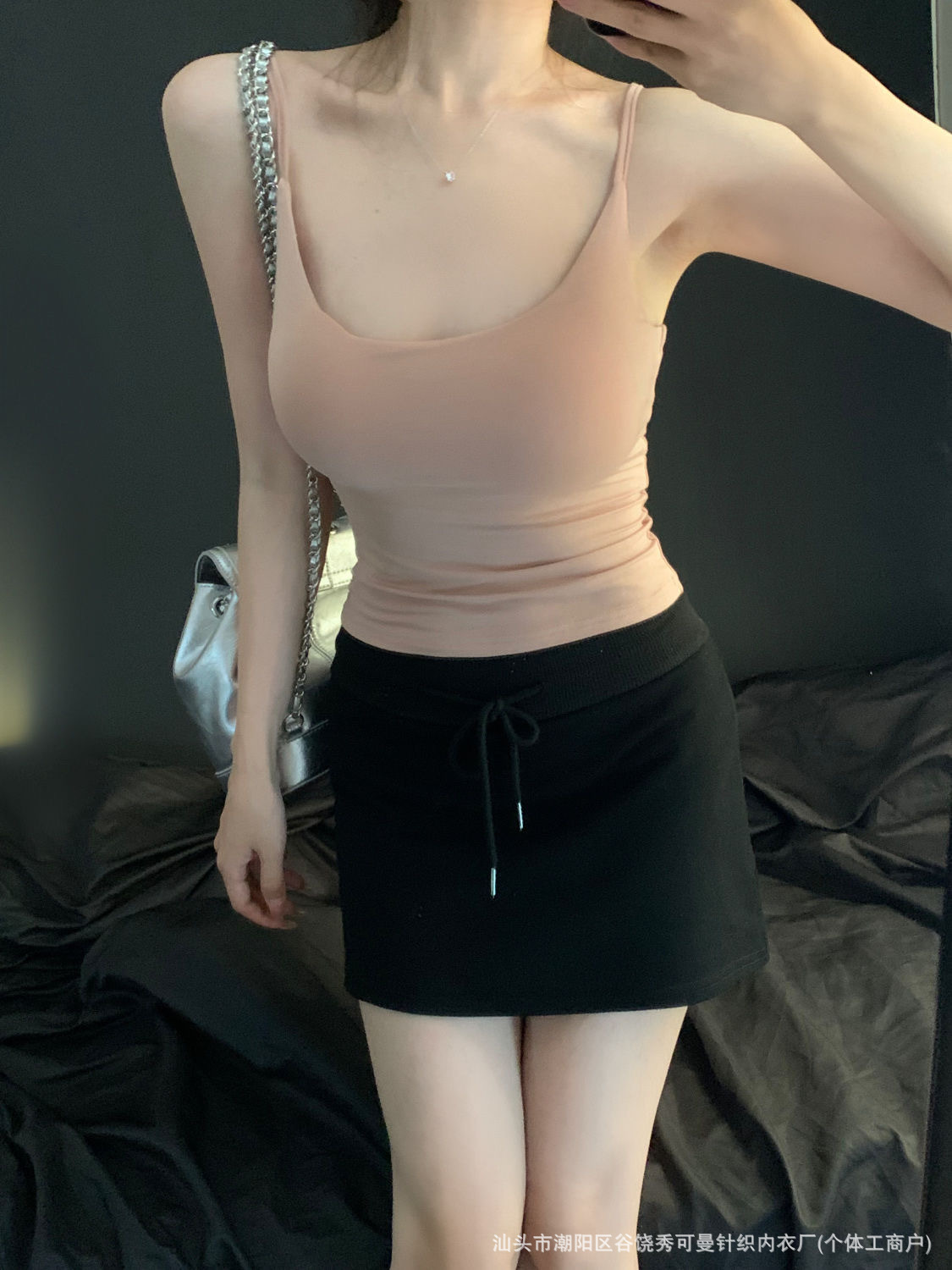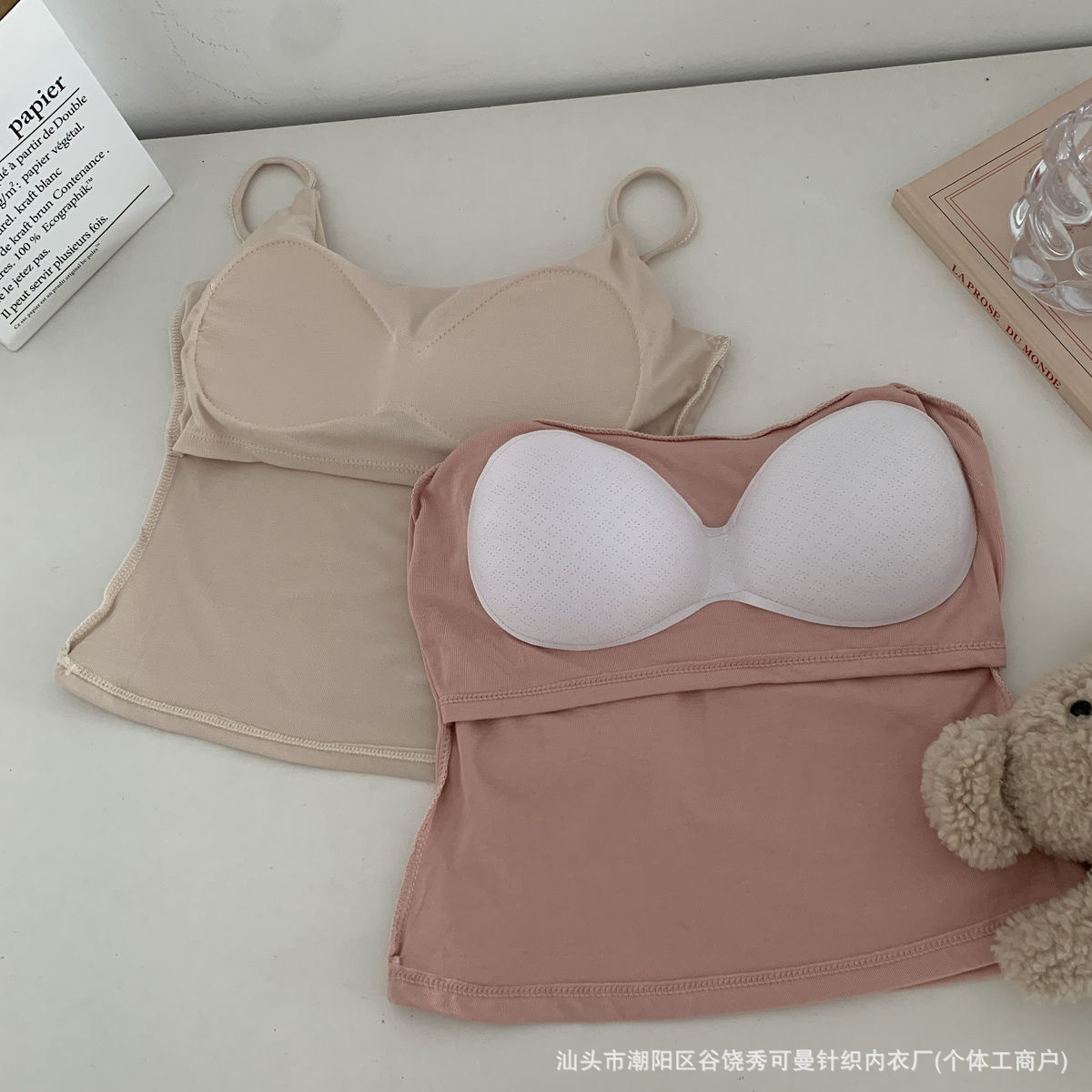 가슴 패드와 섹시한 핑크 캐미솔 여성의 여름 2023 새로운 뜨거운 소녀 순수한 슬림 짧은 상단 밖에서 입고 싶어스토어 가기