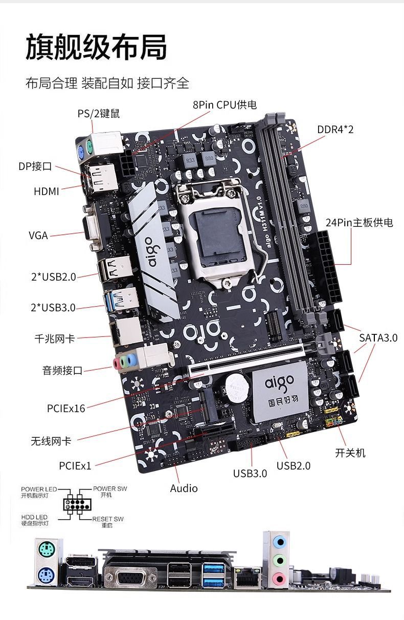 Aigo H311M 마더 보드 1151 핀 DDR4 새로운 마더 보드 지원 6/7/8/9 세대 CPU 터미네이터