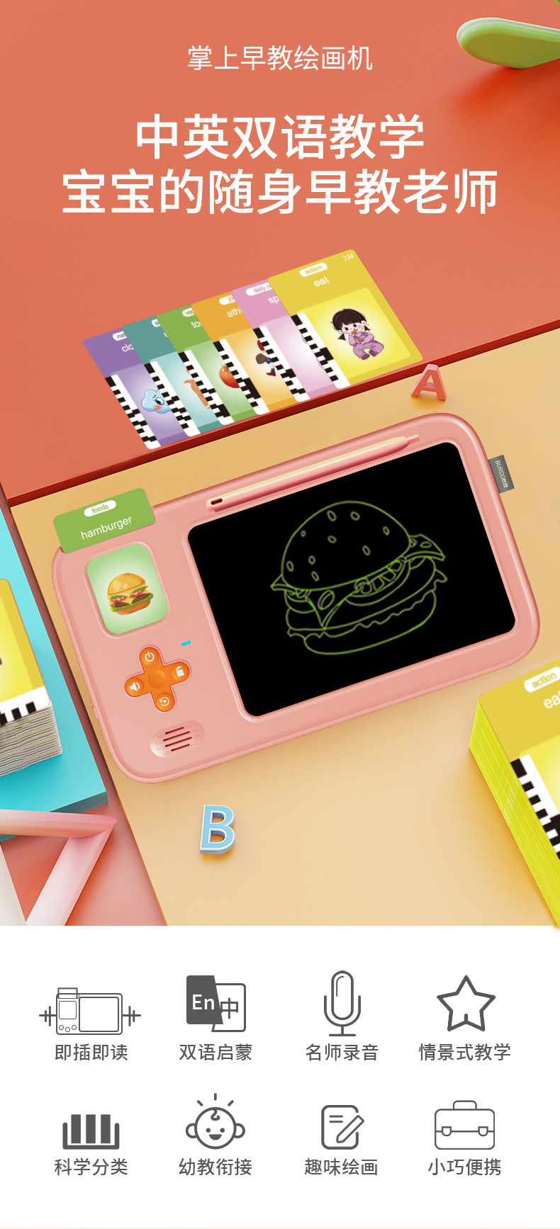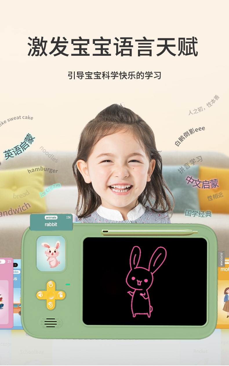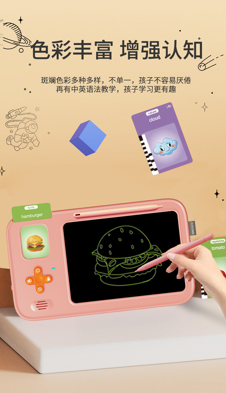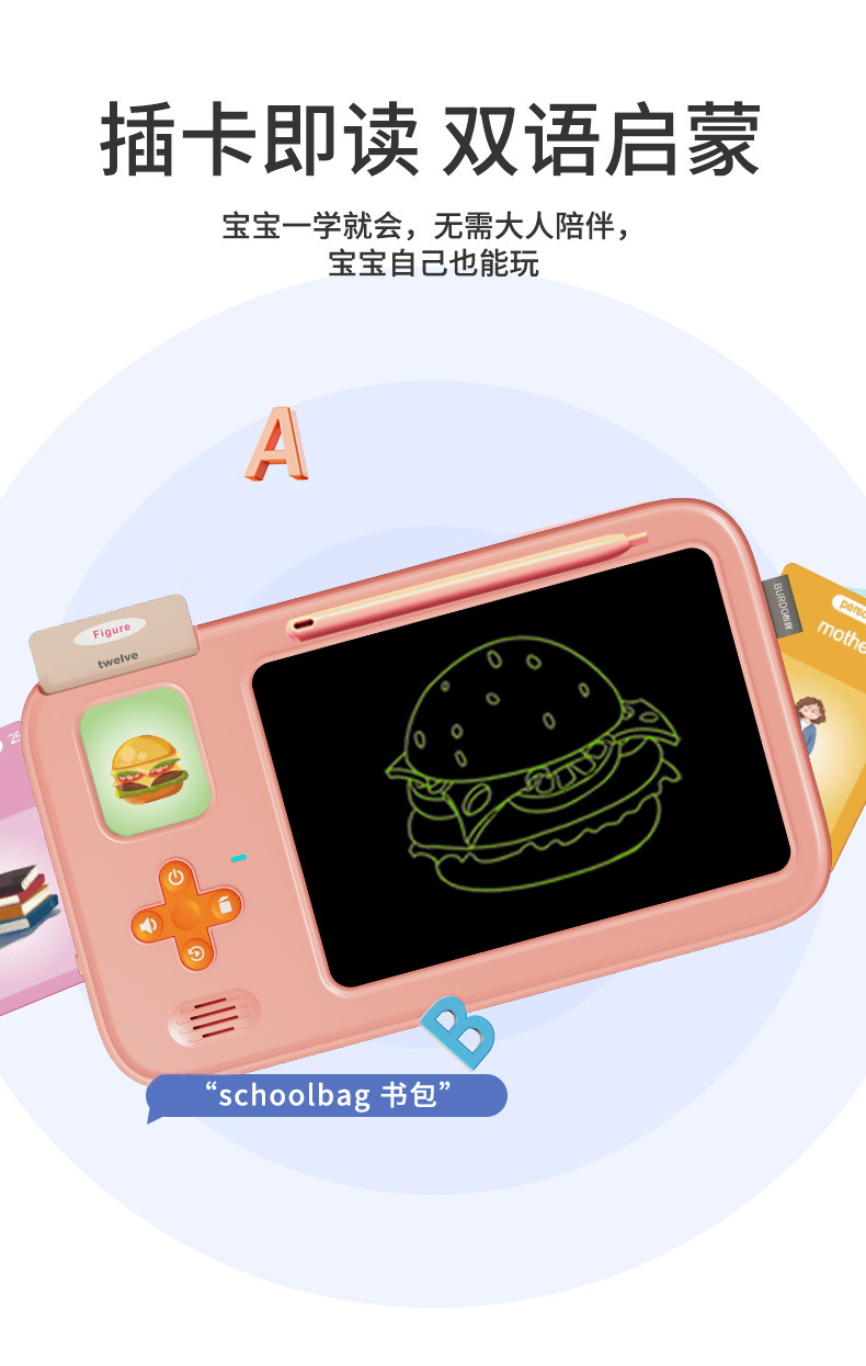 10 인치 드로잉 보드 어린이 교육 조기 교육 지울 수있는 드로잉 보드 카드 삽입 기계 이중 언어 교육 필기 장난감 선물