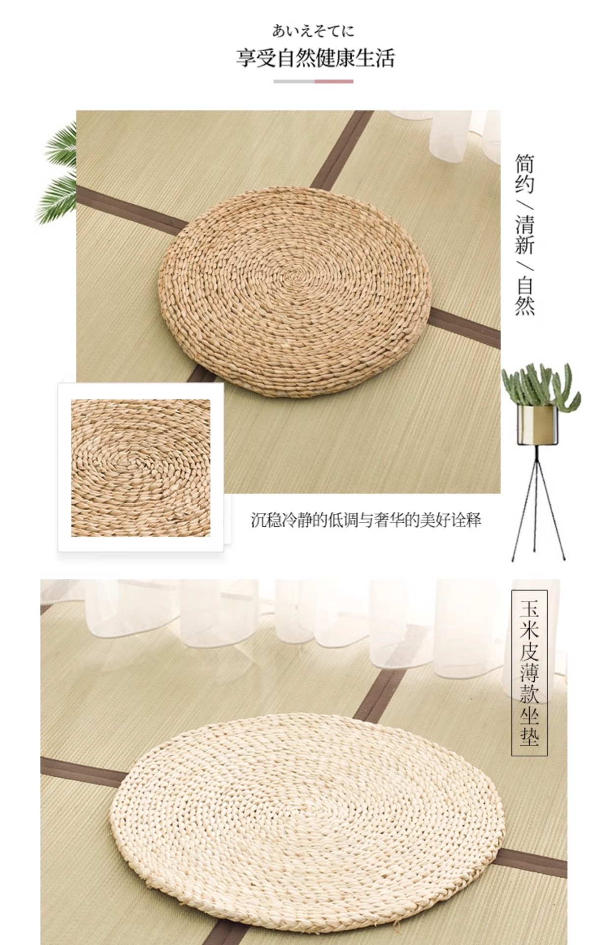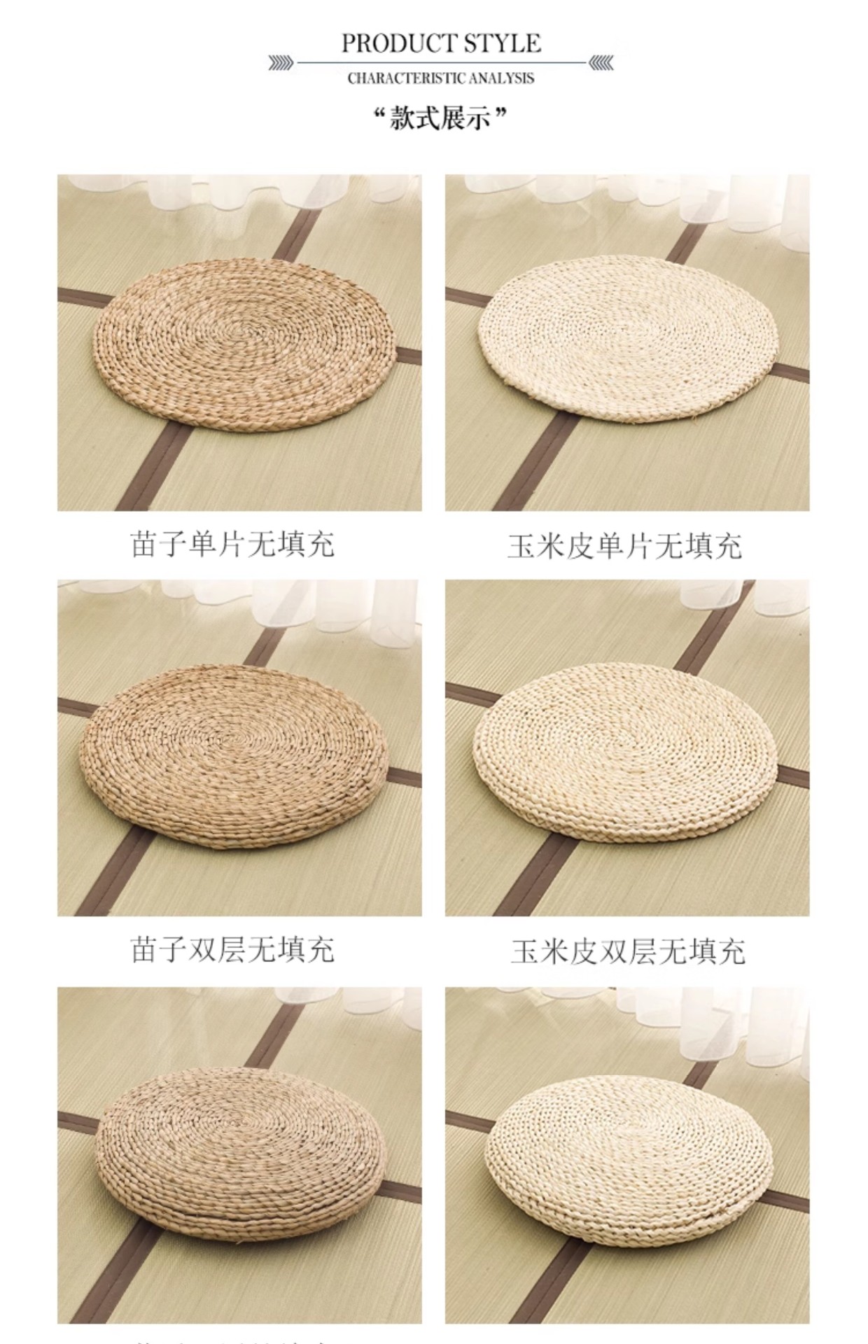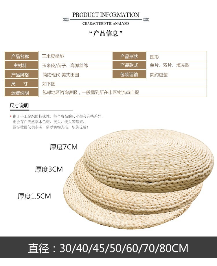 • 옥수수 껍질 단층 두께 1.5cm (얇고 통기성이 좋은 앞면은 고급, 뒷면은 거친)