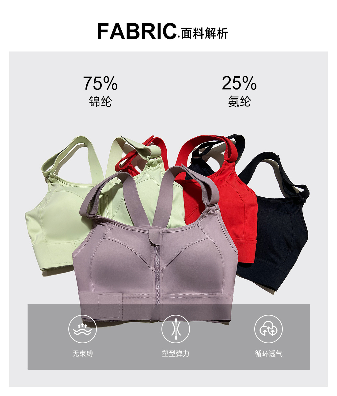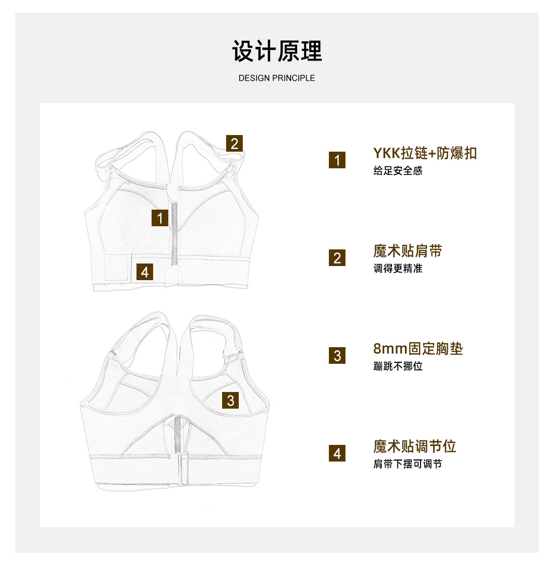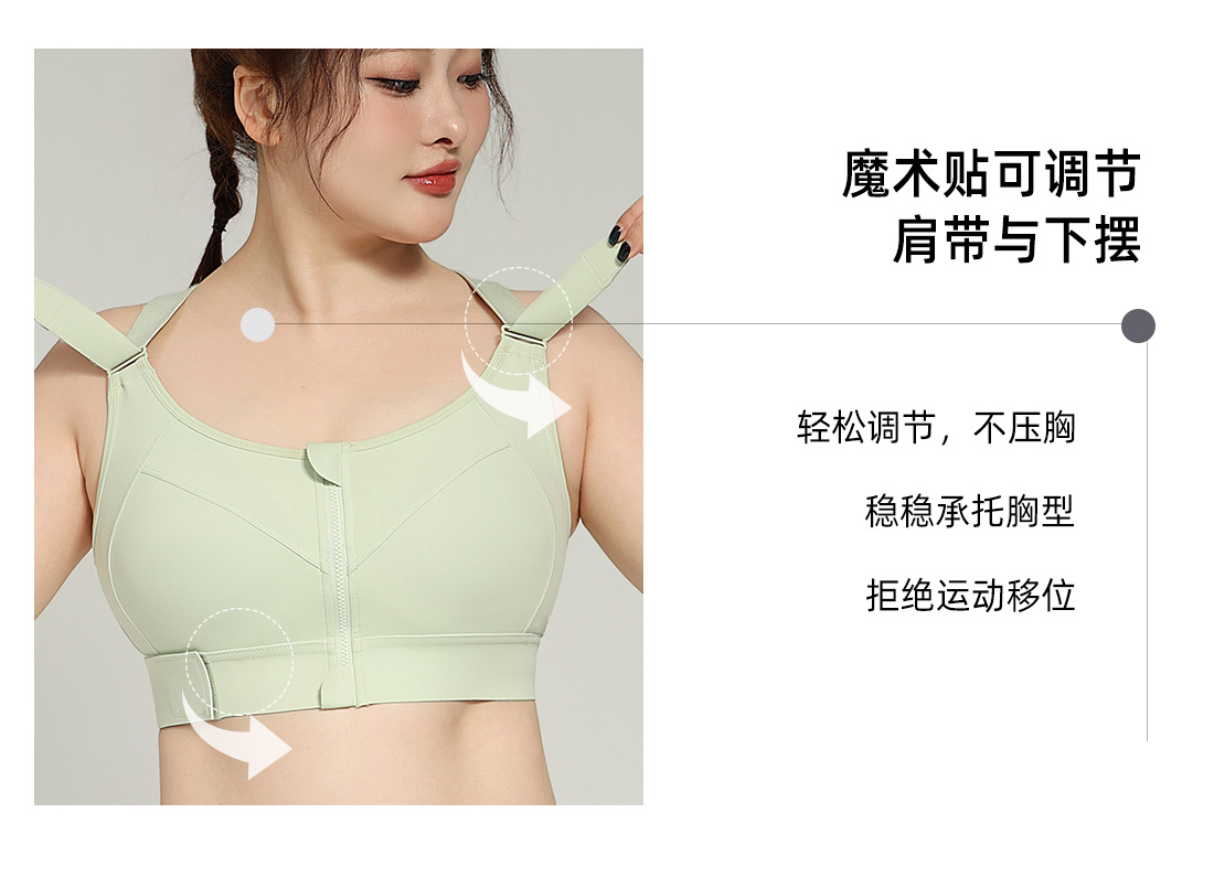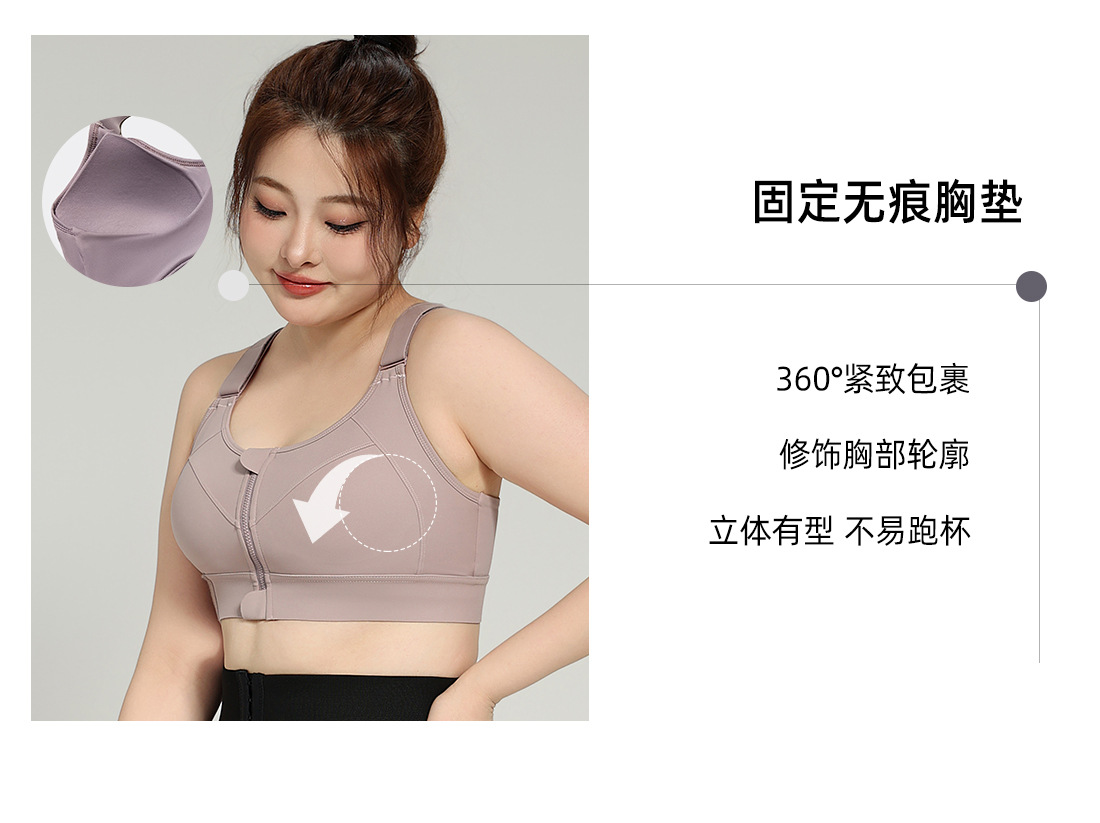 대형 아메리칸 스타일 고강도 충격 방지 스포츠 속옷 여성 러닝 트레이닝 요가 YKK 프론트 지퍼 벨크로 브라스토어 가기