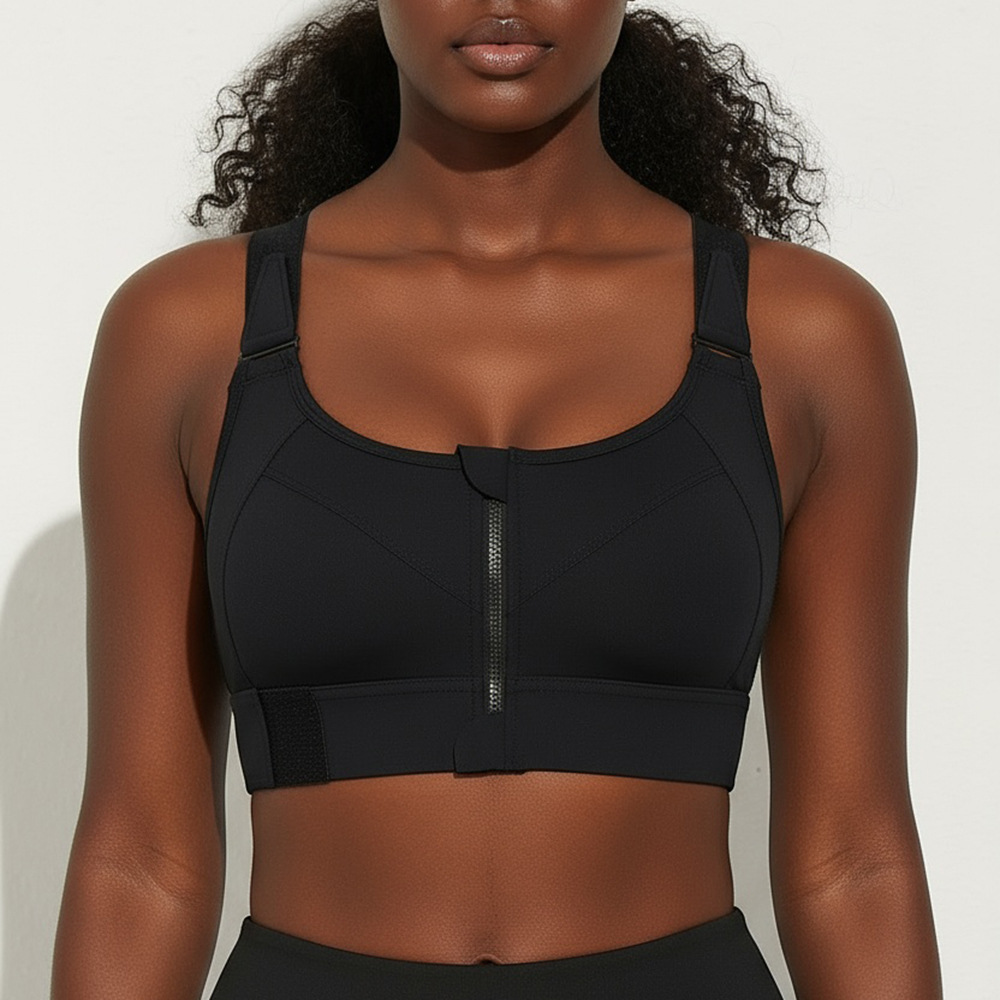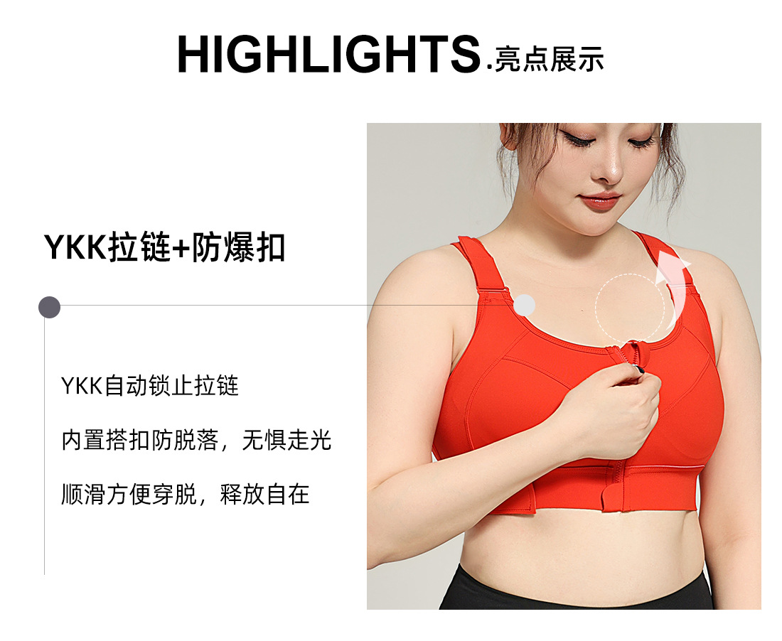 대형 아메리칸 스타일 고강도 충격 방지 스포츠 속옷 여성 러닝 트레이닝 요가 YKK 프론트 지퍼 벨크로 브라
