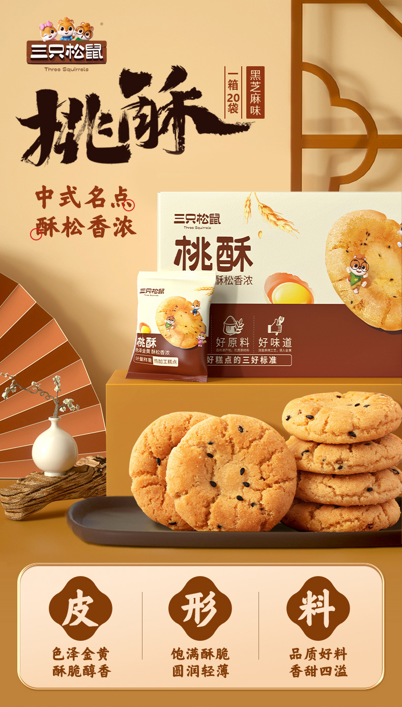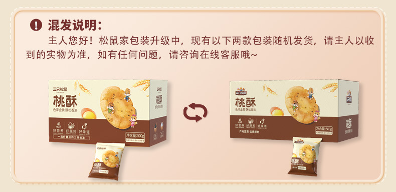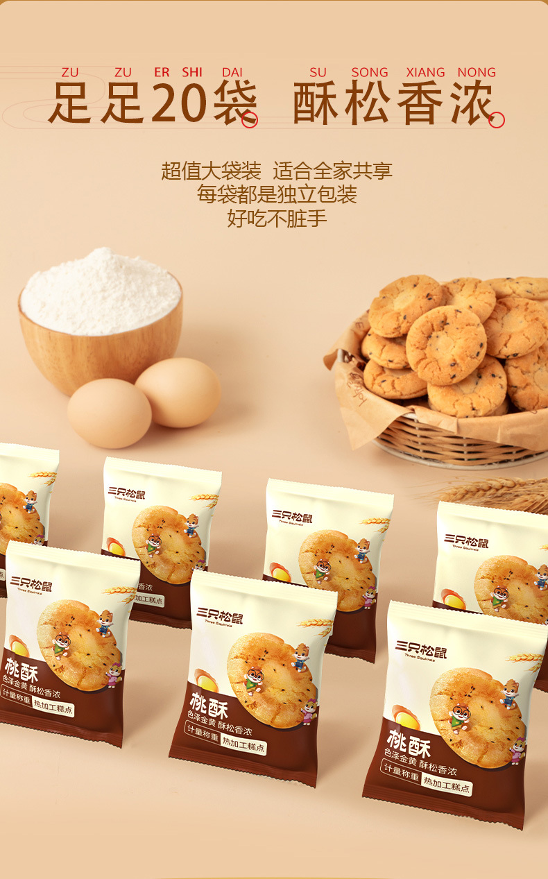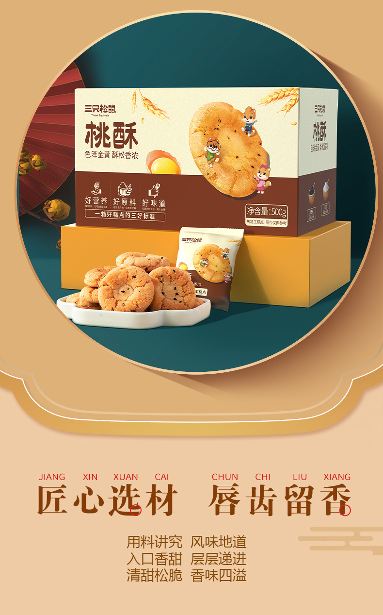 [다람쥐 3마리 복숭아 케이크 500g*2박스] 중국 전통 향기로운 바삭한 클래식 맛있는 스낵