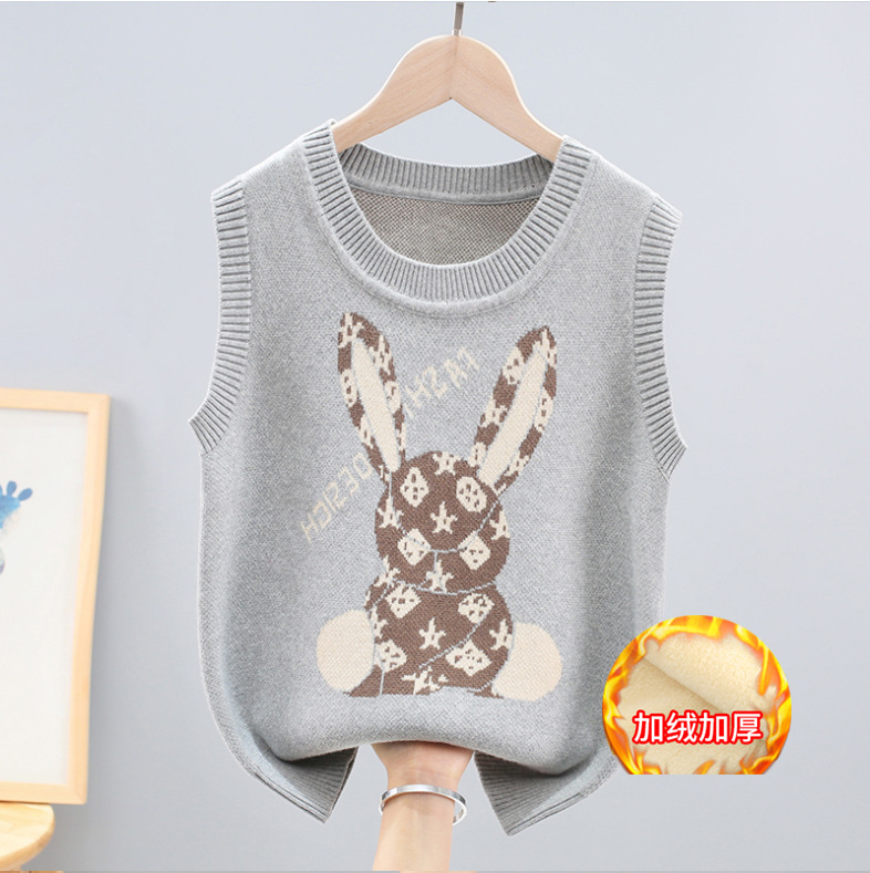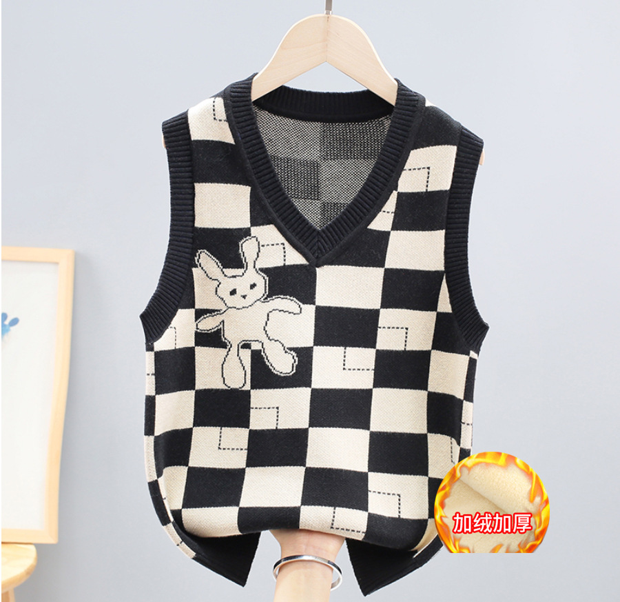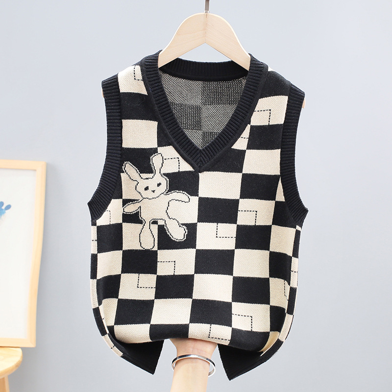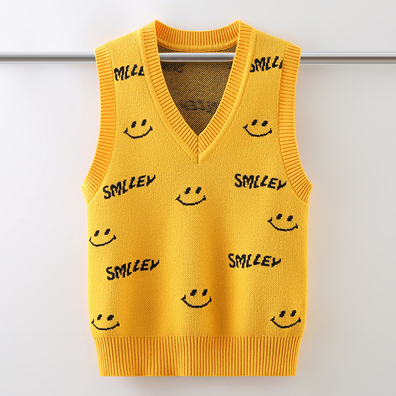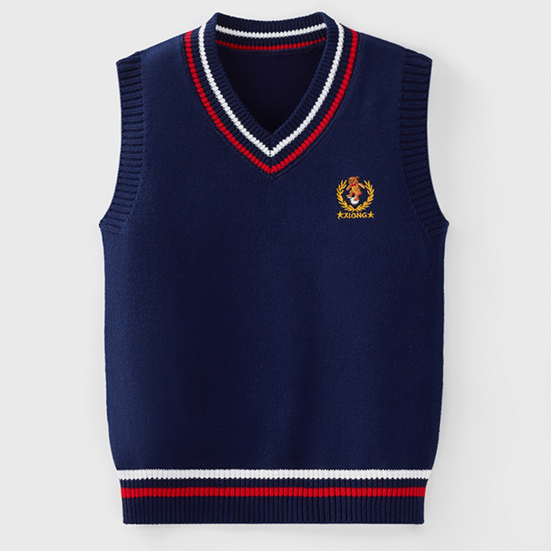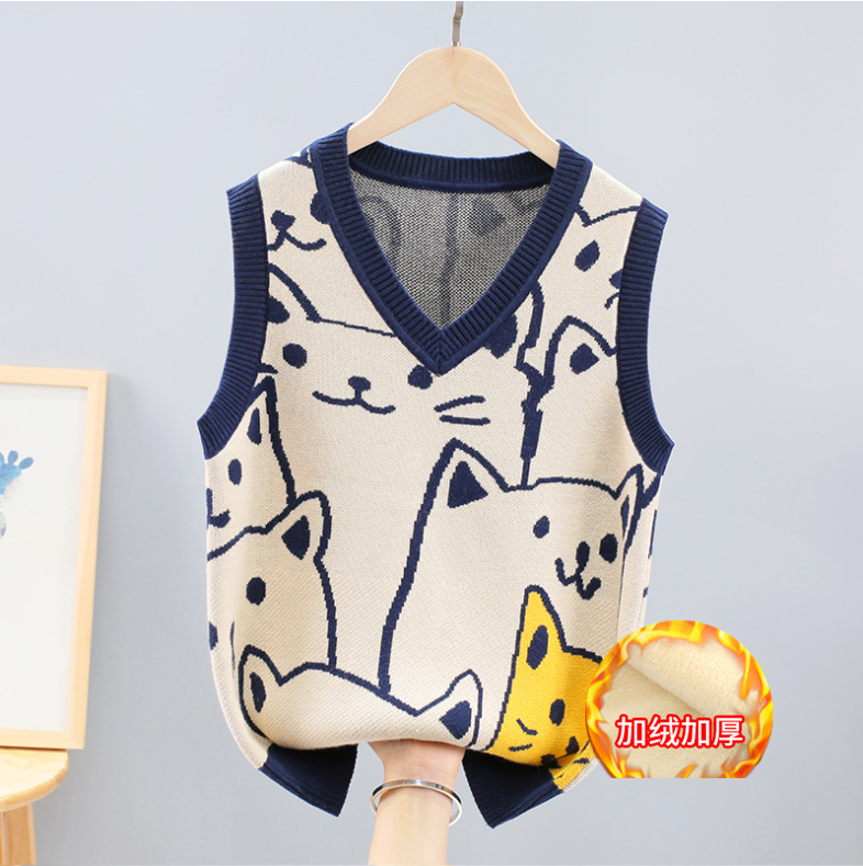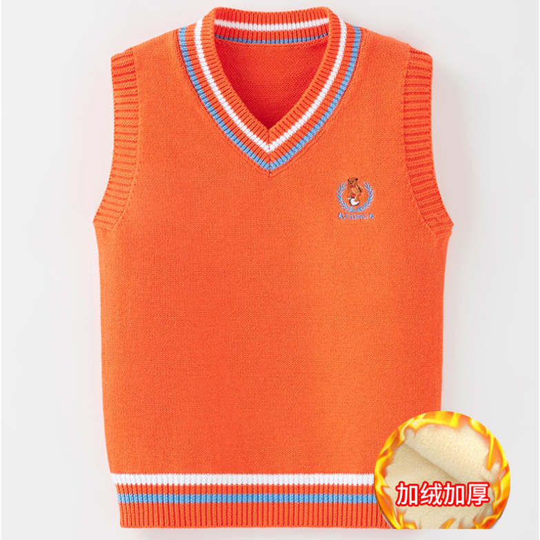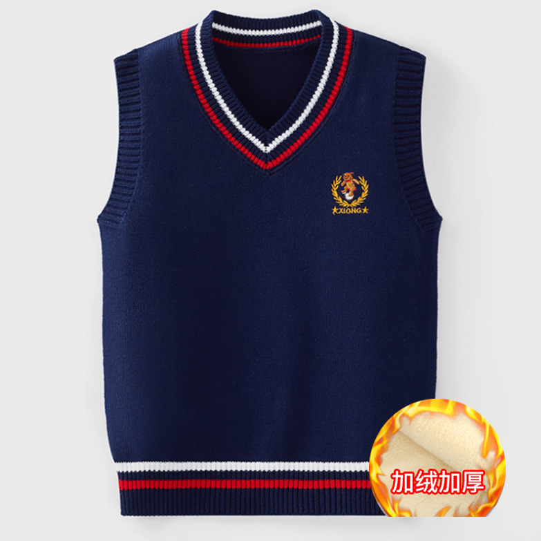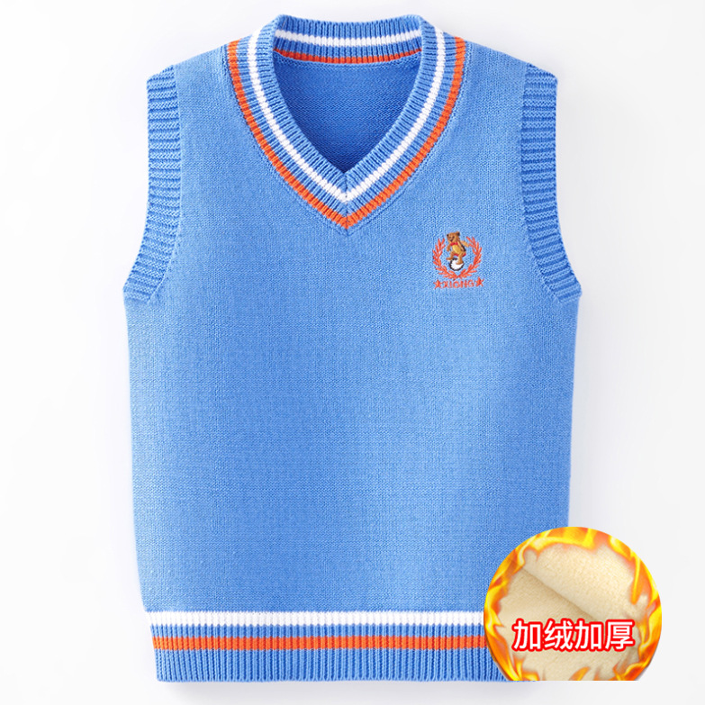소년 소녀 민소매 스웨터 초등학교 소년 조끼 어린이 조끼 가을 어린이 면화 니트 스웨터