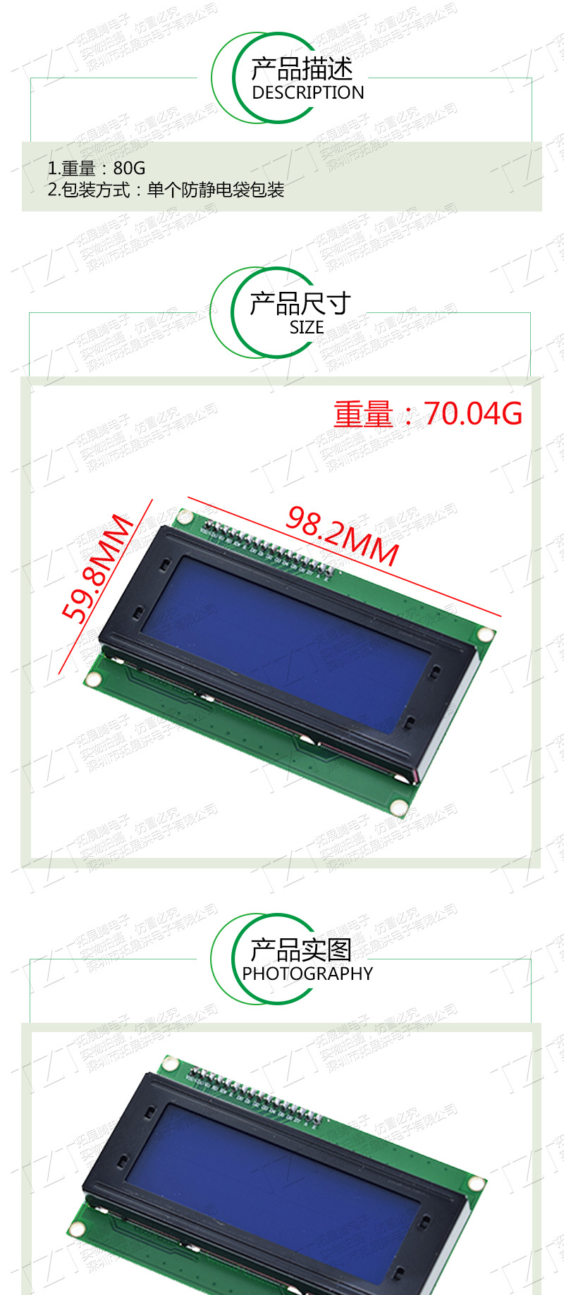 IIC/I2C 2004 LCD2004 LCD 모듈 블루 스크린 디스플레이 디지털 디스플레이 휴대용 패널 산업용
