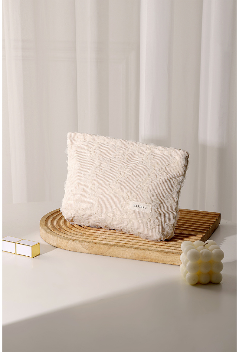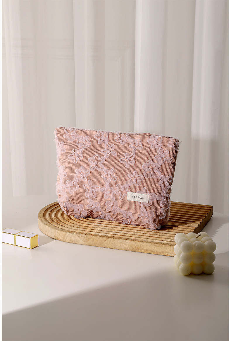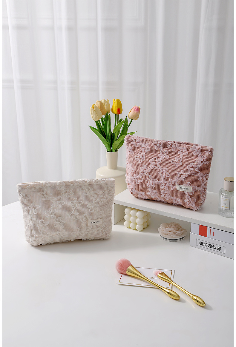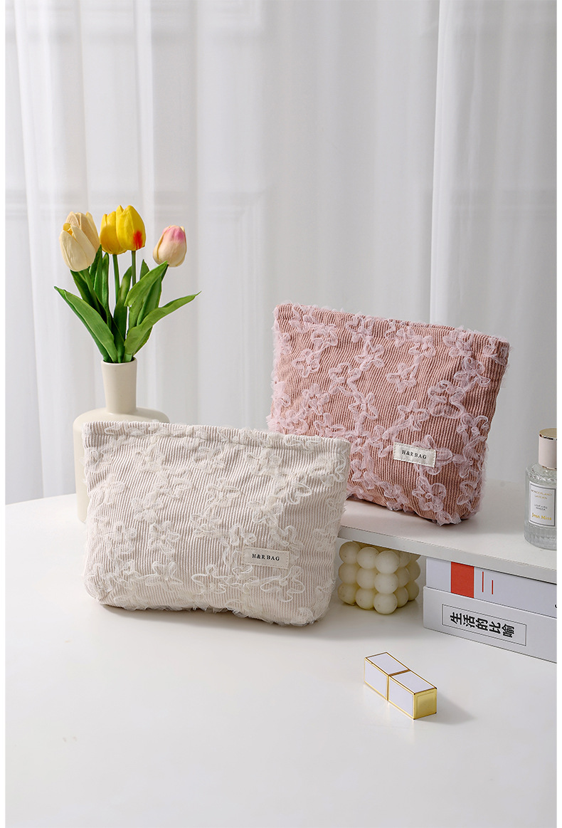 코듀로이 레이스 3 차원 자수 화장품 가방 립스틱 스킨 케어 제품 휴대용 저장 가방 대용량 클러치
