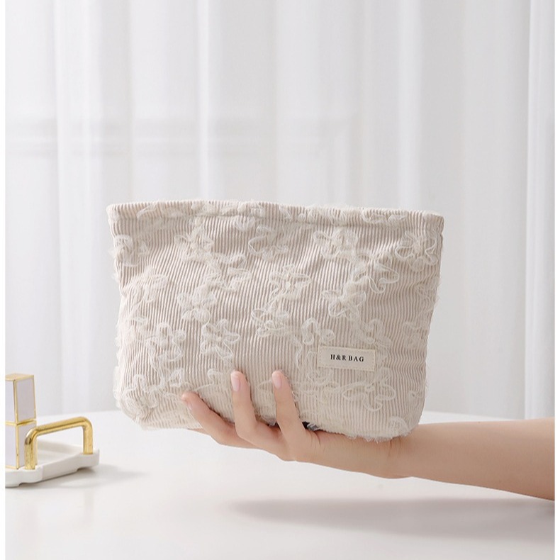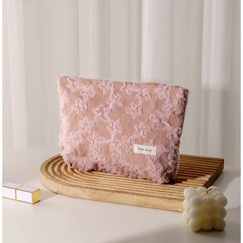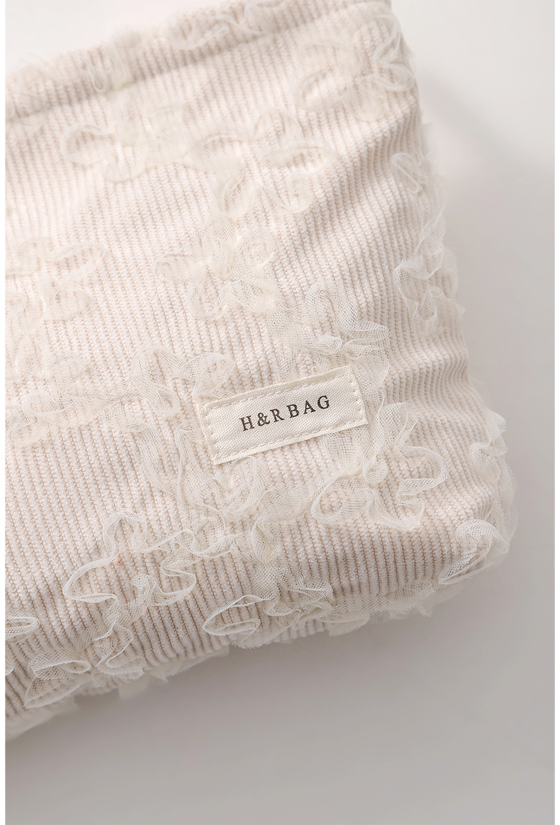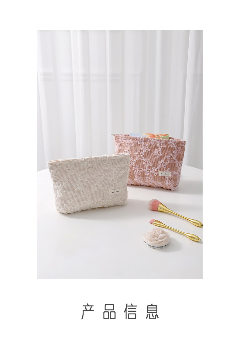 코듀로이 레이스 3 차원 자수 화장품 가방 립스틱 스킨 케어 제품 휴대용 저장 가방 대용량 클러치