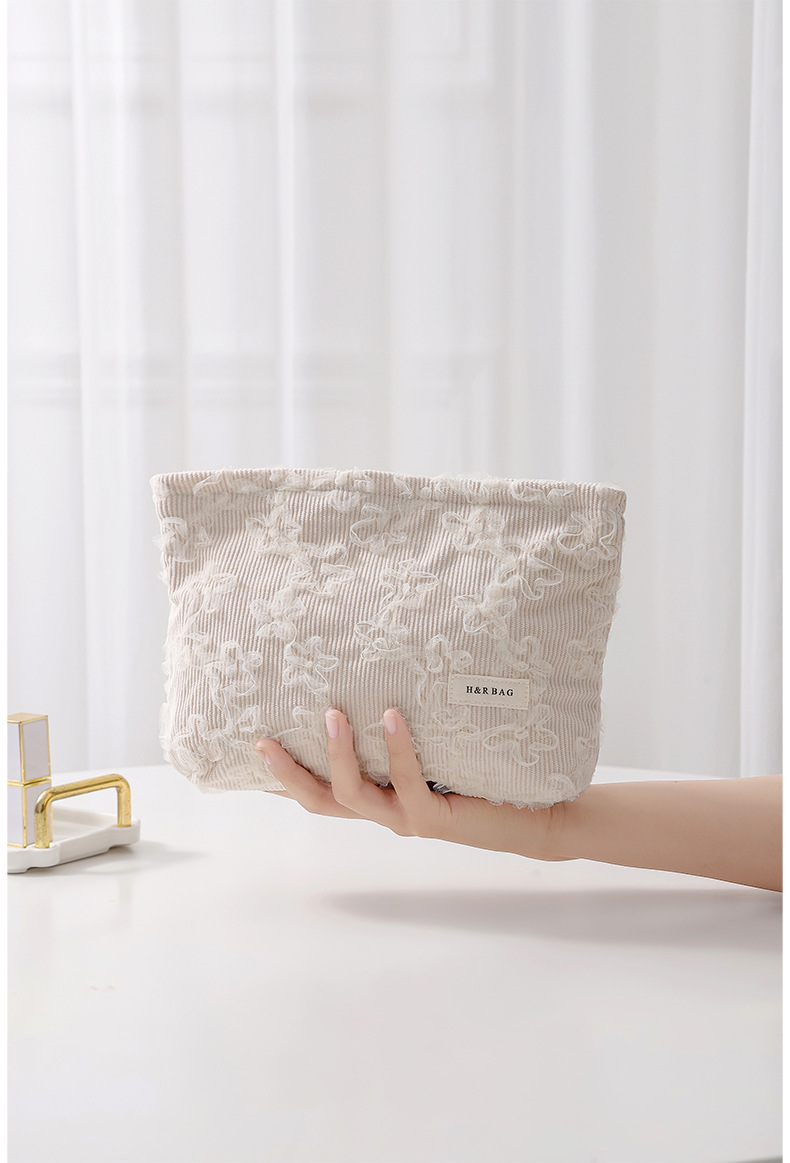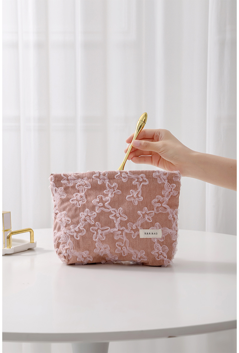 코듀로이 레이스 3 차원 자수 화장품 가방 립스틱 스킨 케어 제품 휴대용 저장 가방 대용량 클러치스토어 가기