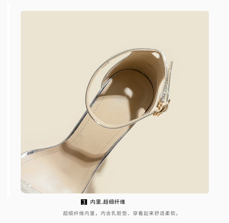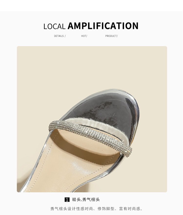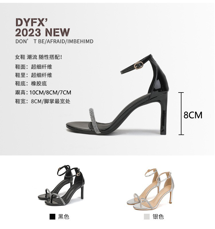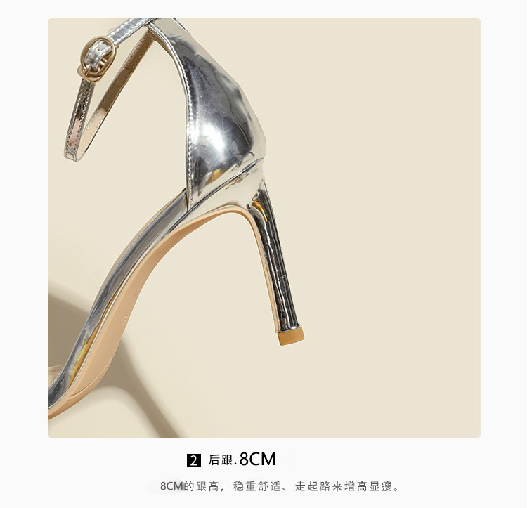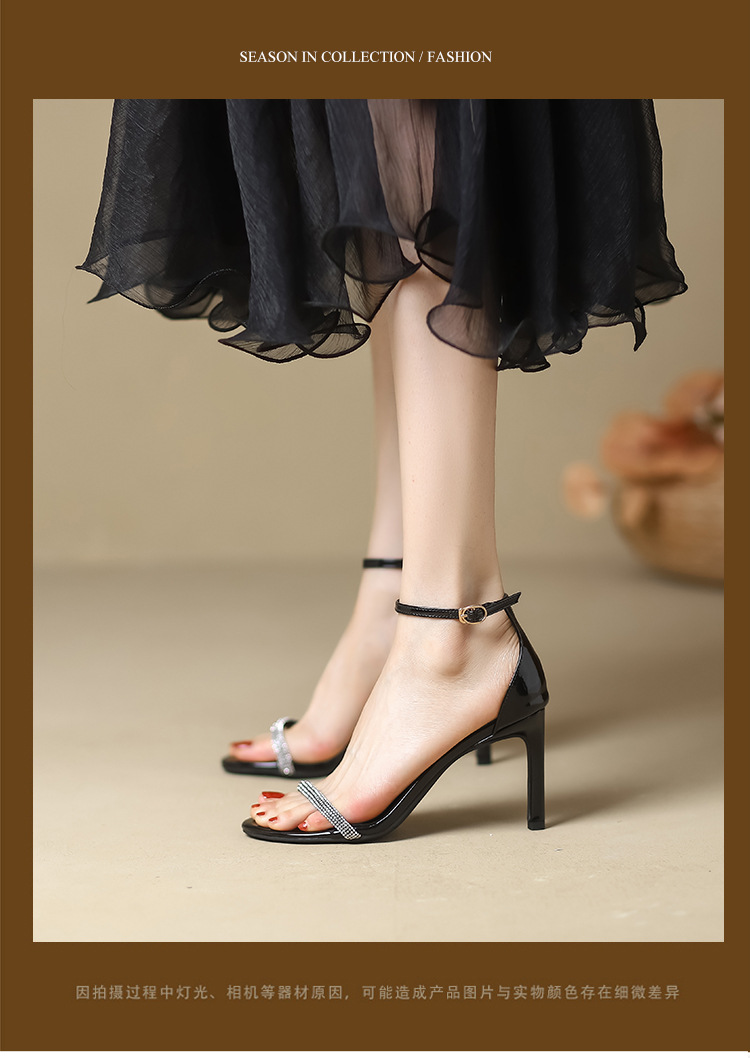 실버 하이힐 2025 봄 여름 새로운 요정 스타일 다목적 특허 가죽 라인스톤 여성용 스틸레토 샌들스토어 가기