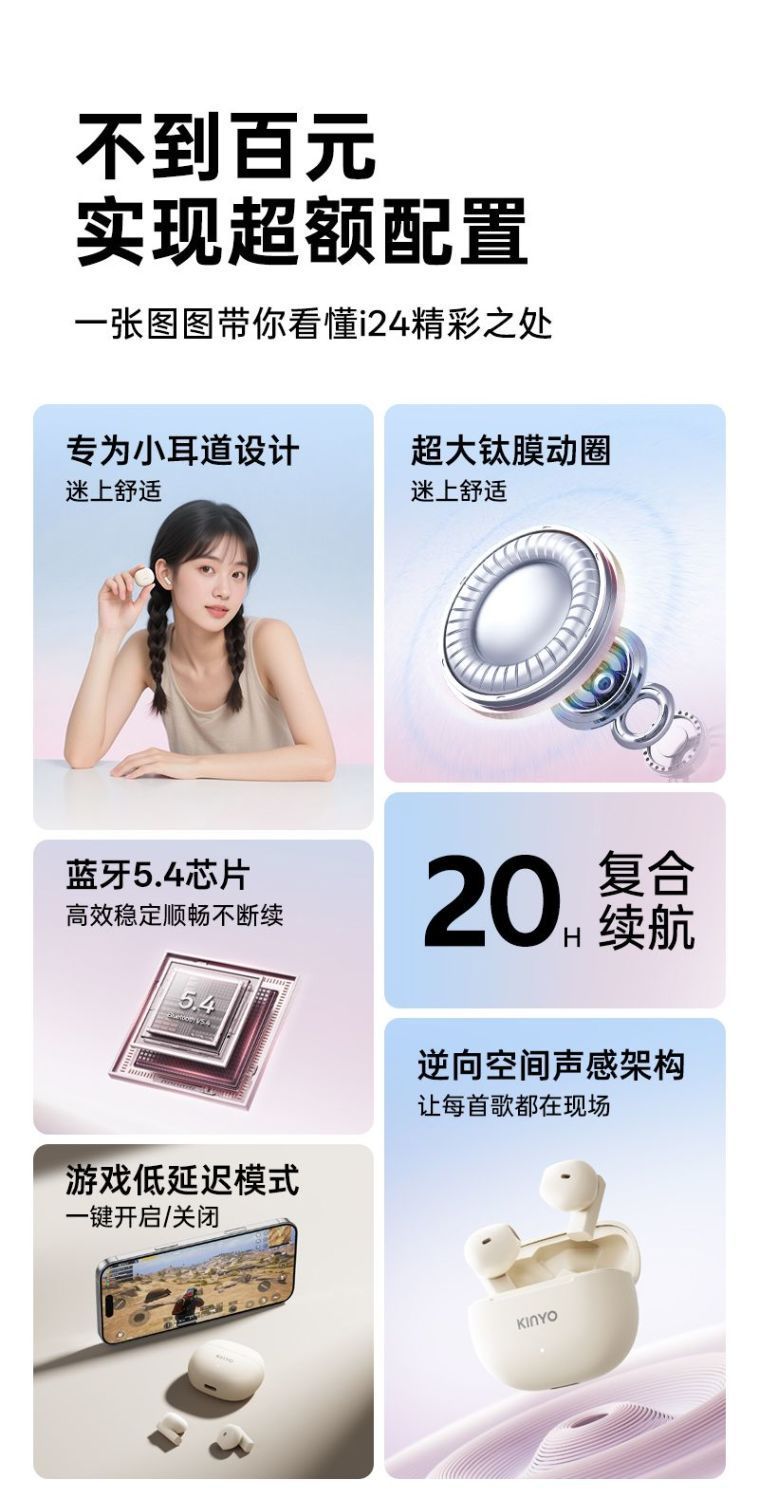 진윈 I24 블루투스 이어폰 진정한 무선 반인이어형 소음 감소 고품질 러닝용 초장시간 배터리 스포츠 이어폰스토어 가기