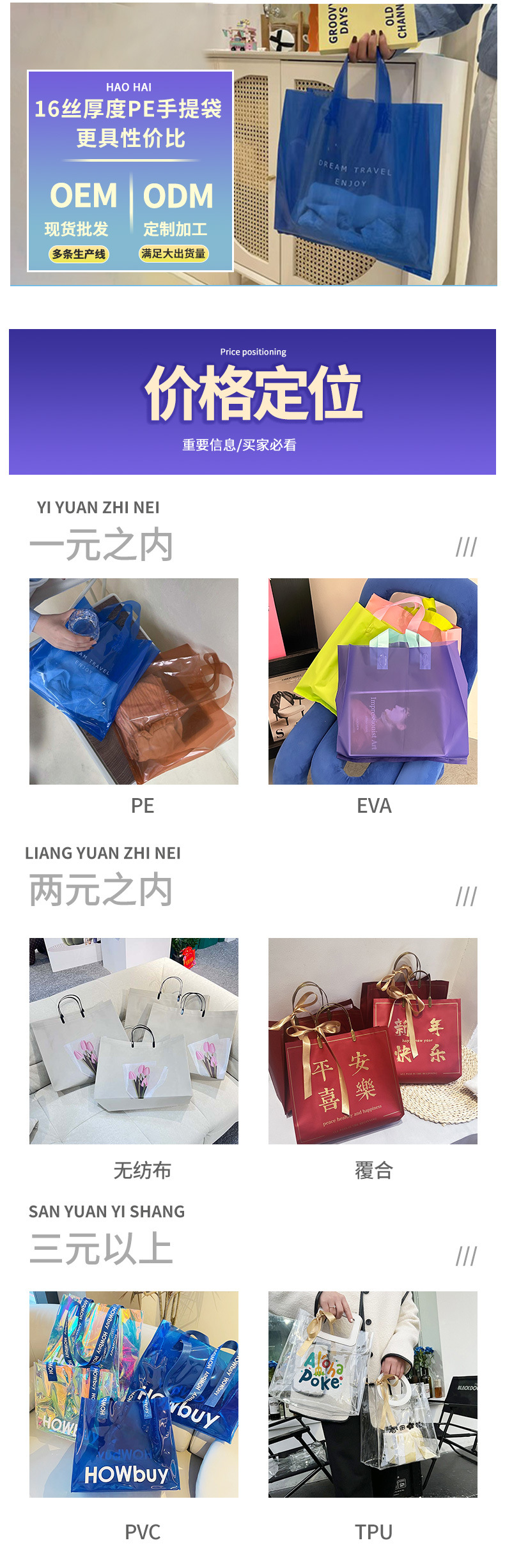 선물 가방 pvc 레이저 핸드백 비닐 봉투 부직포 가방 포장 가방 투명 선물 가방 의류 가방스토어 가기