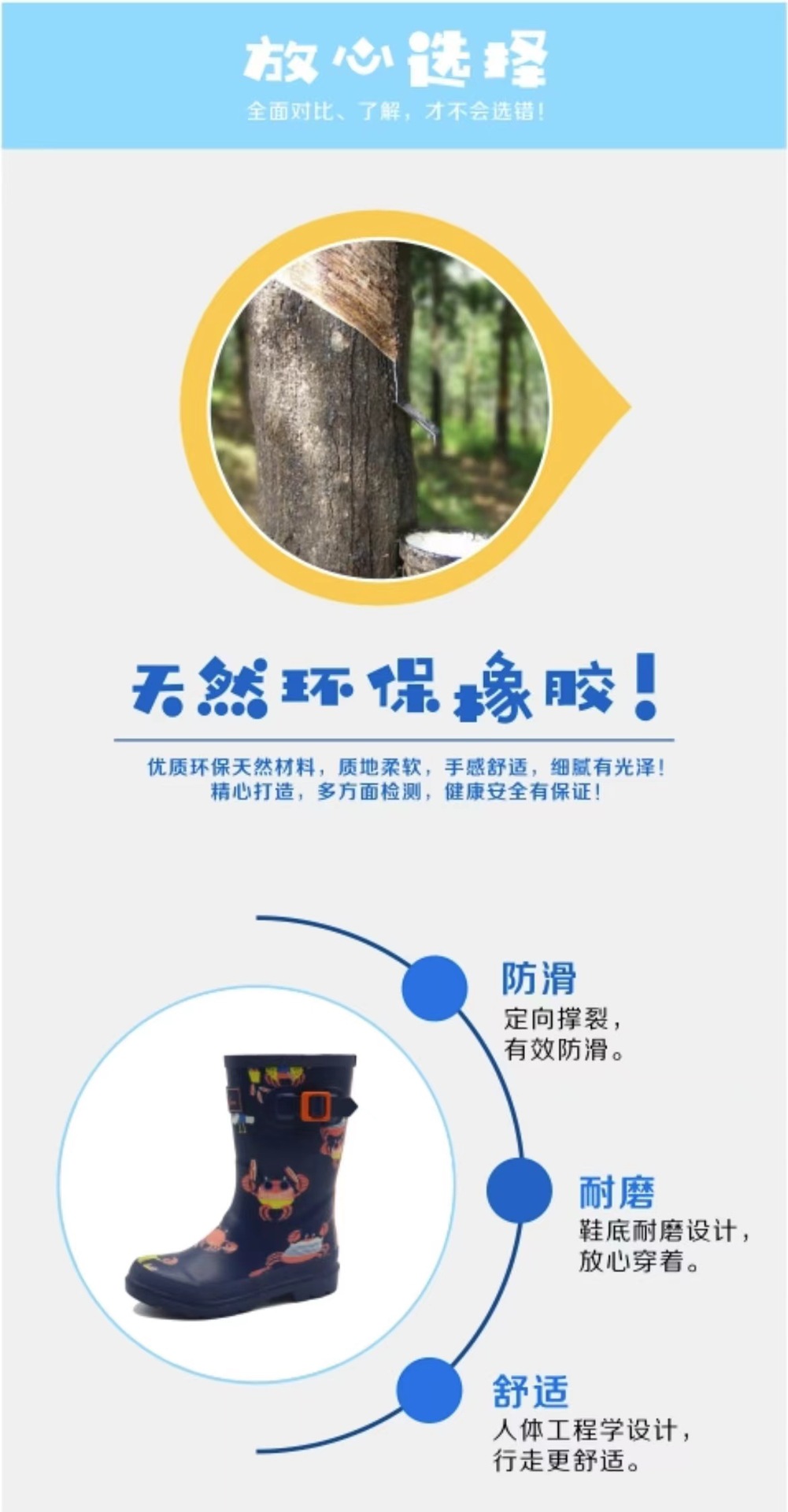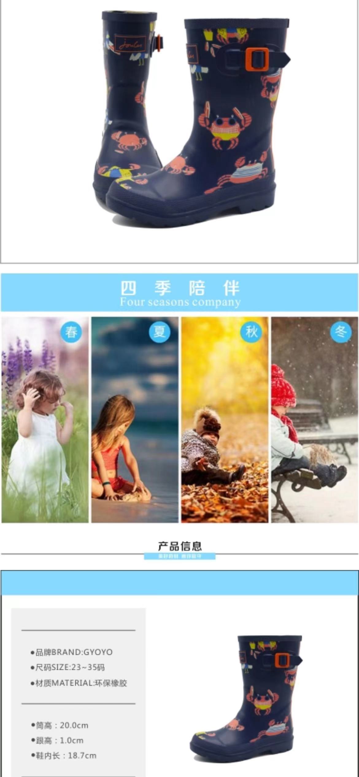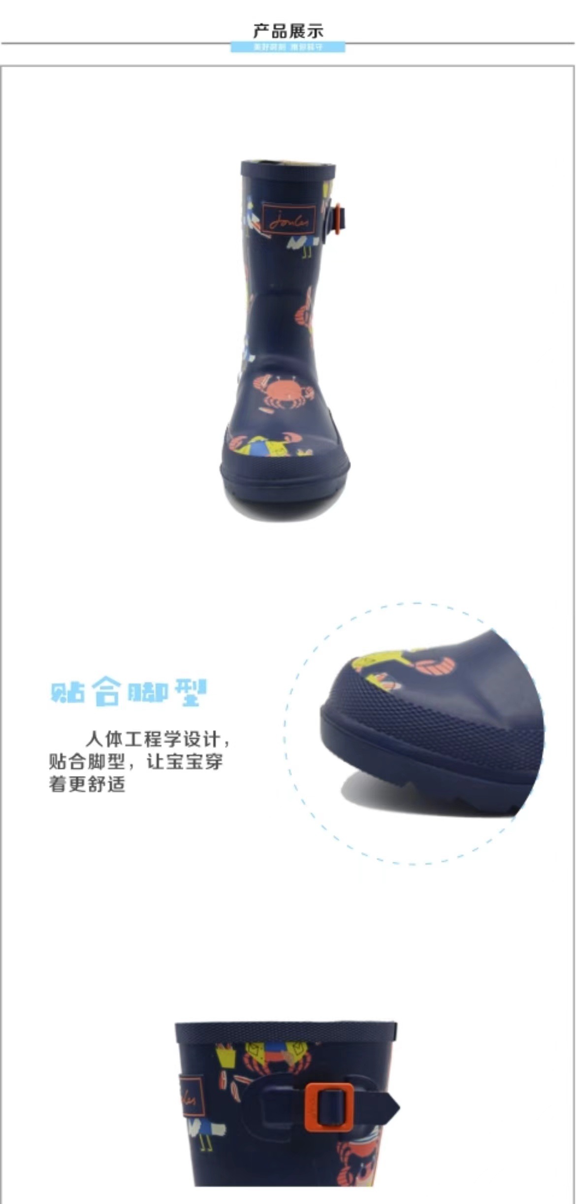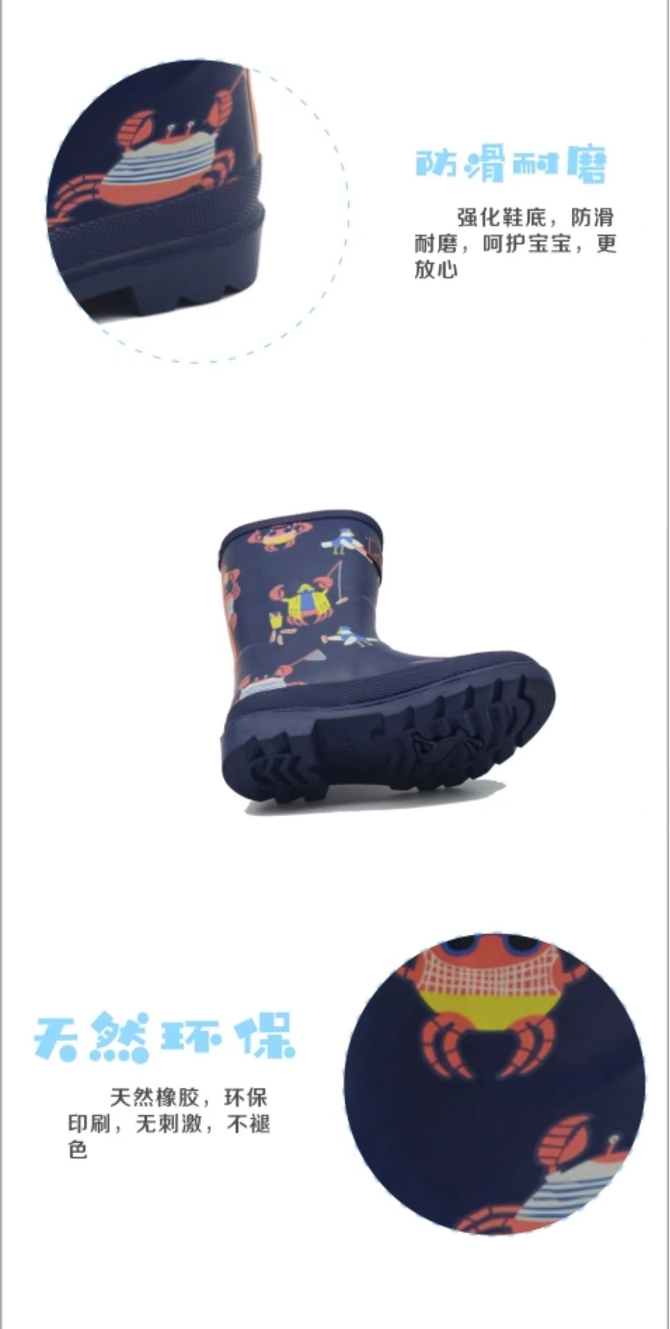 유럽과 미국의 어린이 장화, 두꺼운 어린이 워터 슈즈, 하이탑 방수 및 미끄럼 방지 만화 고무 장화, 어린이 야외 장화스토어 가기