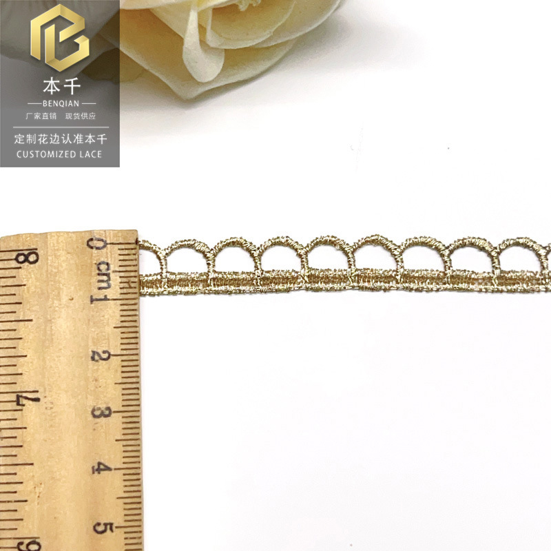 레이스 도매 공장 직접 단면 작은 바코드 골드 스레드 레이스 가장자리 로리타 의류 액세서리 골든 1cm