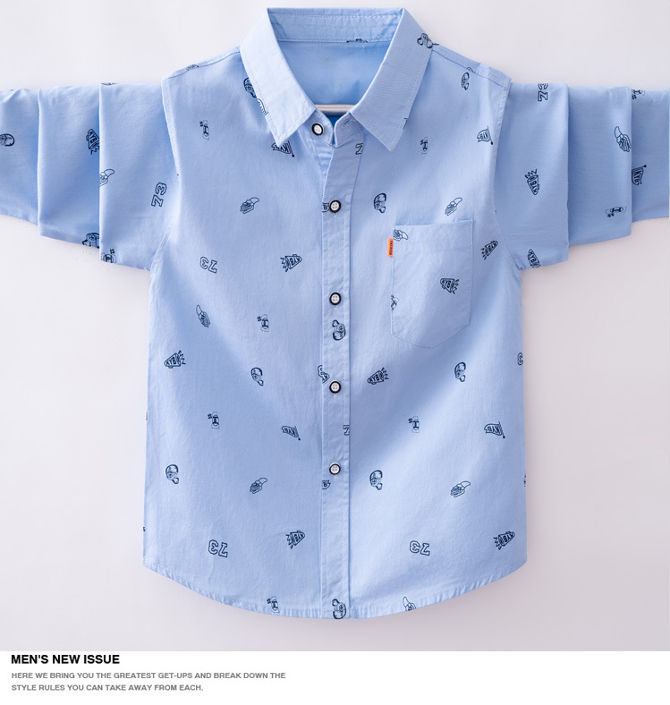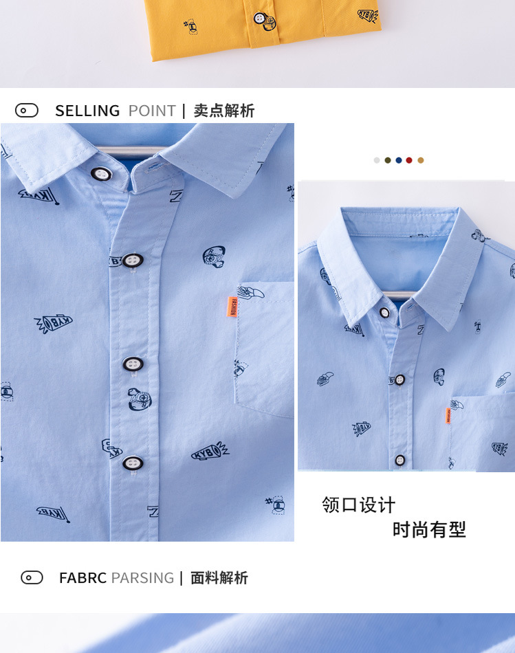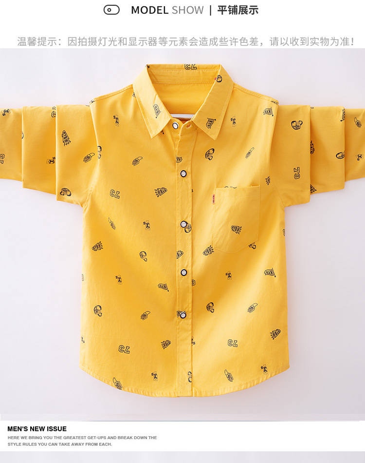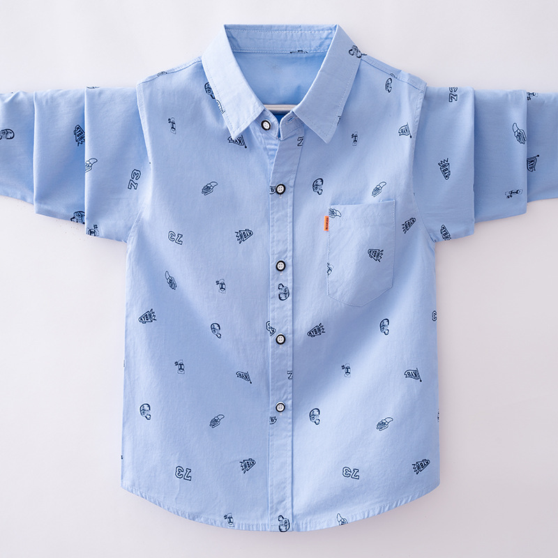 소년 긴팔 프린트 셔츠 봄과 가을 얇은 아동복 잘 생긴 2023 새 가을 소년 셔츠 재킷