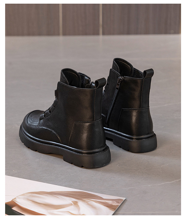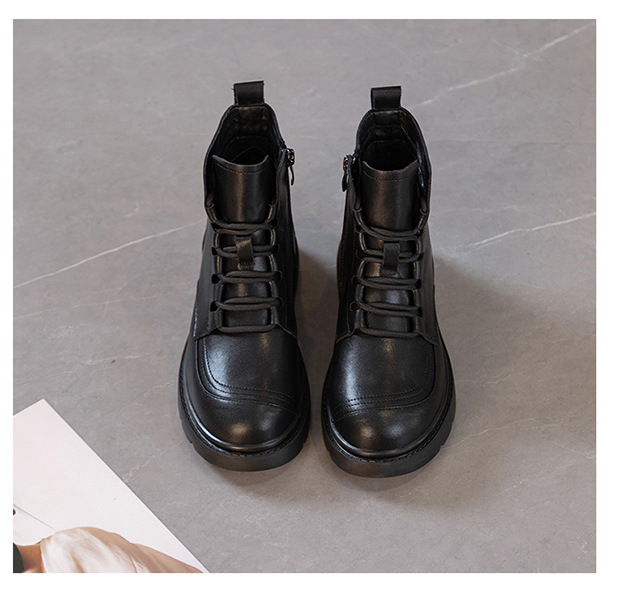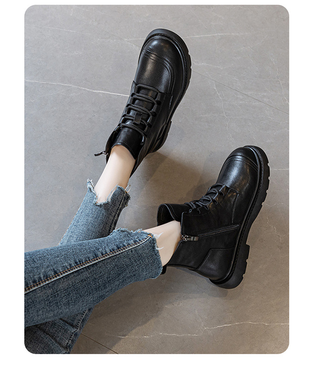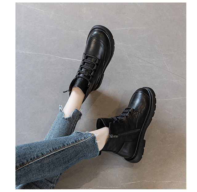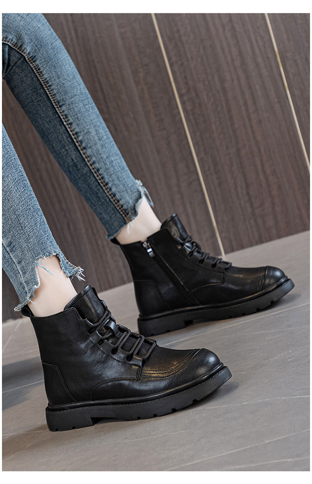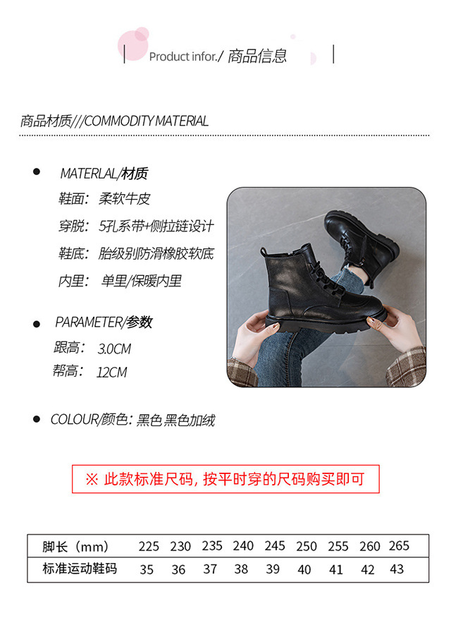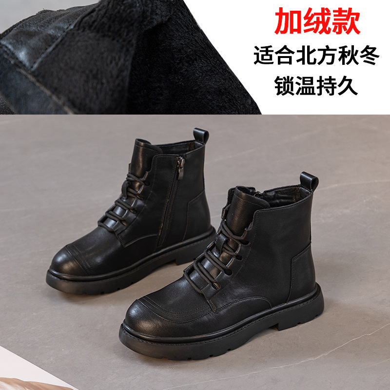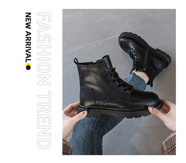 블랙 가죽 스트리트 스타일 마틴 부츠 여성용 2024 신상 가을 겨울 플러스 사이즈 여성화 41-43 와이드 숏부츠스토어 가기