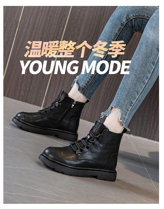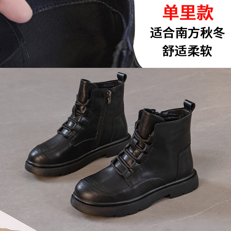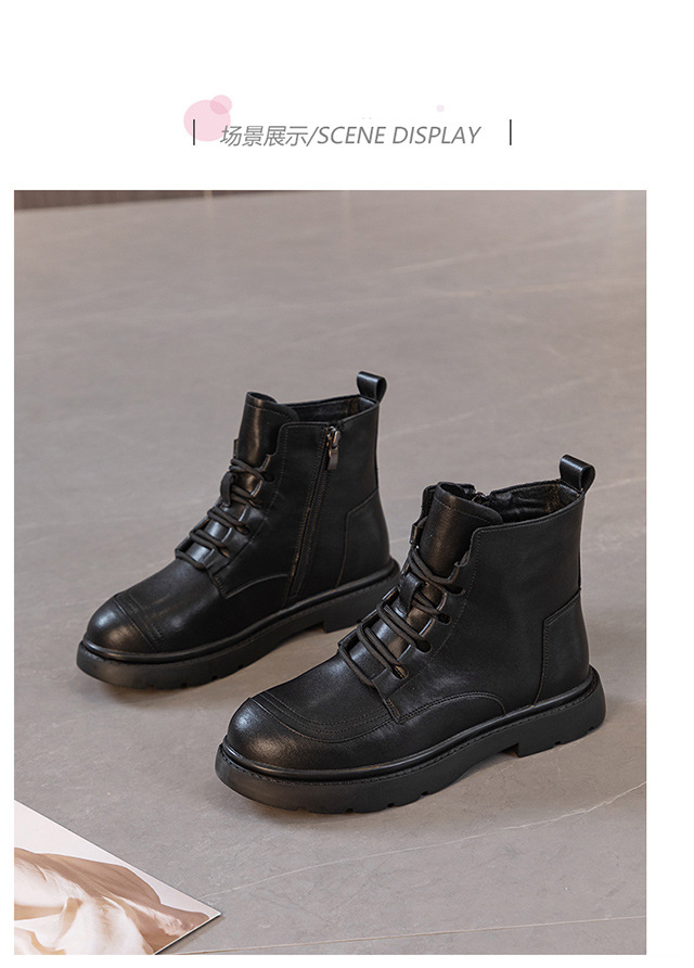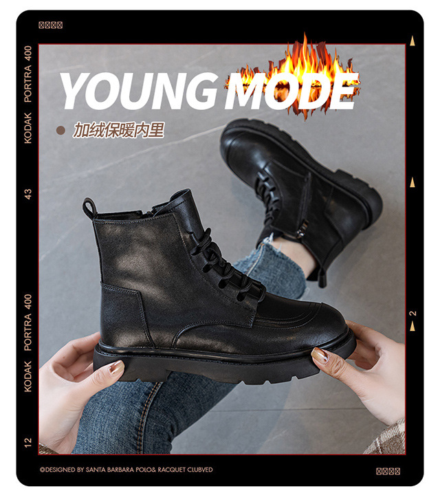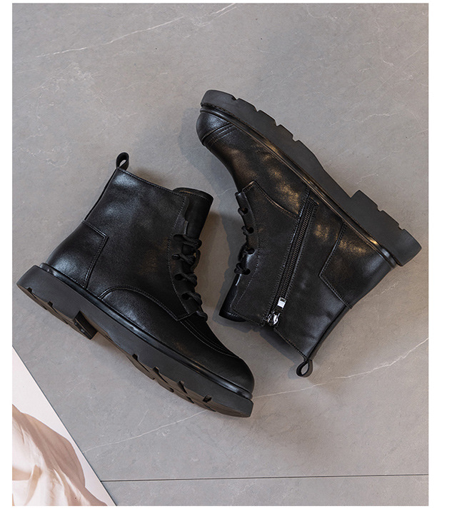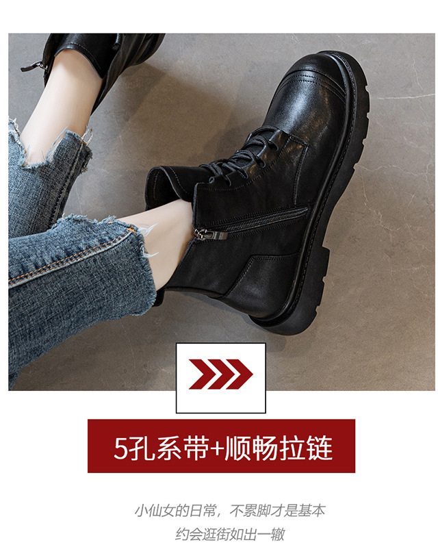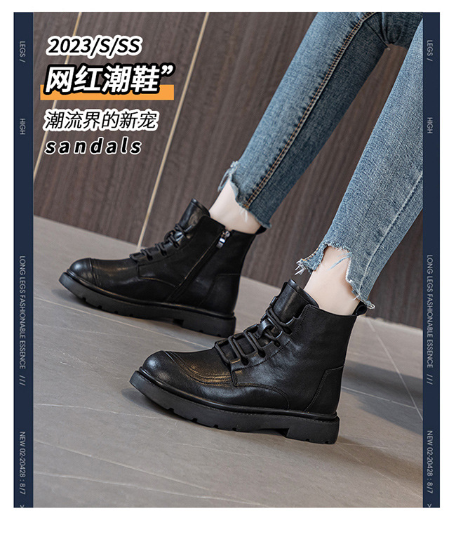 블랙 가죽 스트리트 스타일 마틴 부츠 여성용 2024 신상 가을 겨울 플러스 사이즈 여성화 41-43 와이드 숏부츠스토어 가기